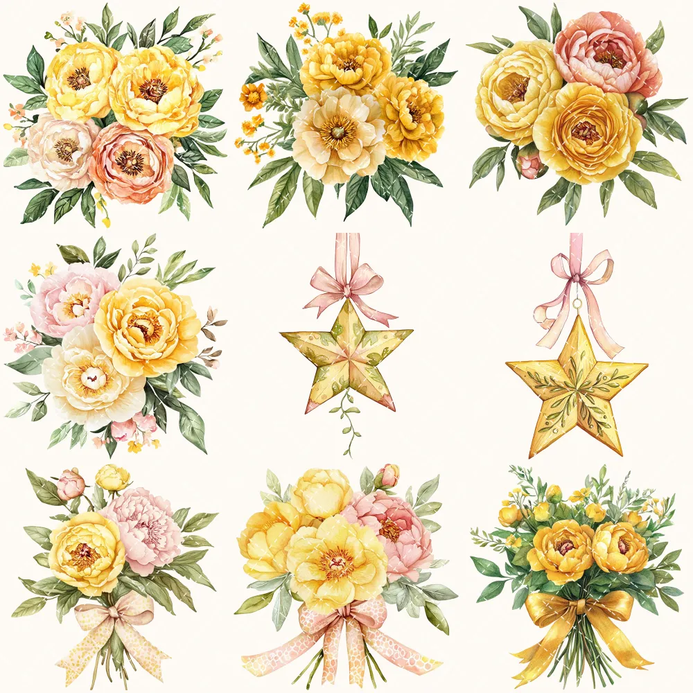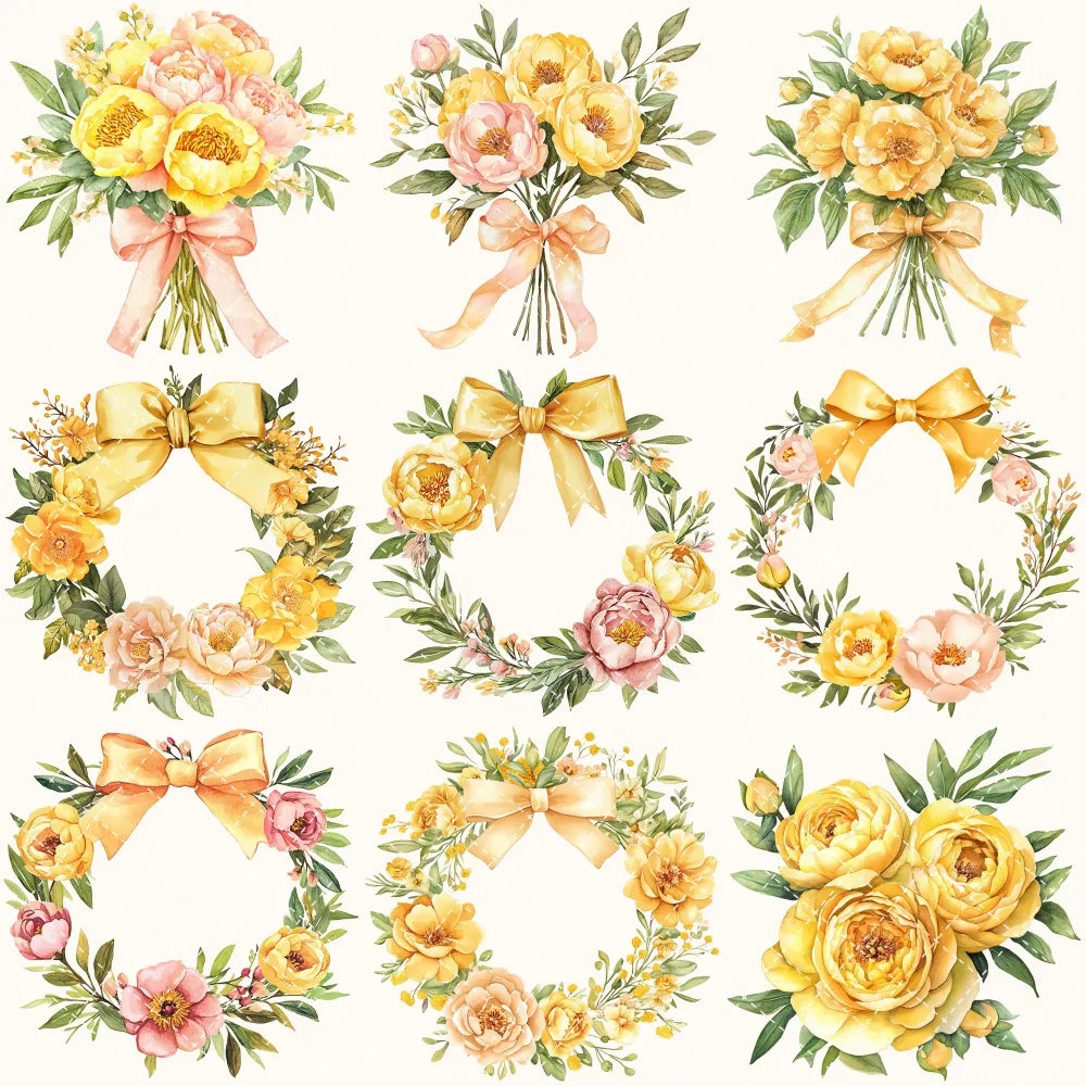 Honey Petal Archive Floral Arrangements, Peony Floral PNG, Yellow Peony Bouquet, Spring Flower Art, Floral Decor, Ornaments,Digital download
