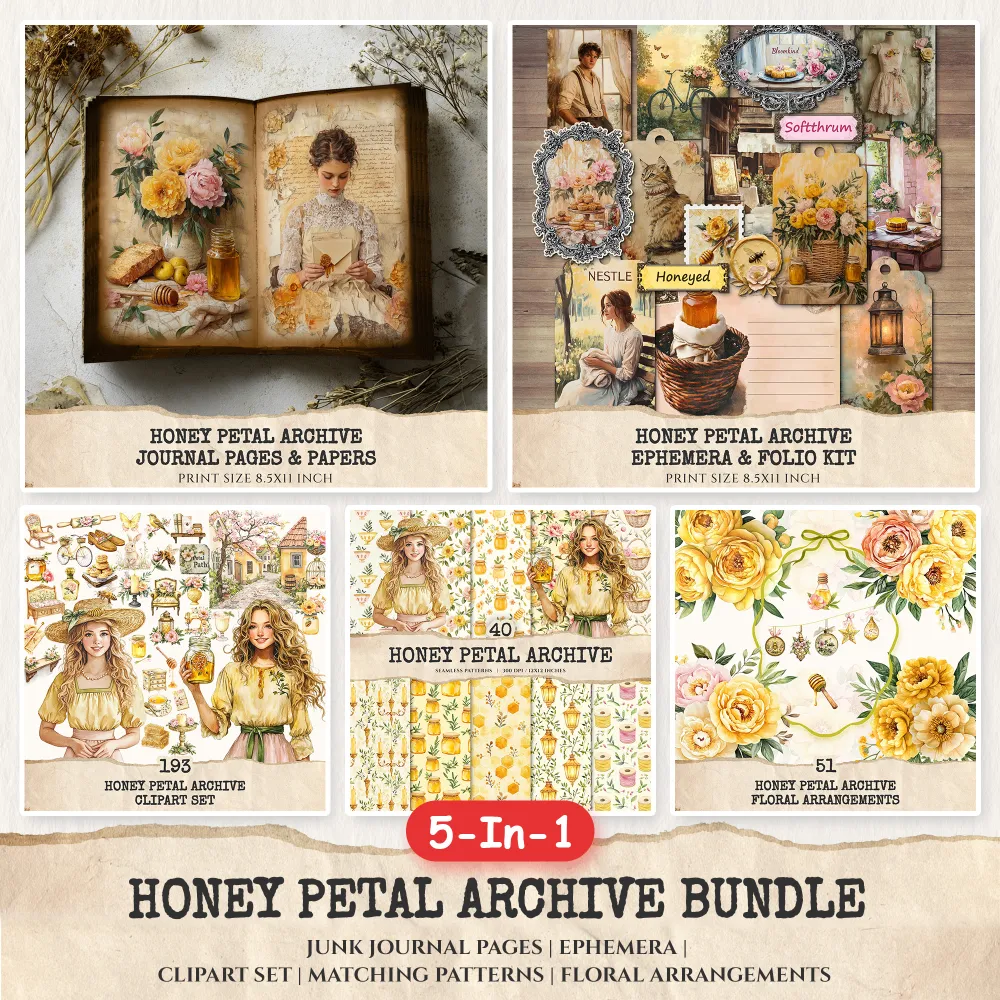 1. Honey Petal Archive Junk Journal Pages & Papers: