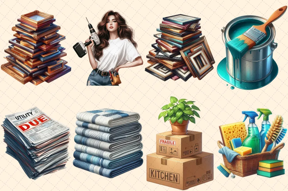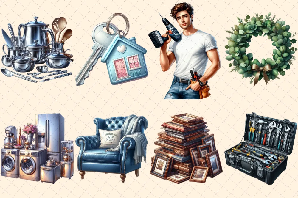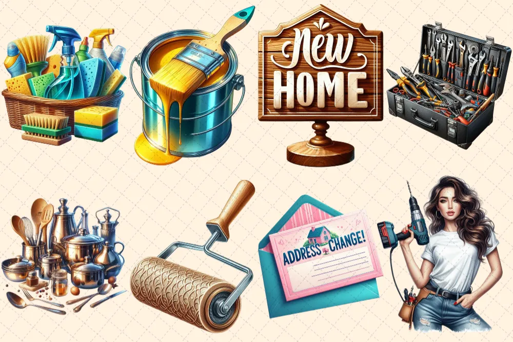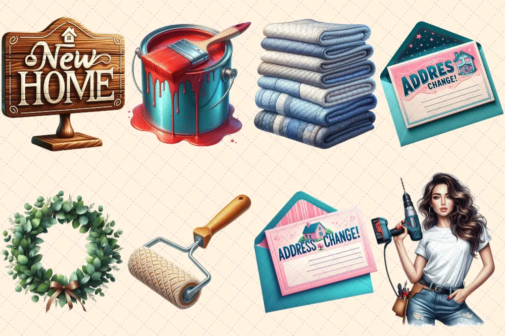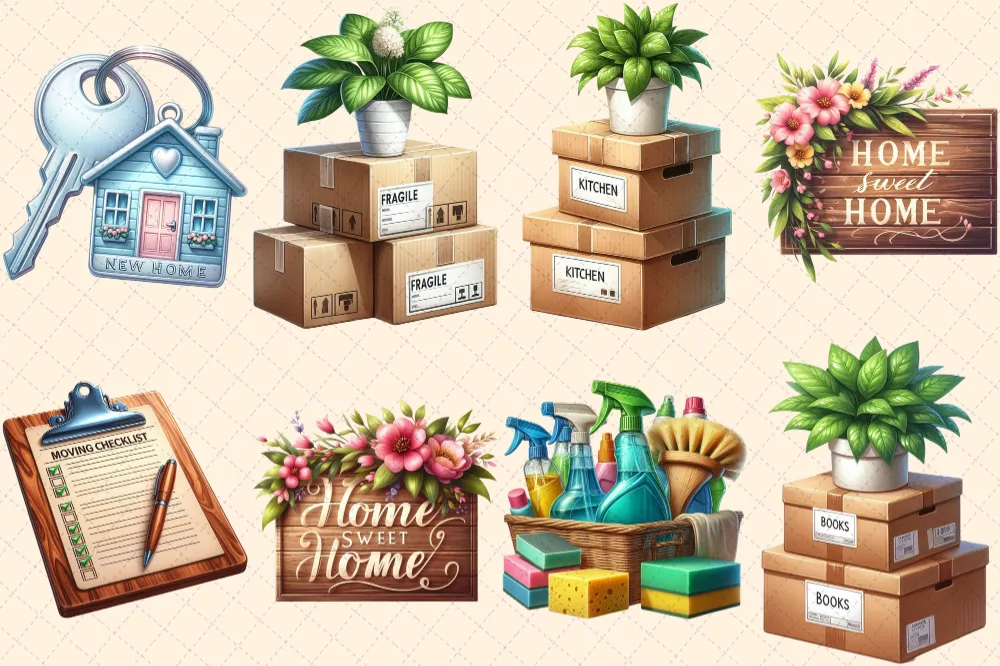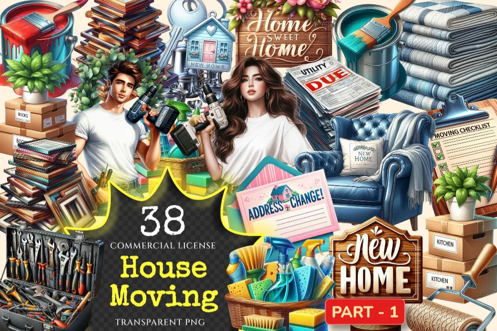 House Moving PNG Clipart Collection – 38 PNG, House shifting illustrations, New home printables, Commercial use, Digital download