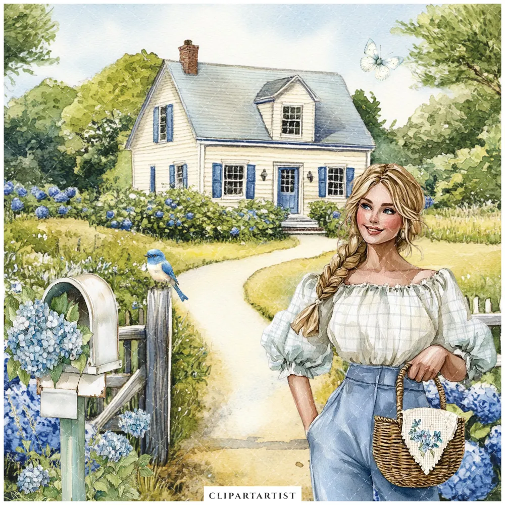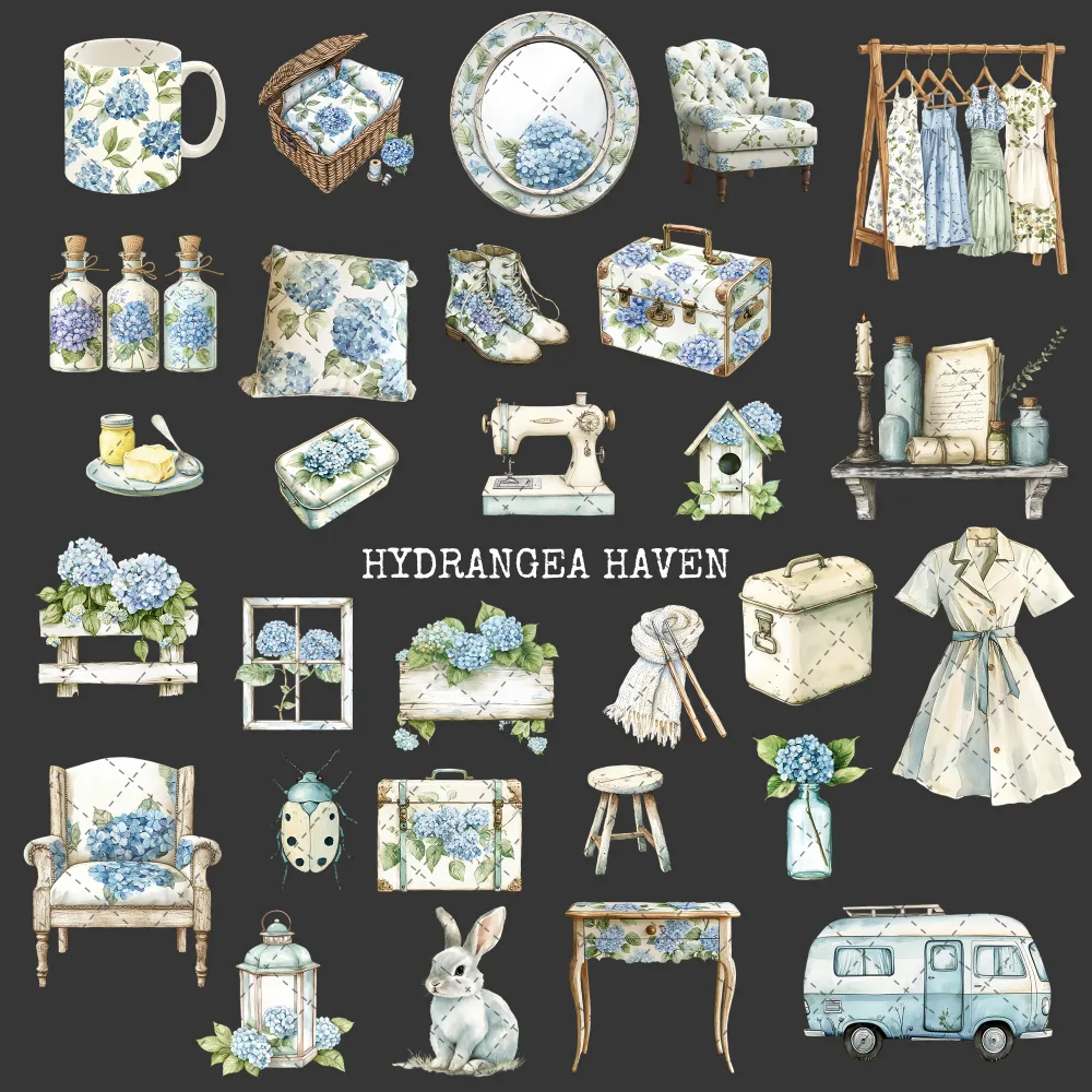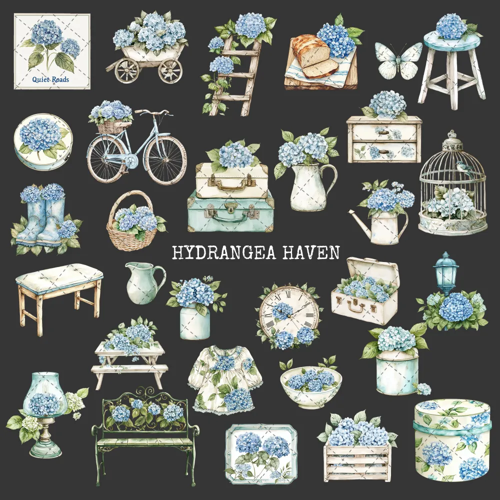 Hydrangea Haven Clipart Set – Spring Cottage Garden PNG Illustrations, Botanical, Pastel Floral, Romantic Floral Graphics, Digital Download