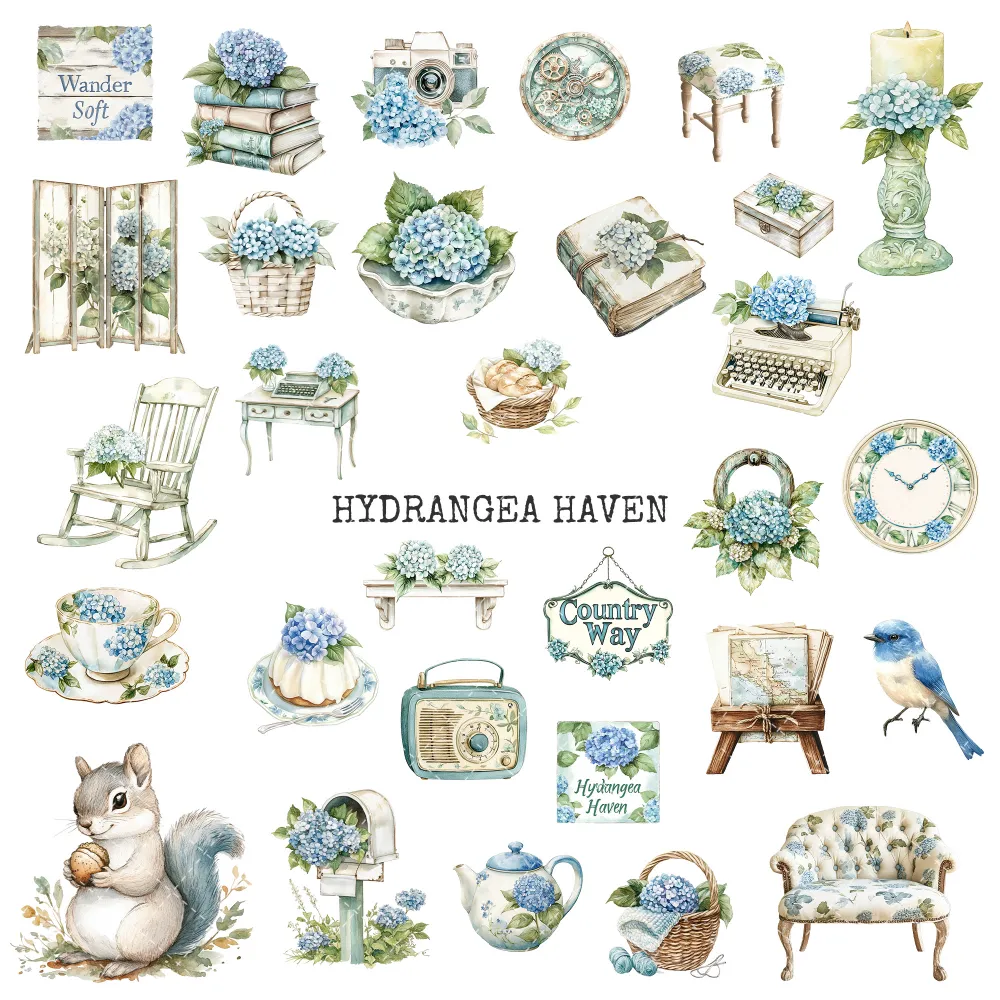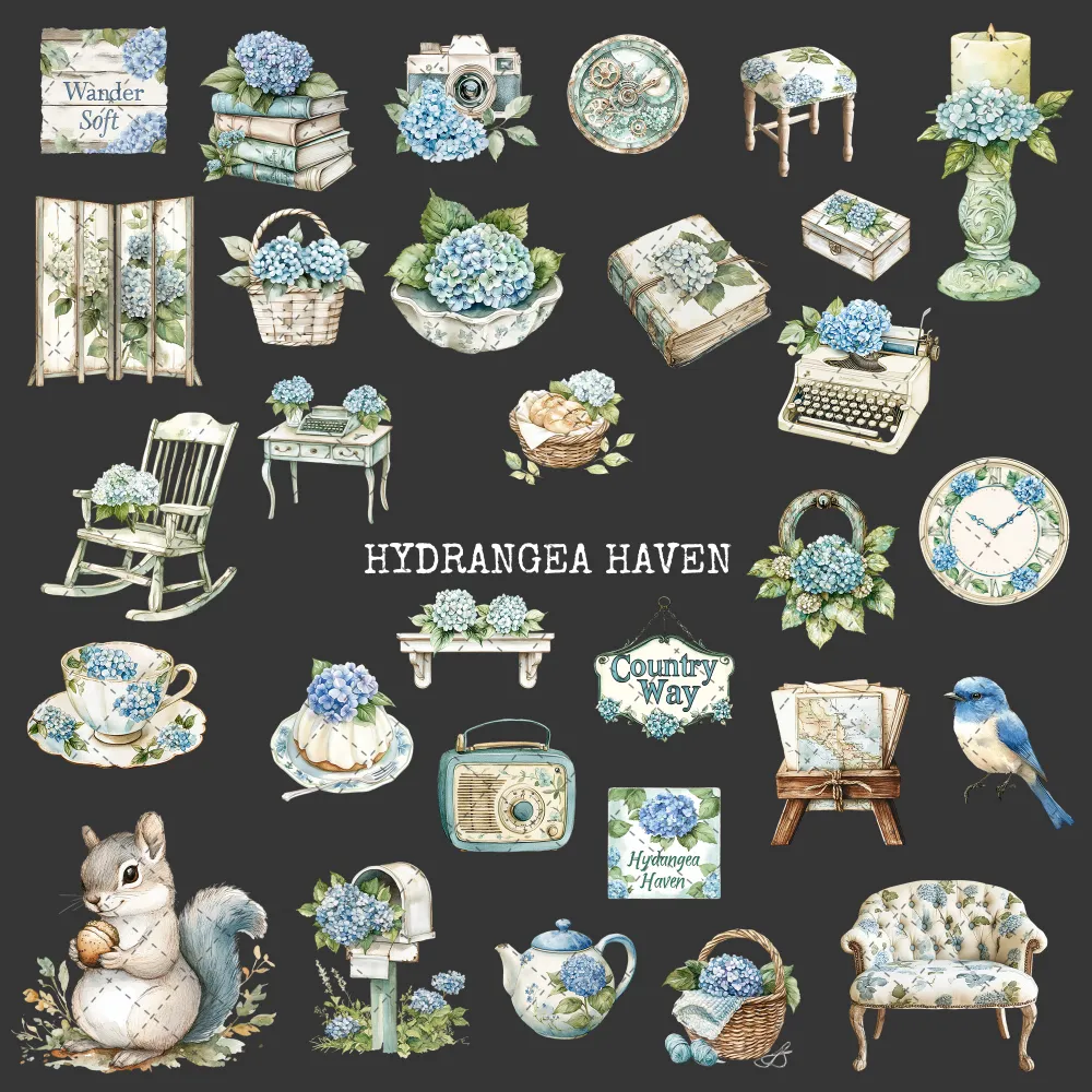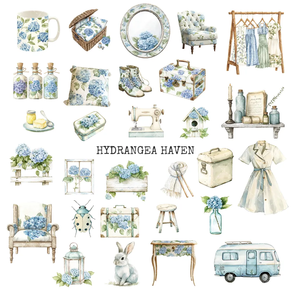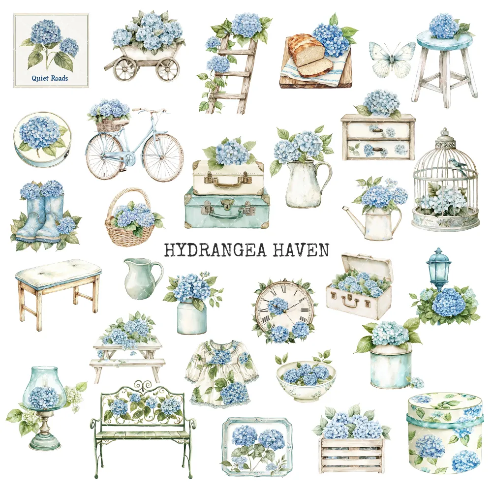 1. Hydrangea Haven Junk Journal Ephemera & Folio Kit: