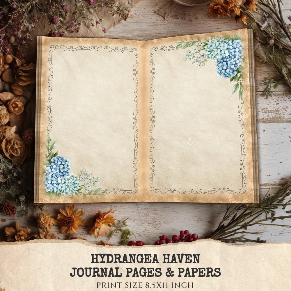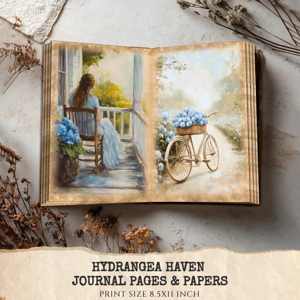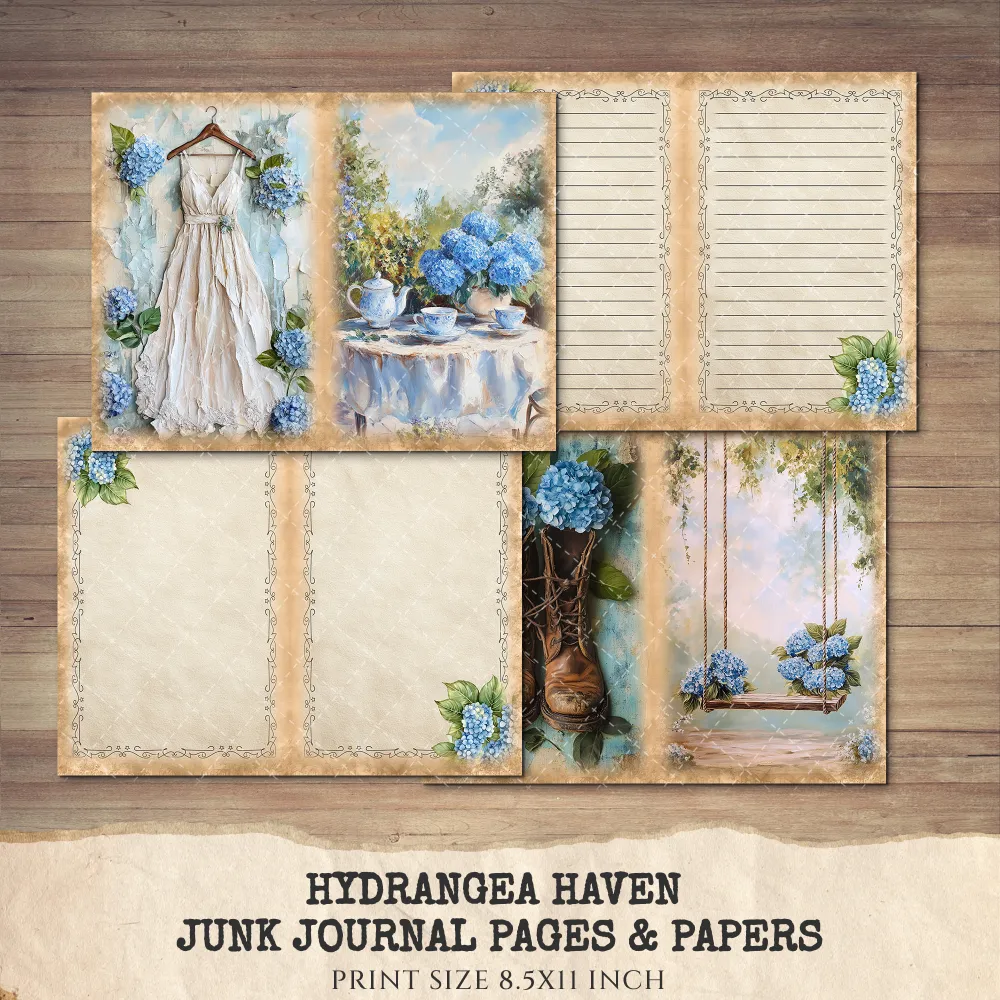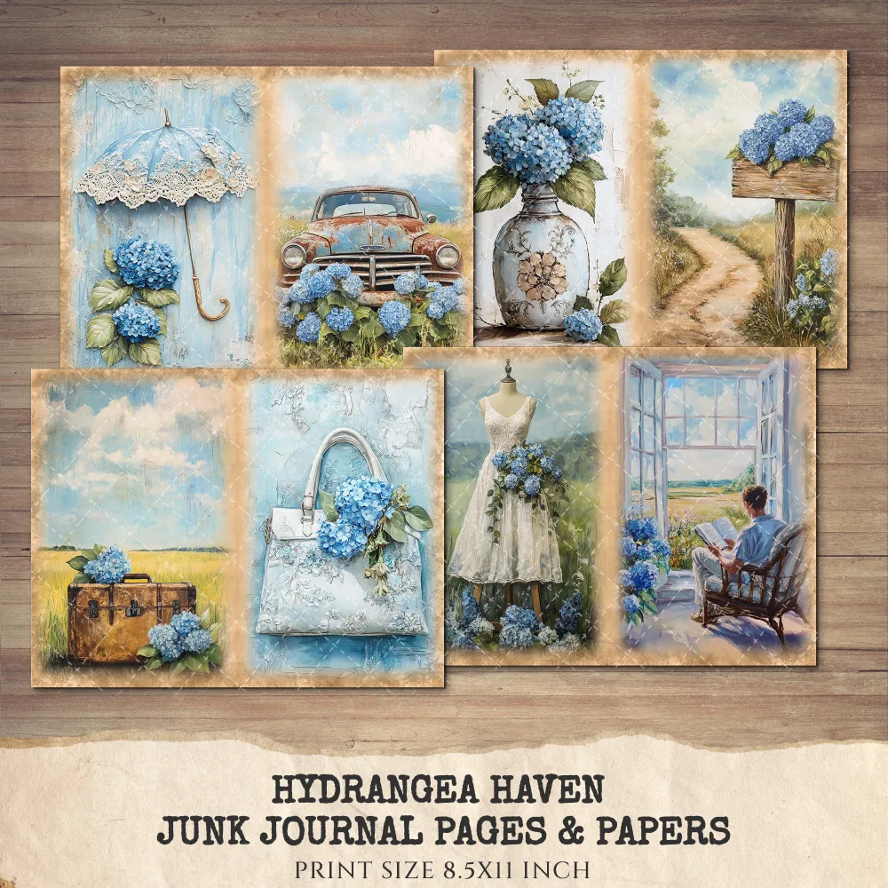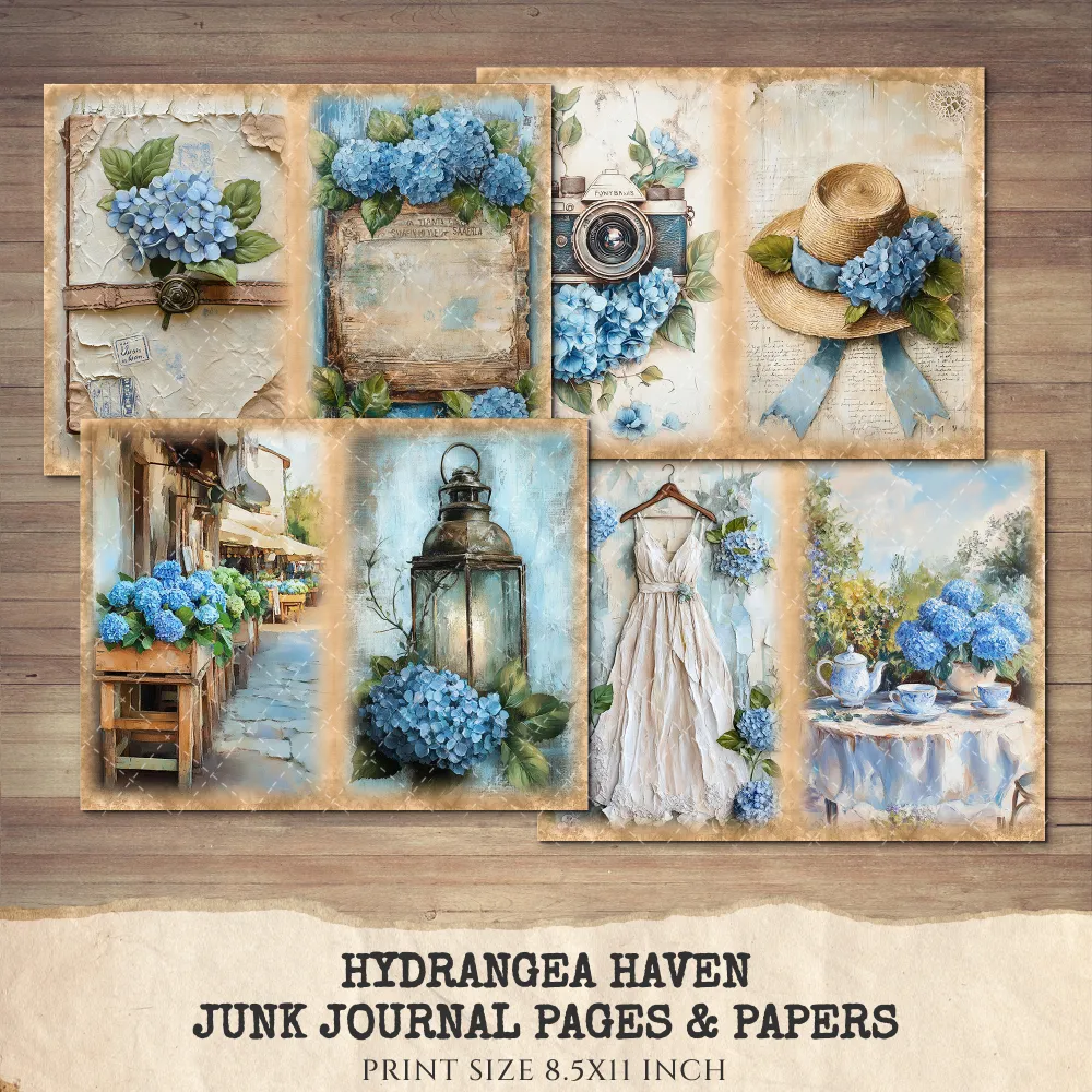 Hydrangea Haven Junk Journal Pages & Papers – Spring Cottage Garden, Romantic Floral Printable, Scrapbook, Cottagecore, Digital Download