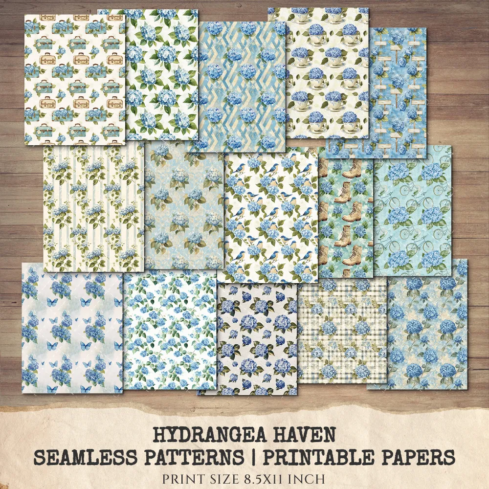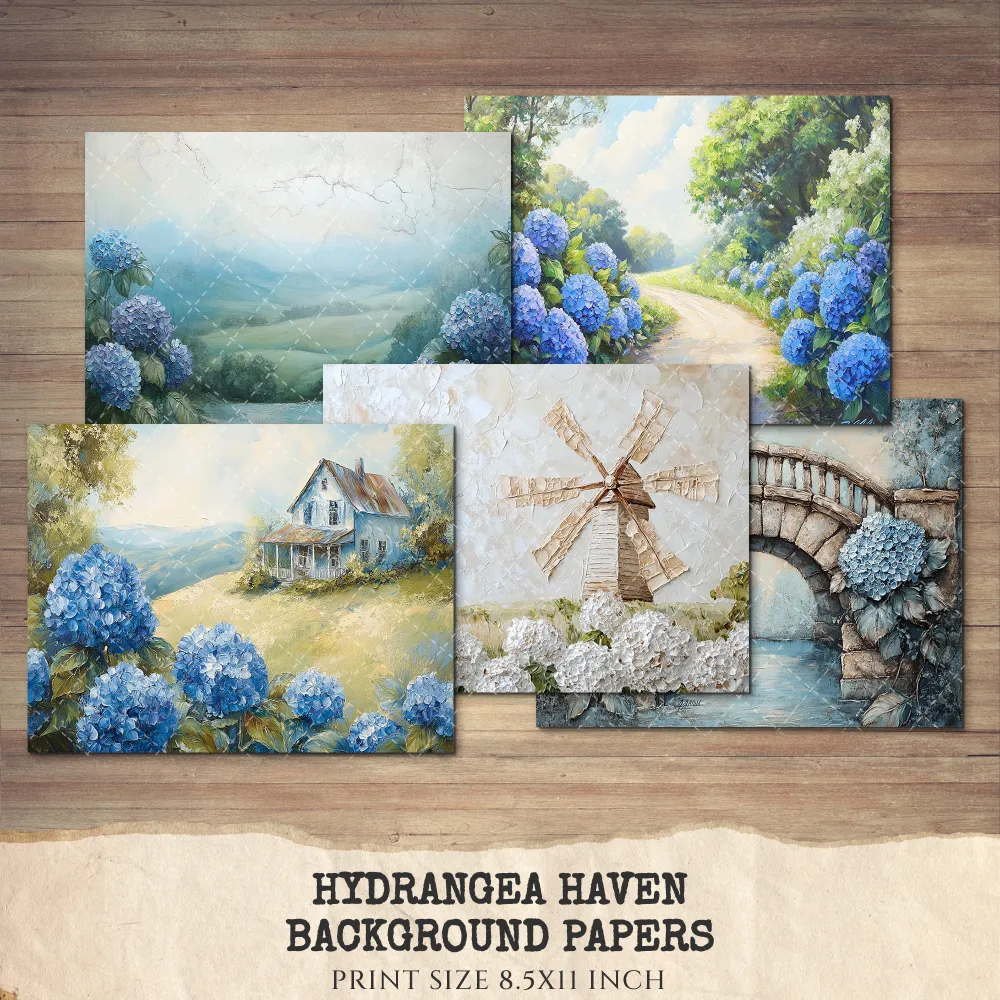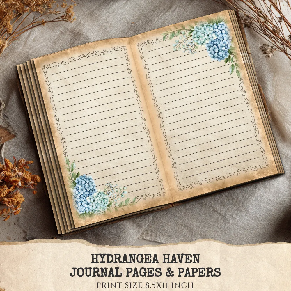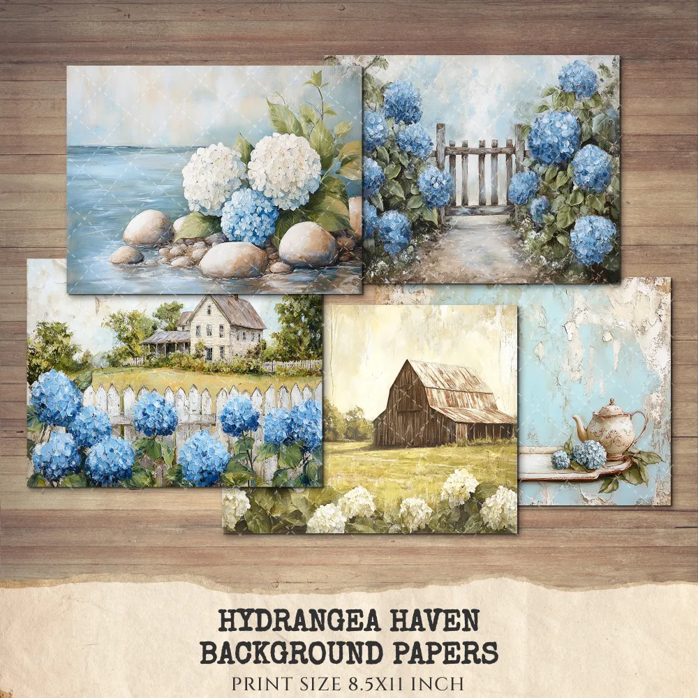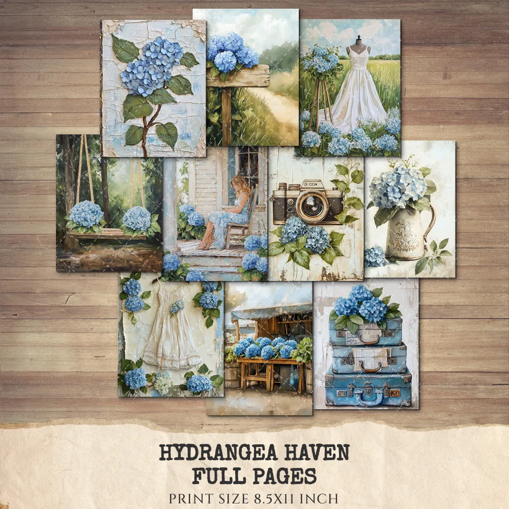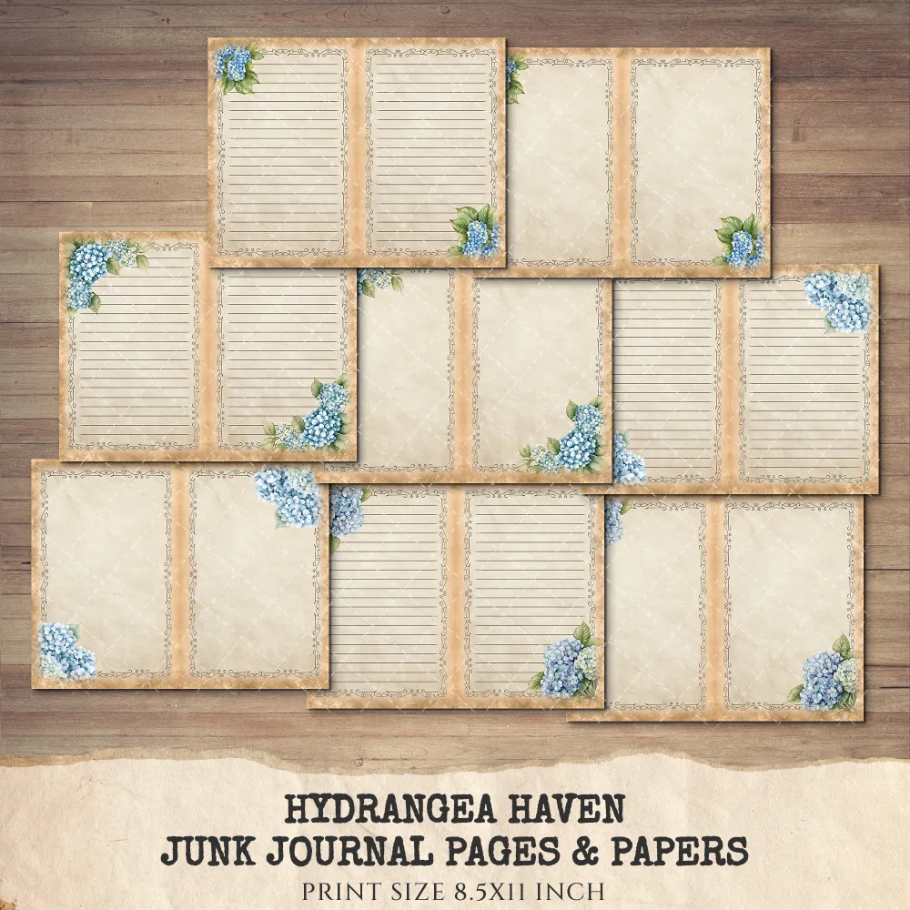 Hydrangea Haven Junk Journal Pages & Papers – Spring Cottage Garden, Romantic Floral Printable, Scrapbook, Cottagecore, Digital Download