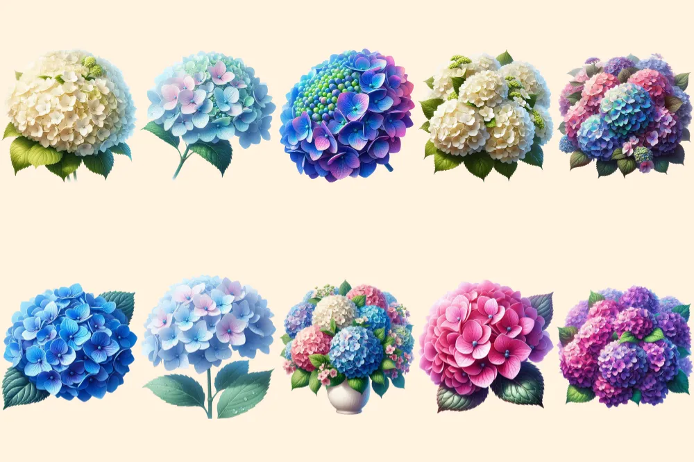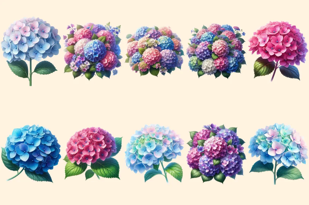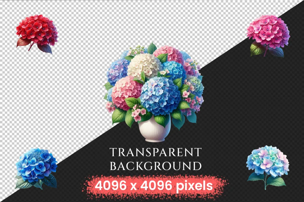 Hydrangeas PNG Clipart Collection – 47 PNG, Vibrant hydrangea graphics, Colorful floral printables, Commercial use, Digital download