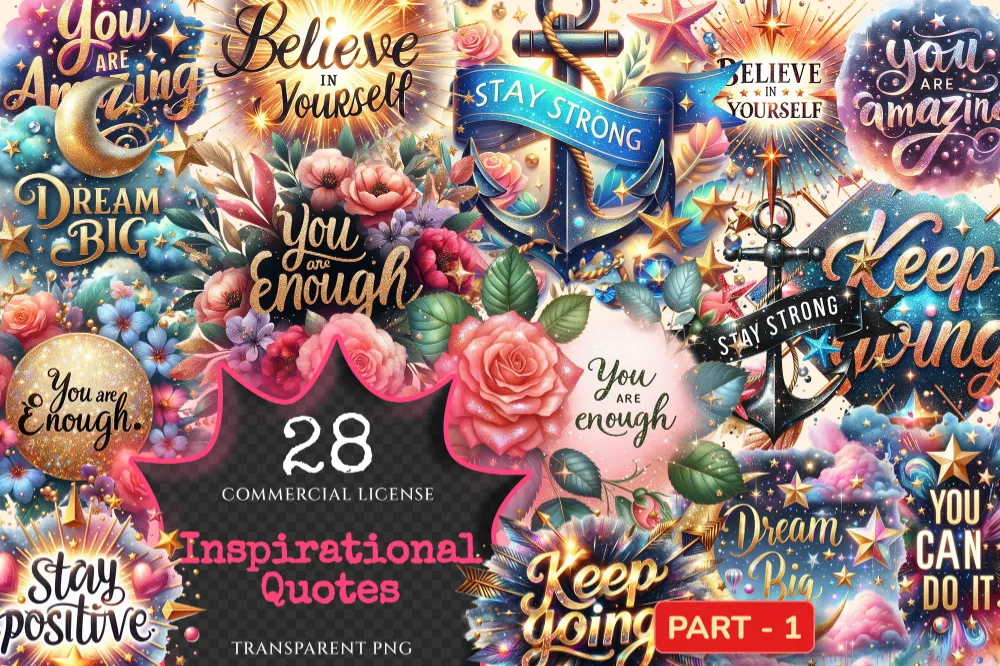 Inspirational Quotes PNG Clipart Collection – 28 PNG, Uplifting graphics, Inspirational quotes art, Commercial use, Digital download