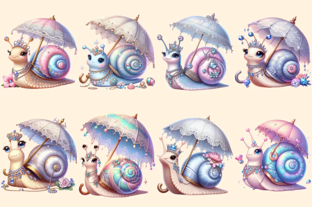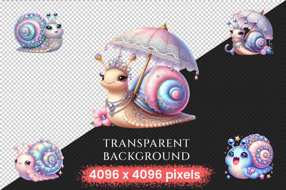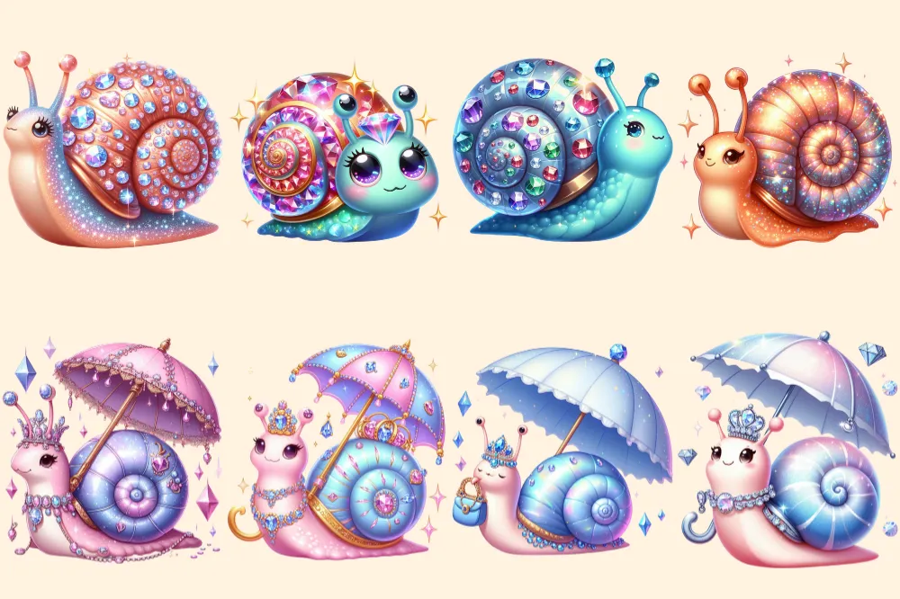 Jewelry Snails (P-2) PNG Clipart Collection – 36 PNG, Charming snail graphics, Jewel inspired printables, Commercial use, Digital download