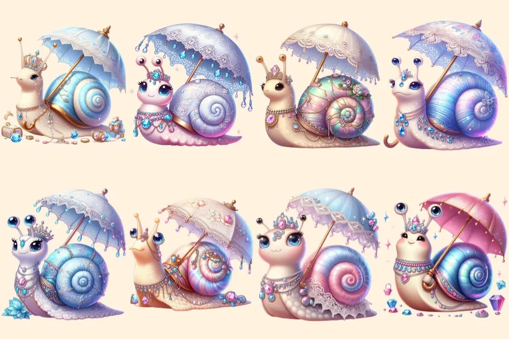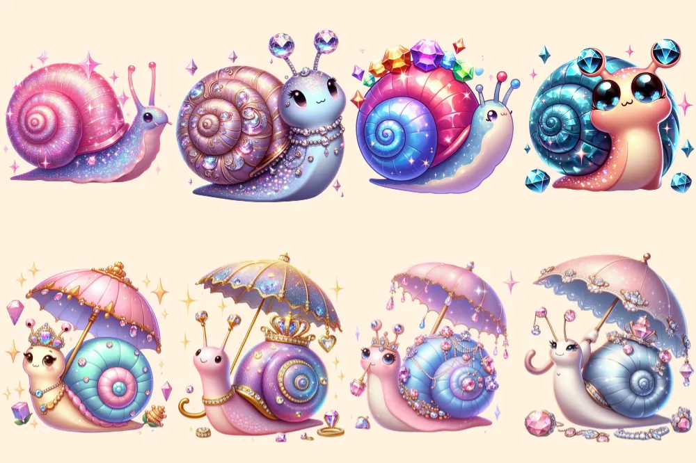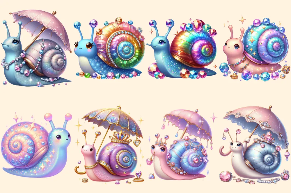 Jewelry Snails PNG Clipart Collection – 37 PNG, Charming snail illustrations, Jewel inspired printables, Commercial use, Digital download