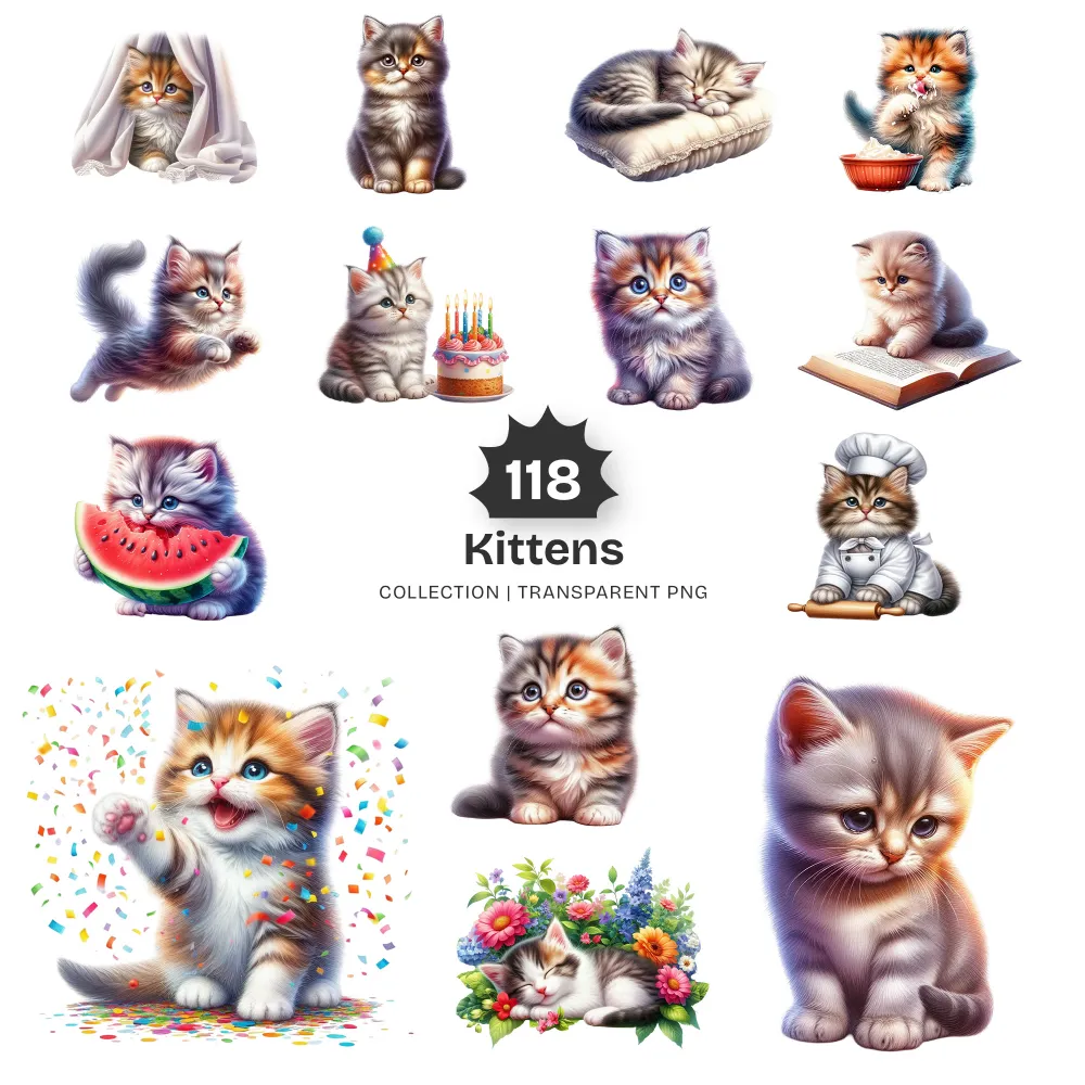 Kittens PNG Clipart Collection – 118 PNG, Cute Cat Graphics, Pet Animals, Adorable Kitten Printables, Commercial use, Digital download