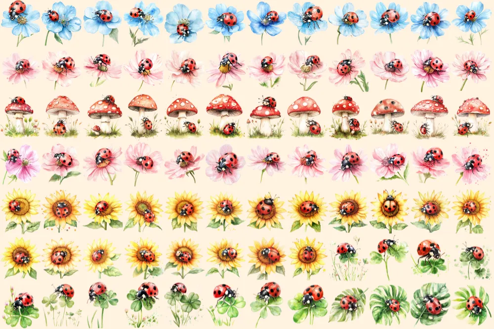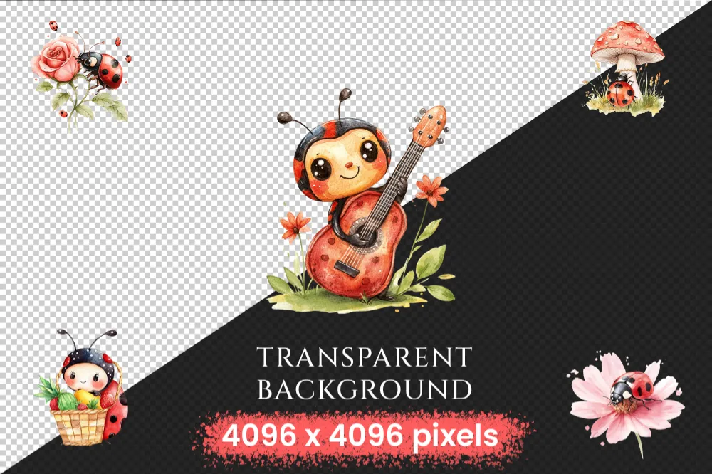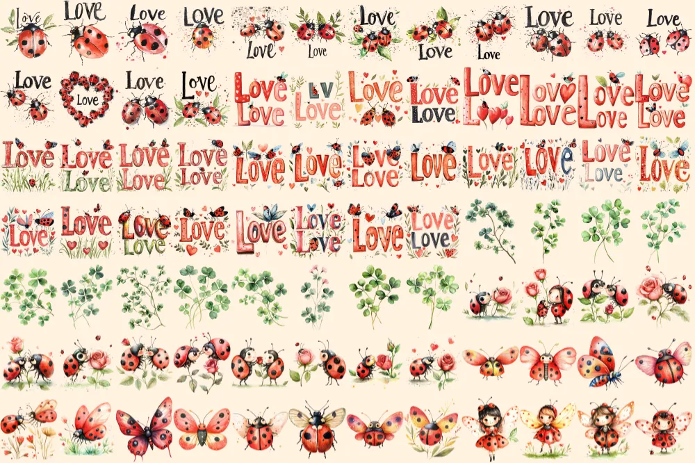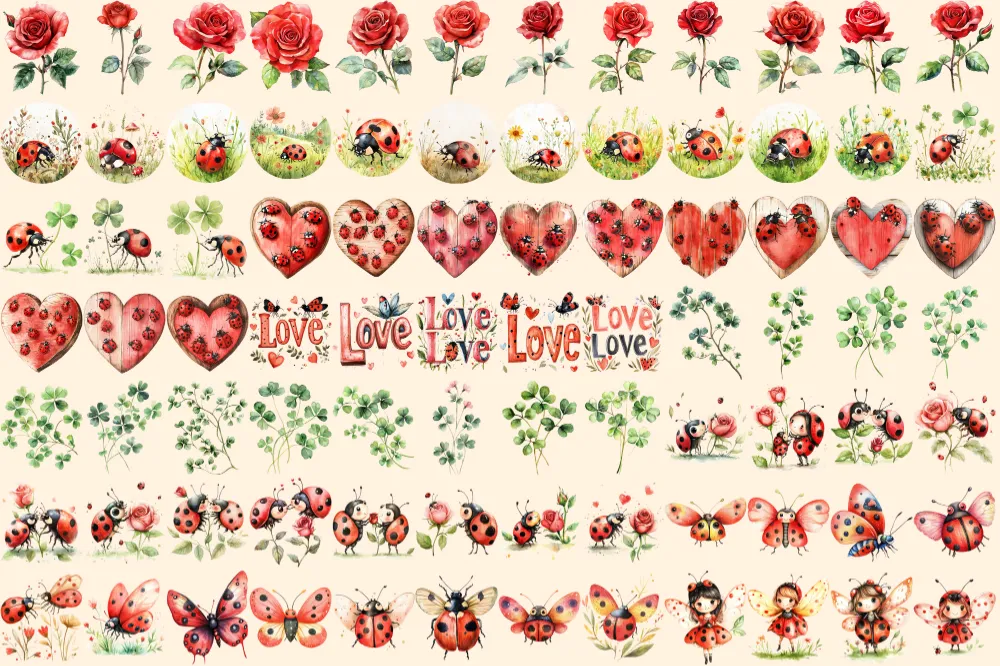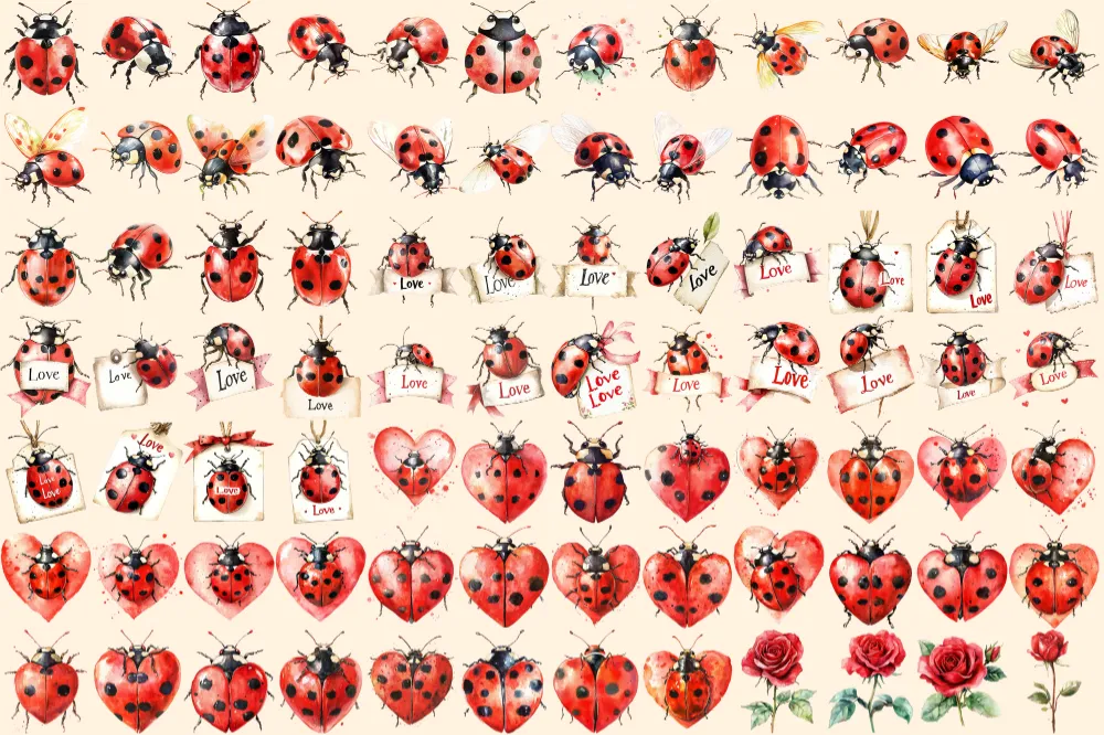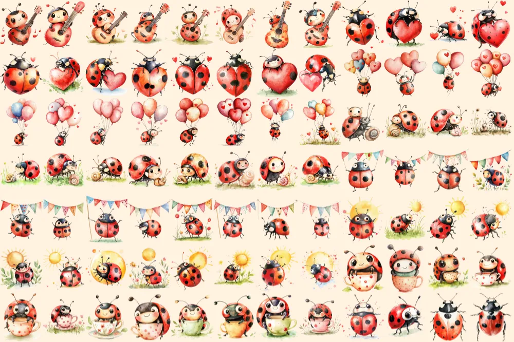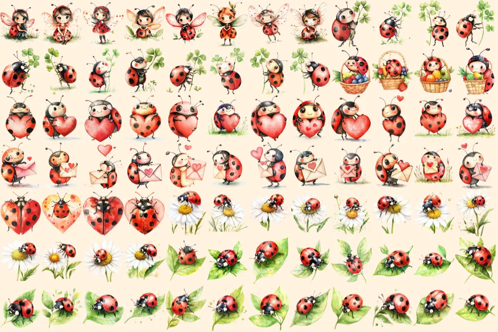 Ladybugs Watercolor Clipart Bundle – 540+ transparent PNG, Charming ladybug illustrations, Playful red bug, Commercial use, Digital download