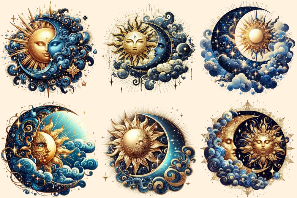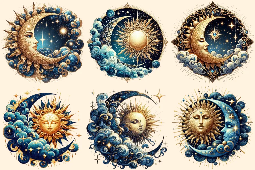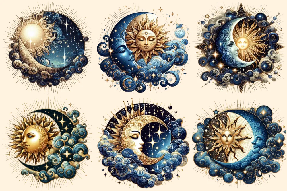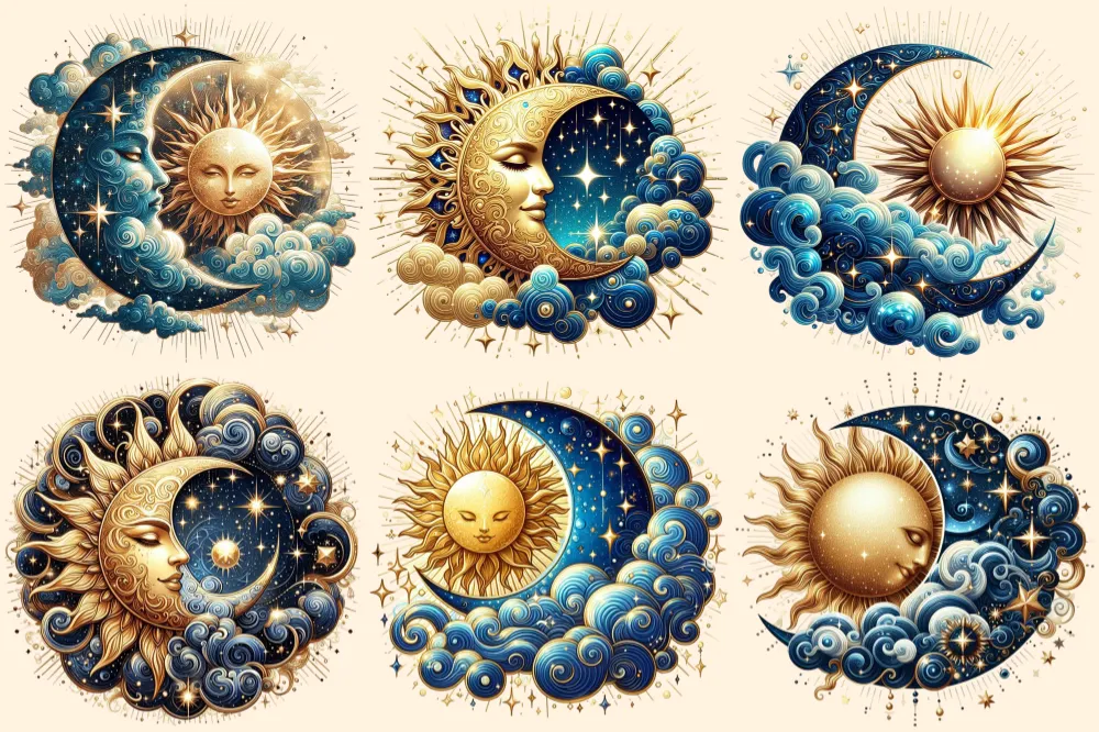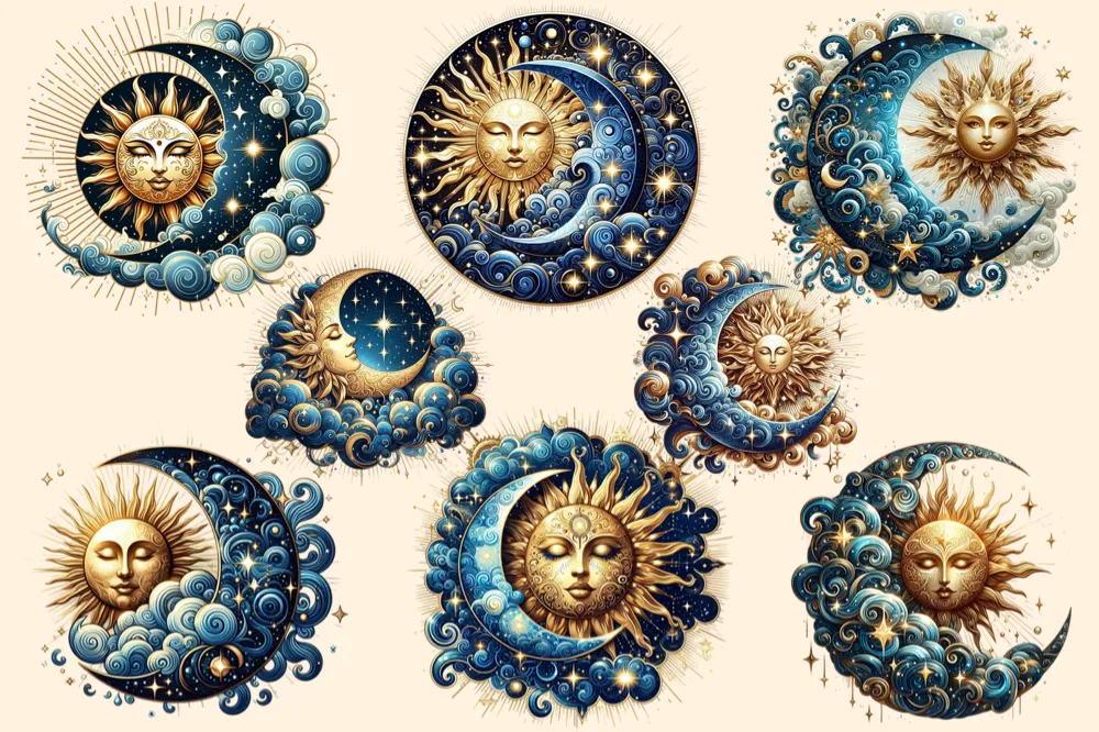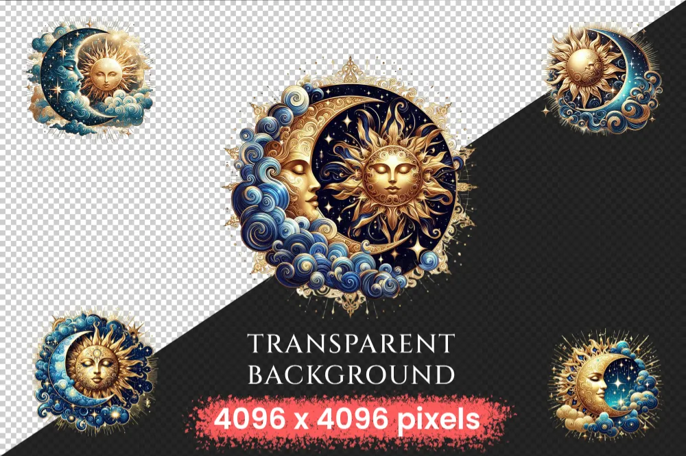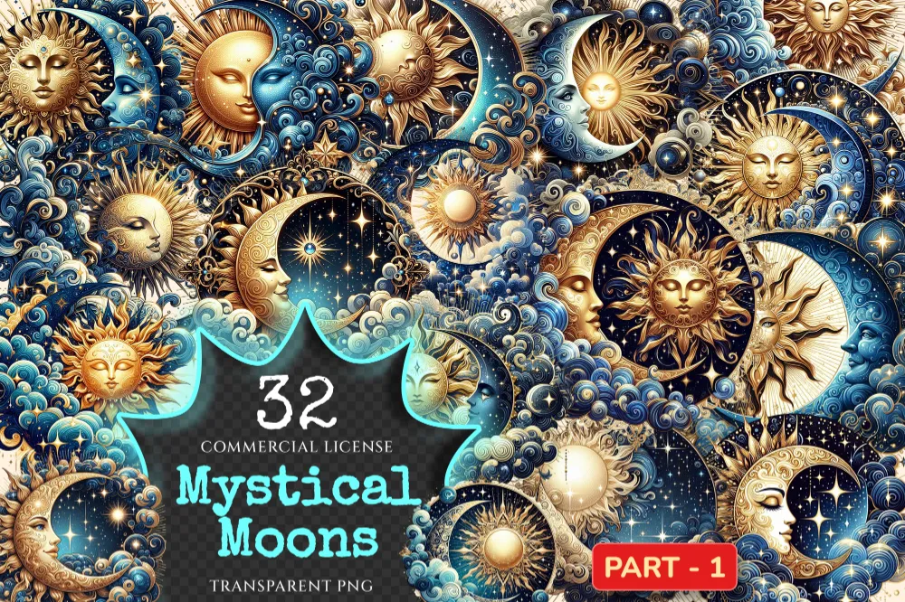 Mystical Moons PNG Clipart Collection – 32 PNG, Mystical lunar illustrations, Cosmic art printables, Commercial use, Digital download
