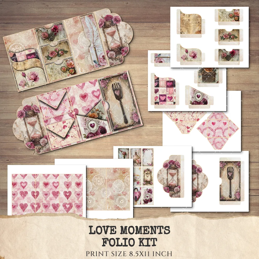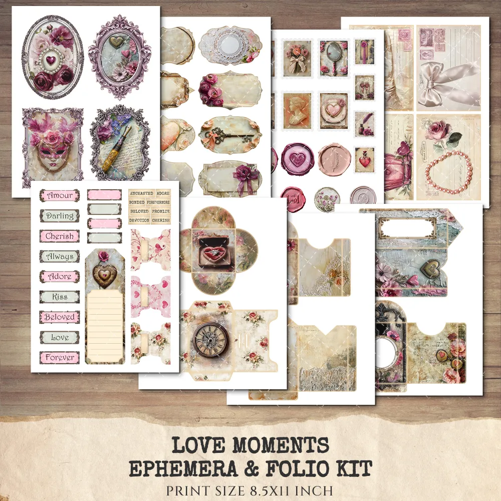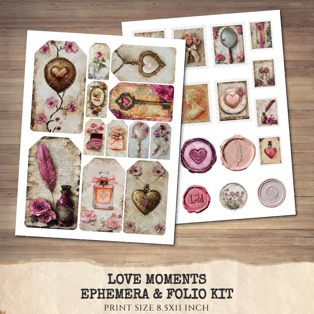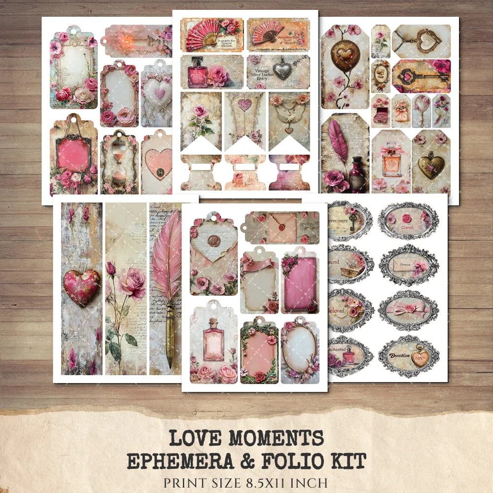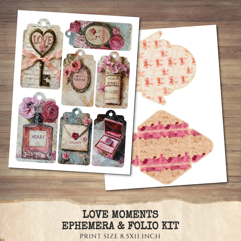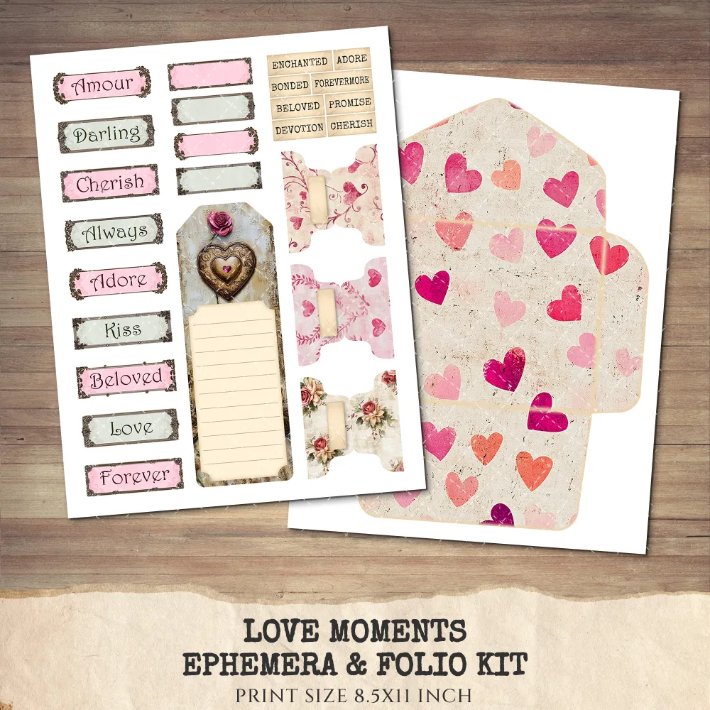 Love Moments Ephemera & Folio Kit – Romantic Hearts, Red Pink Printable, Valentine’s Day, Tags, Victorian, Love, Floral, Digital Download
