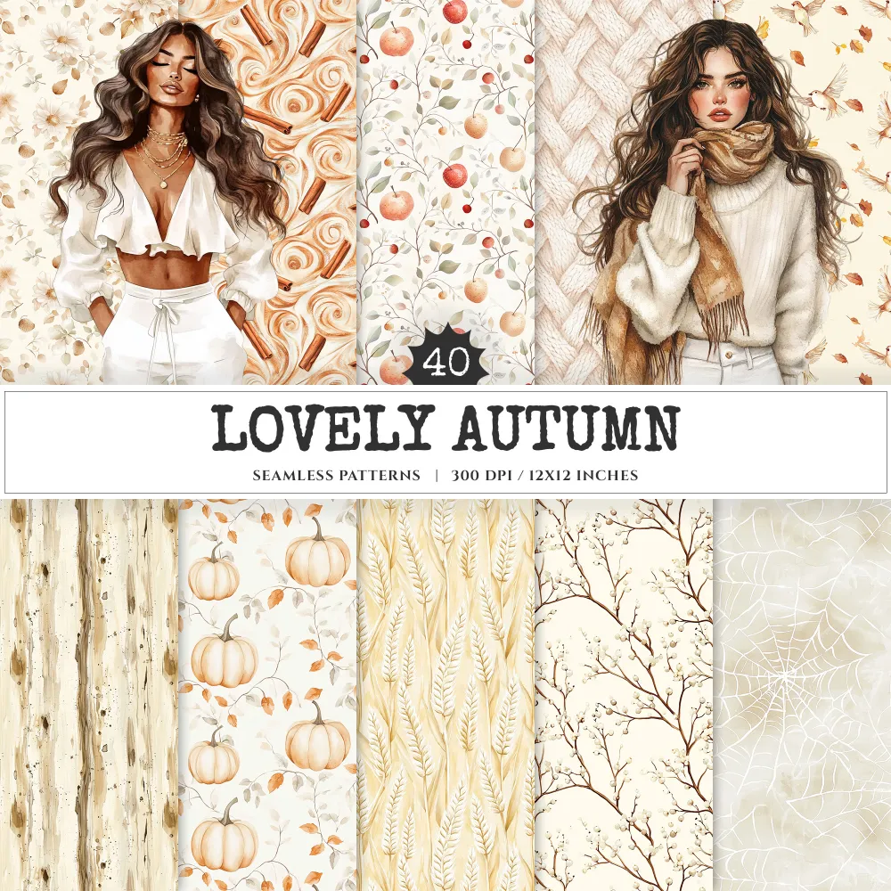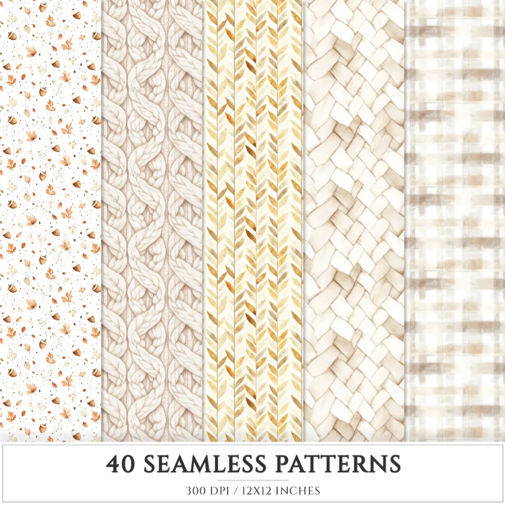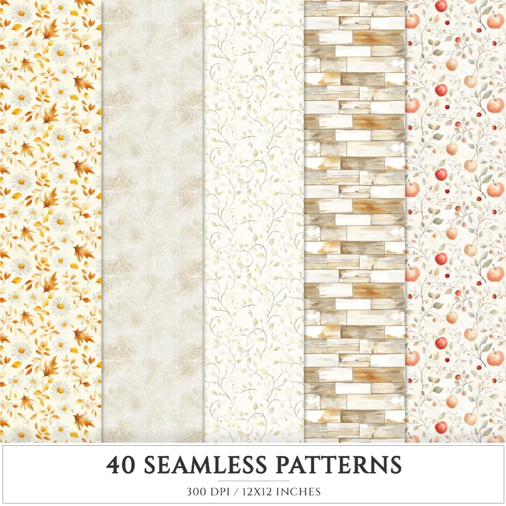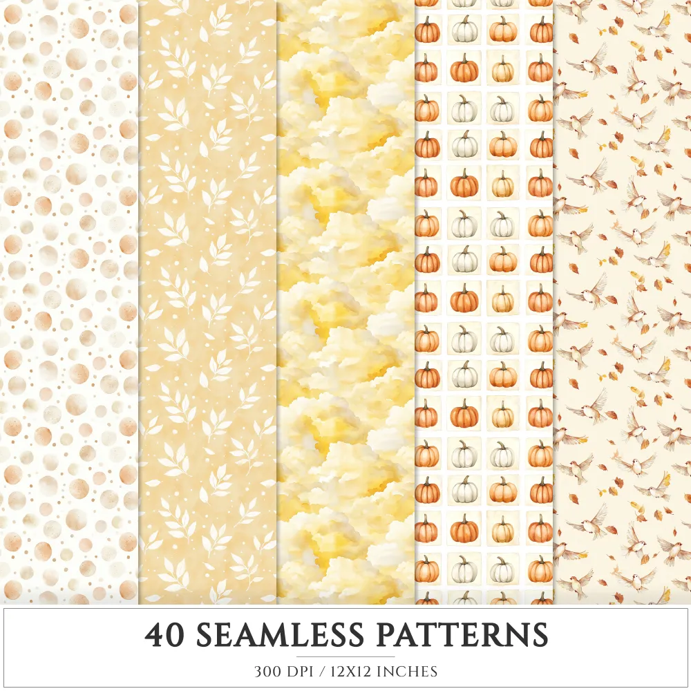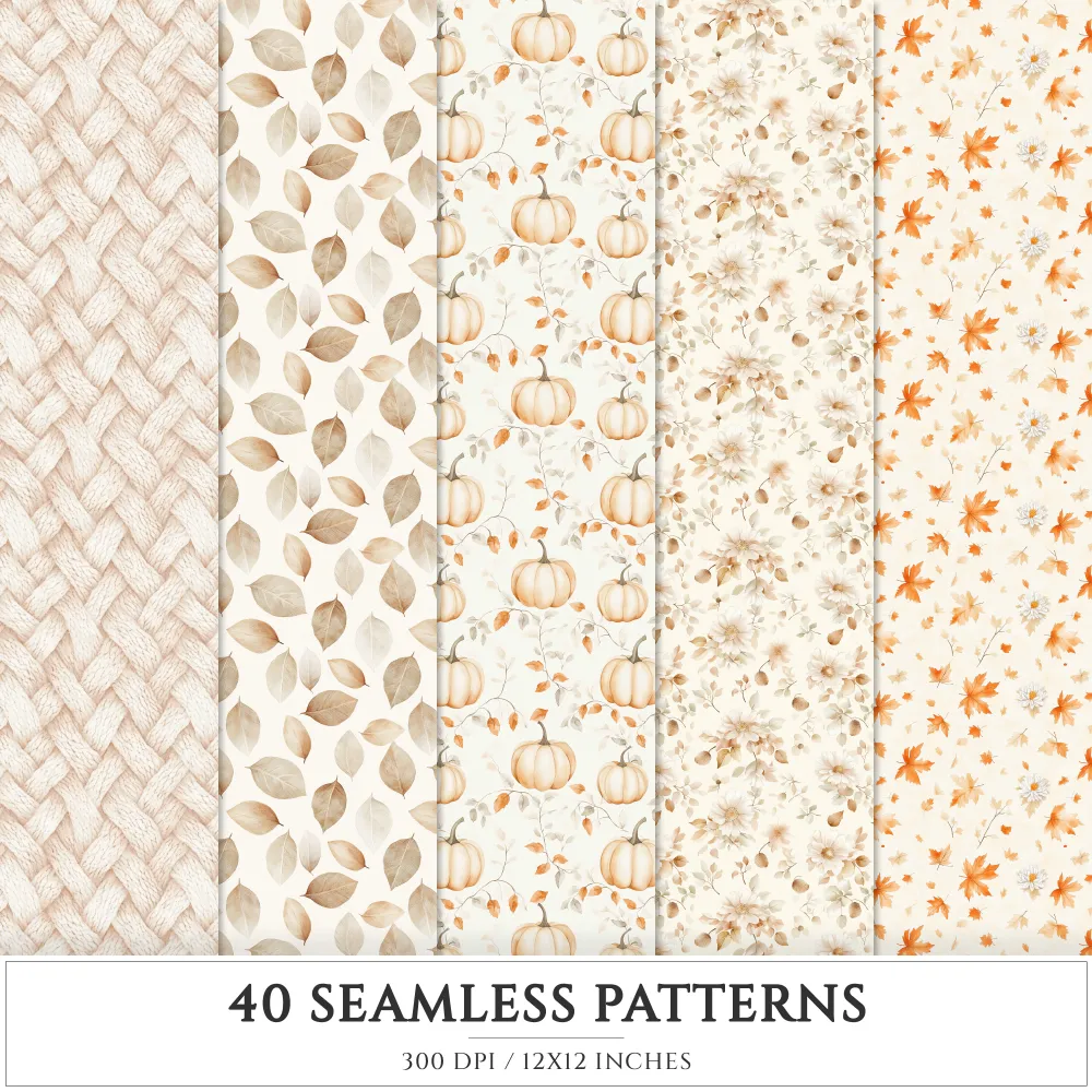 Lovely Autumn Seamless Patterns, Cozy autumn JPEG, Fall leaves pattern, Acorn, Rustic pumpkins repeating pattern, Digital scrapbook paper