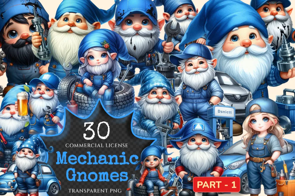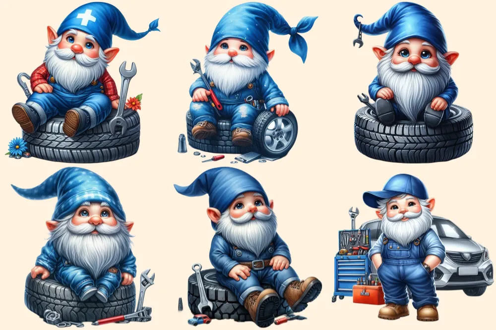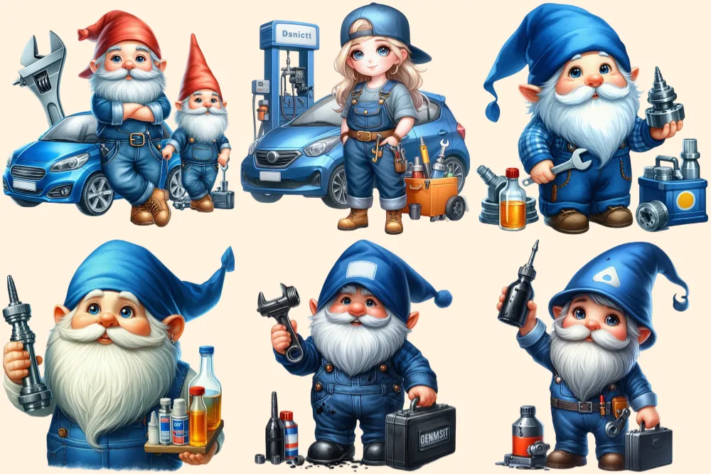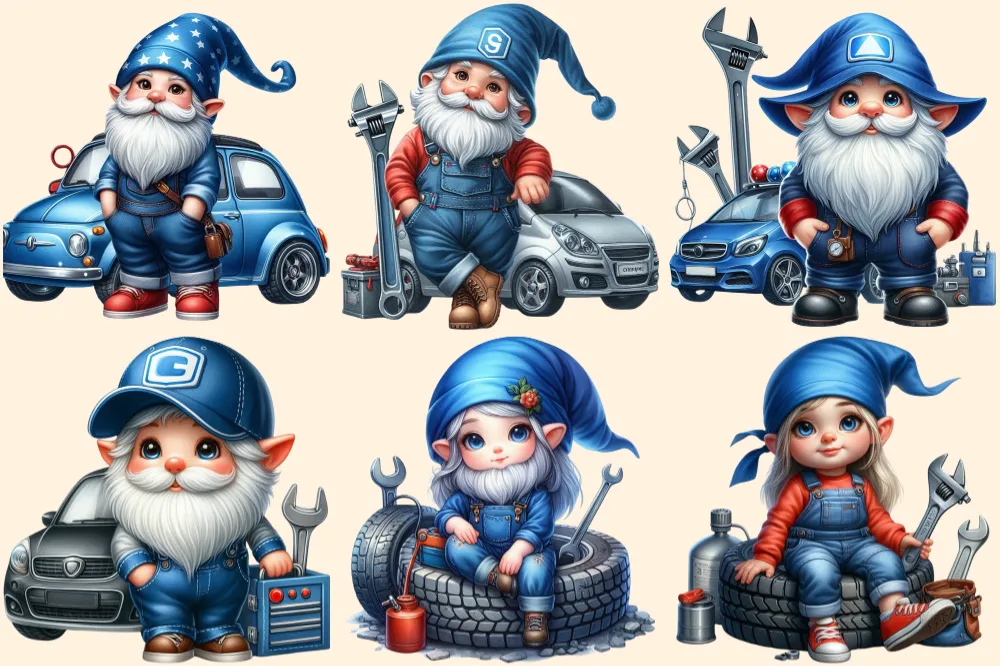 Mechanic Gnomes PNG Clipart Collection – 30 PNG, Cute gnome graphics, Car mechanic gnome printables, Commercial use, Digital download