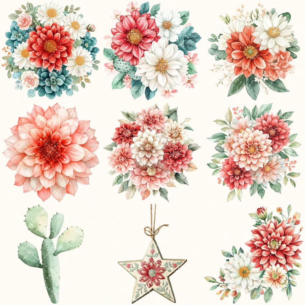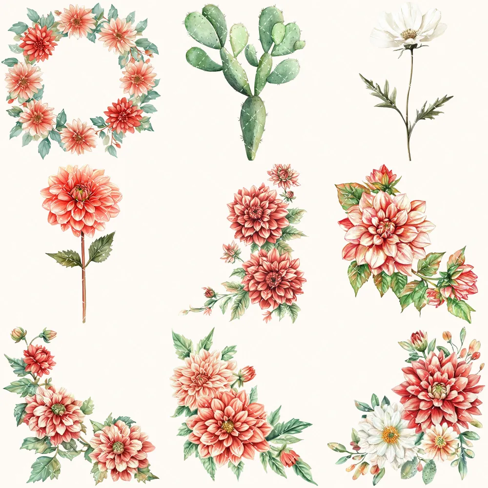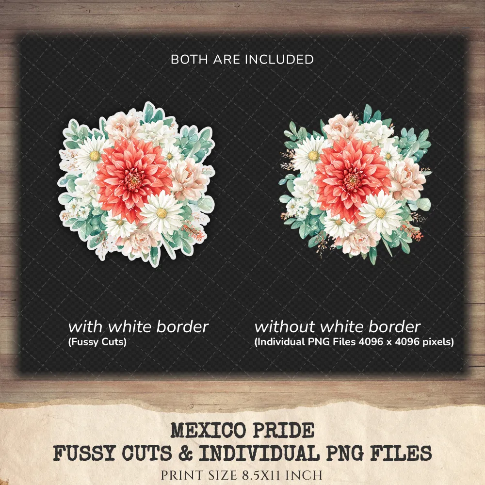 Mexico Pride Floral Arrangements, Dahlia Floral PNG, Dahlia Bouquet, Mexican Floral Art, Cactus Decor, Ornaments, Digital Download