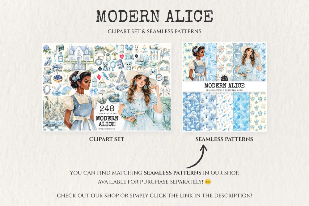 1. Modern Alice Seamless Patterns (40 JPG files):