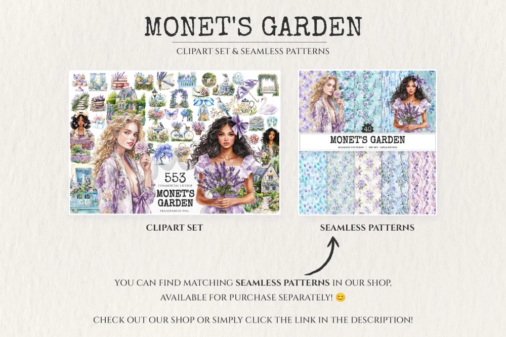 1. Monet’s Garden Seamless Patterns (40 JPG files):