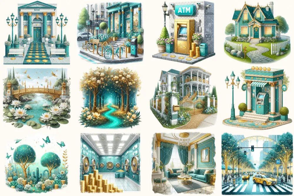Transform homes and commercial spaces with custom artwork and prints. Our watercolor clipart brings an artistic touch to interior decor that captivates and inspires.