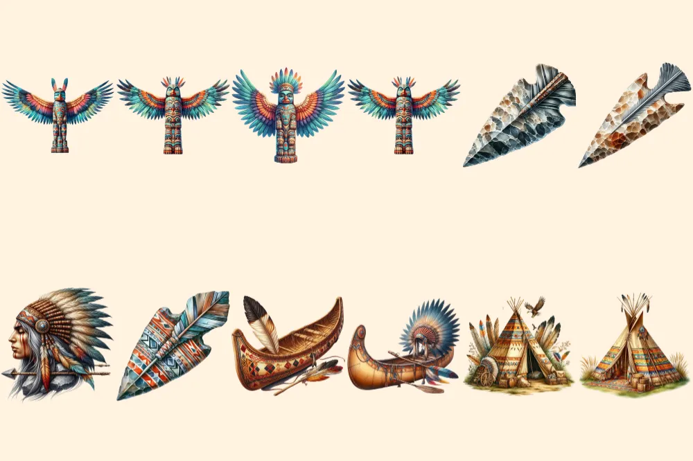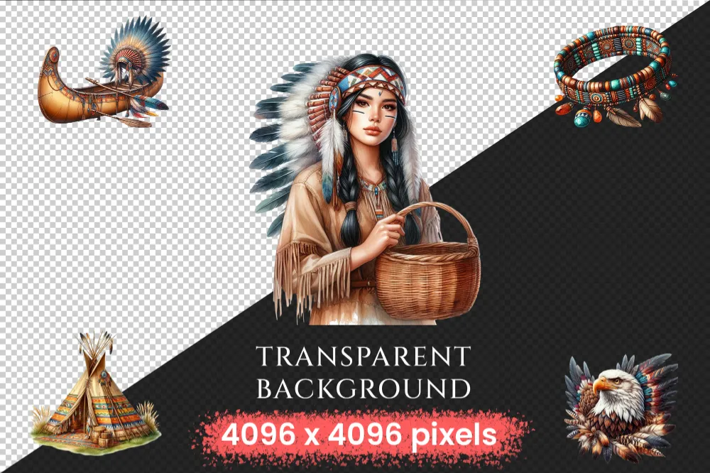 Native America (P-2) PNG Clipart Collection – 57 PNG, Cultural illustrations, Traditional graphics, Commercial use, Digital download
