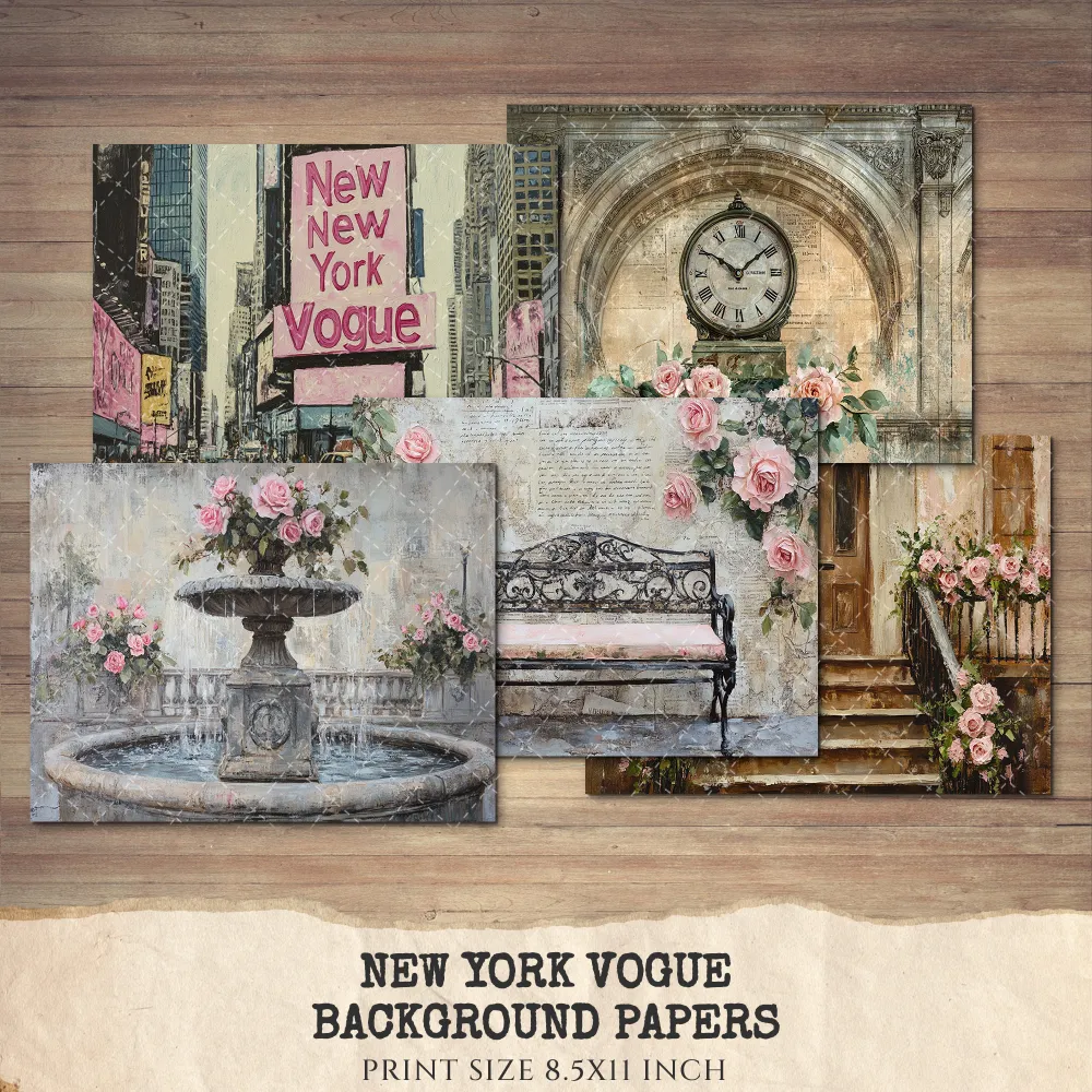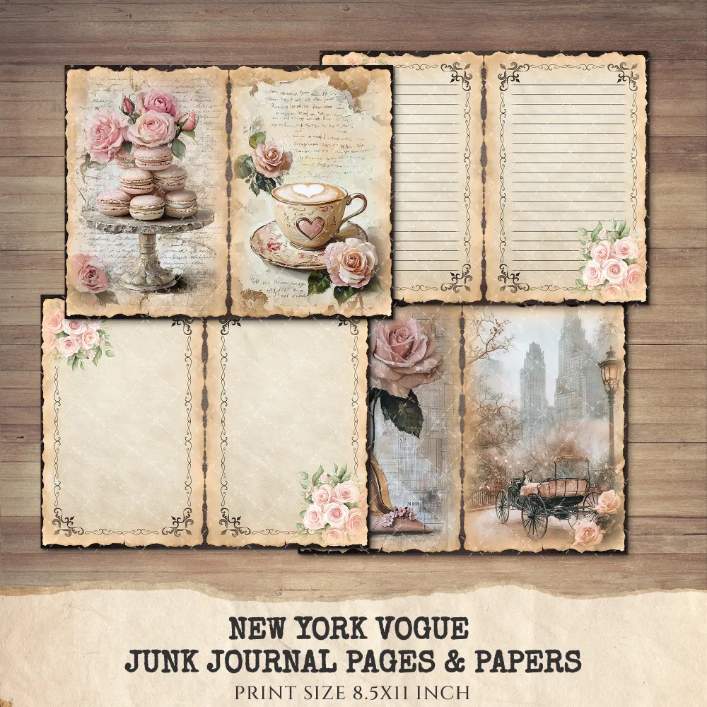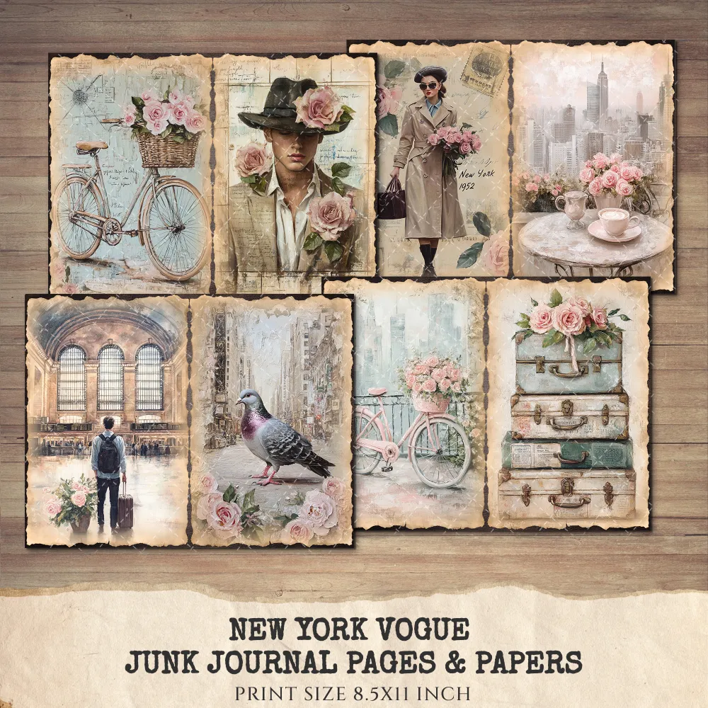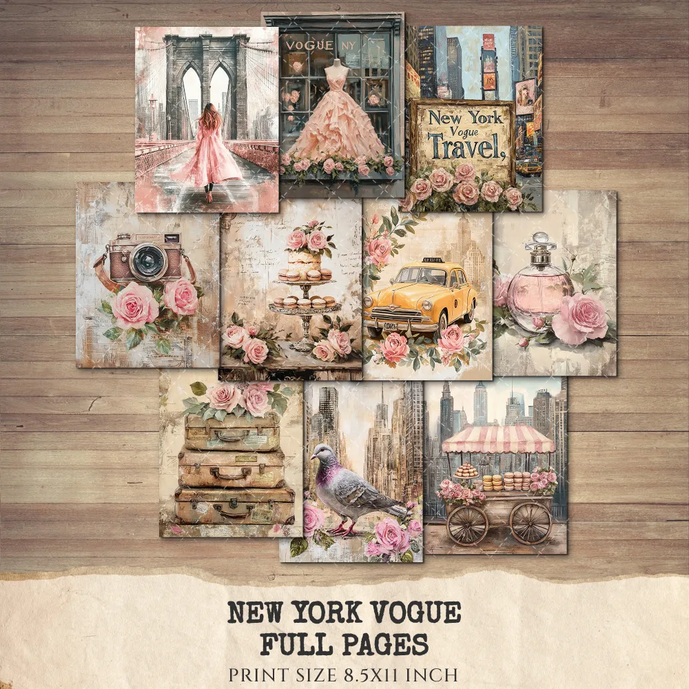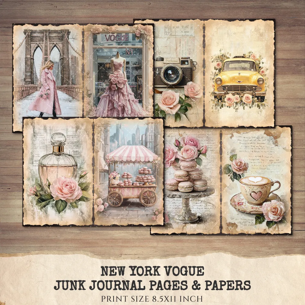 New York Vogue Junk Journal Pages & Papers – Chic New York Travel, Fashion, Modern Travel Printable, Scrapbook, Floral, Digital Download