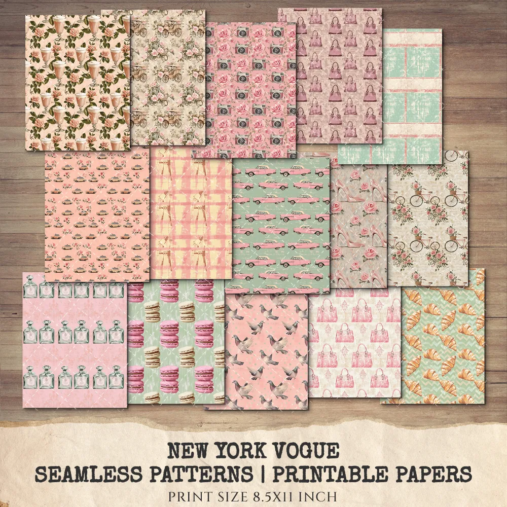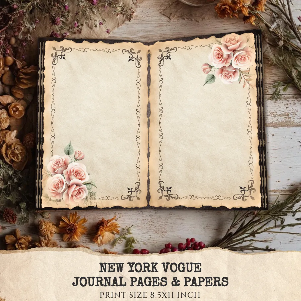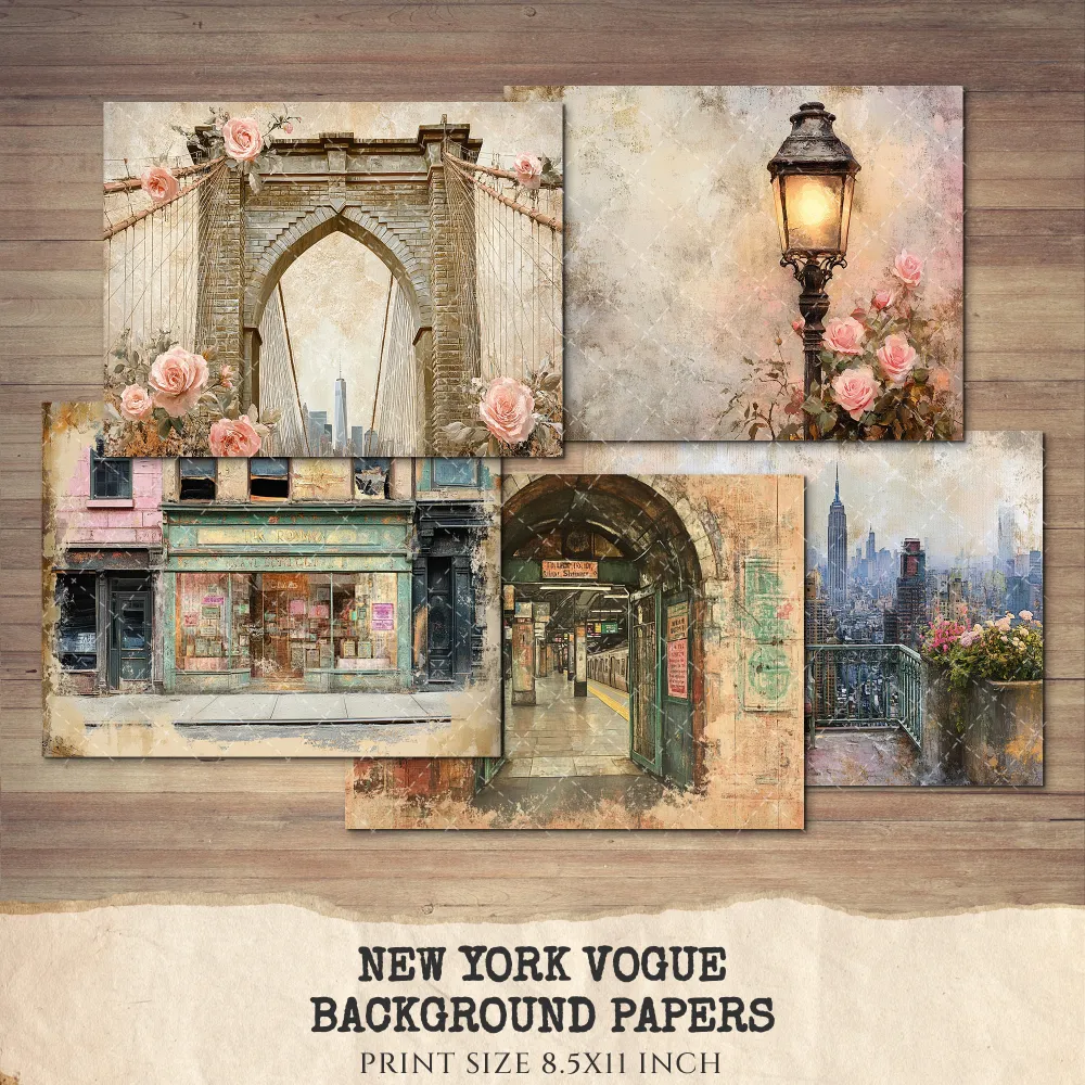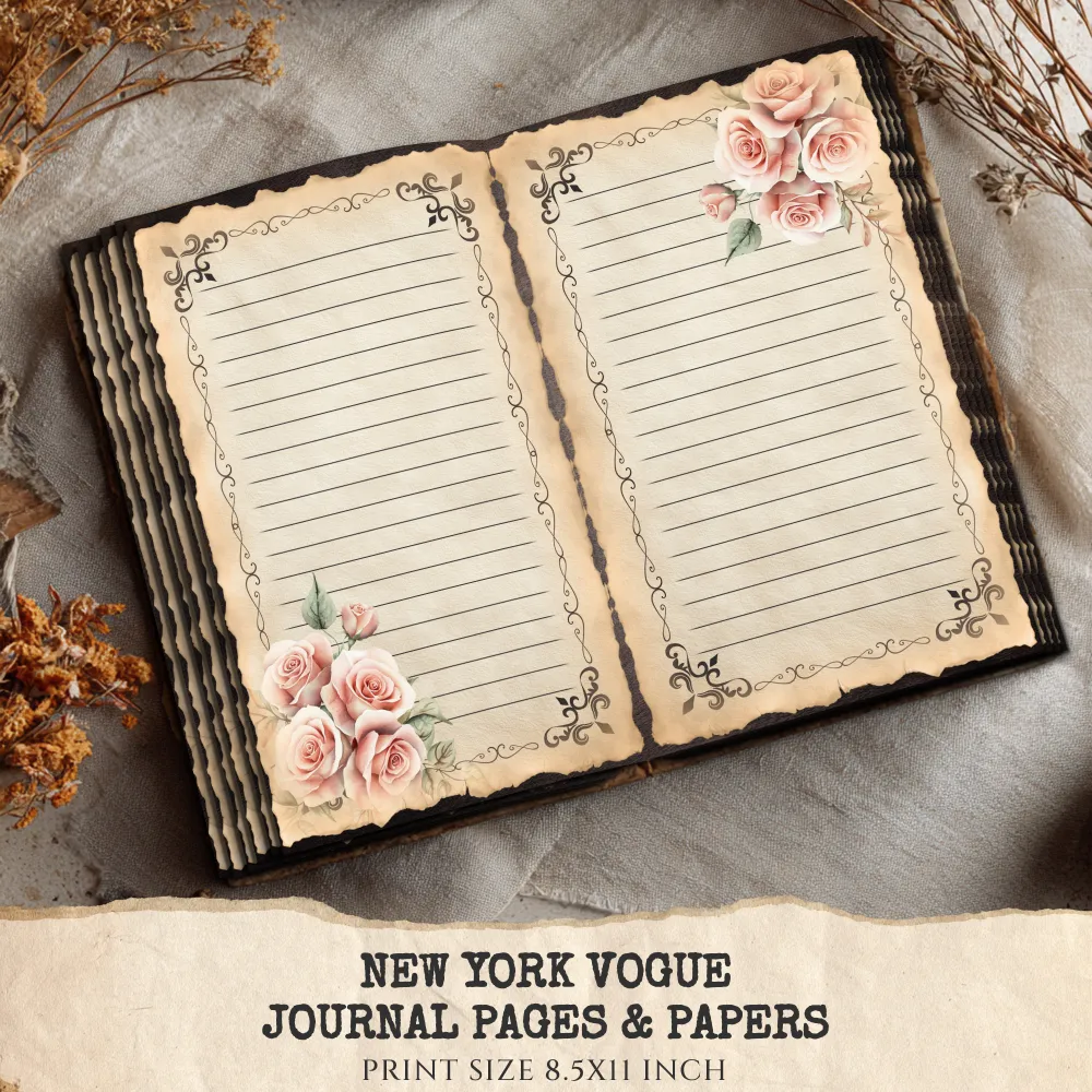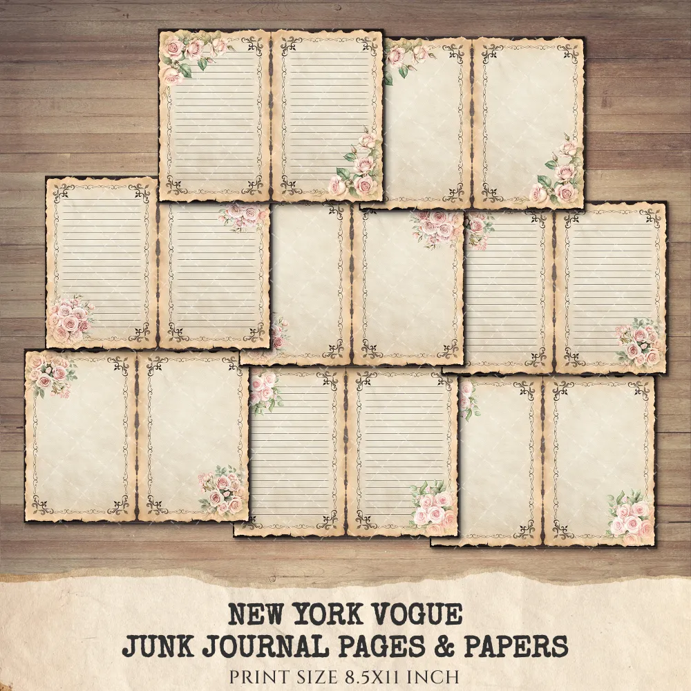 New York Vogue Junk Journal Pages & Papers – Chic New York Travel, Fashion, Modern Travel Printable, Scrapbook, Floral, Digital Download