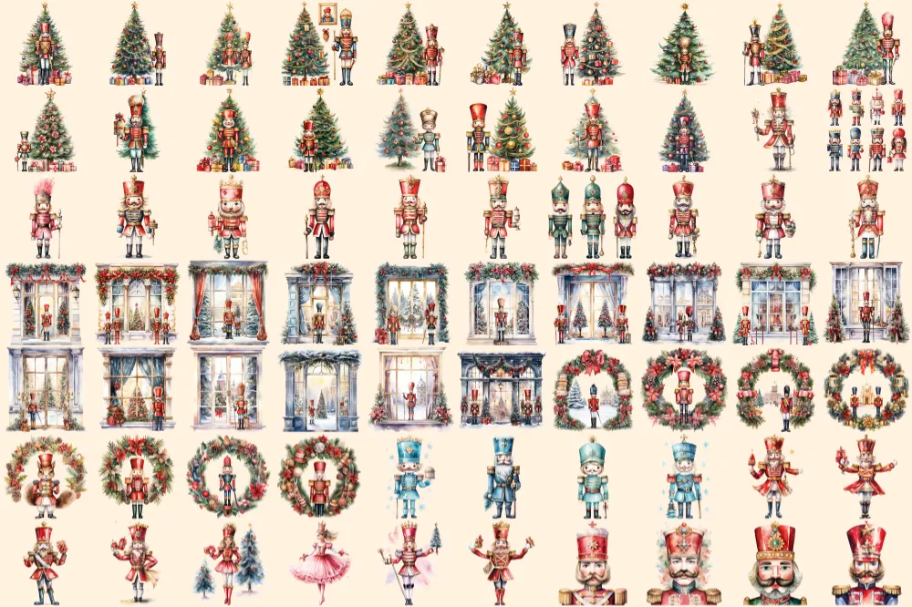 Nutcrackers Watercolor Clipart Bundle – 440+ transparent PNG, Holiday nutcracker graphics, Festive graphic, Commercial use, Digital download