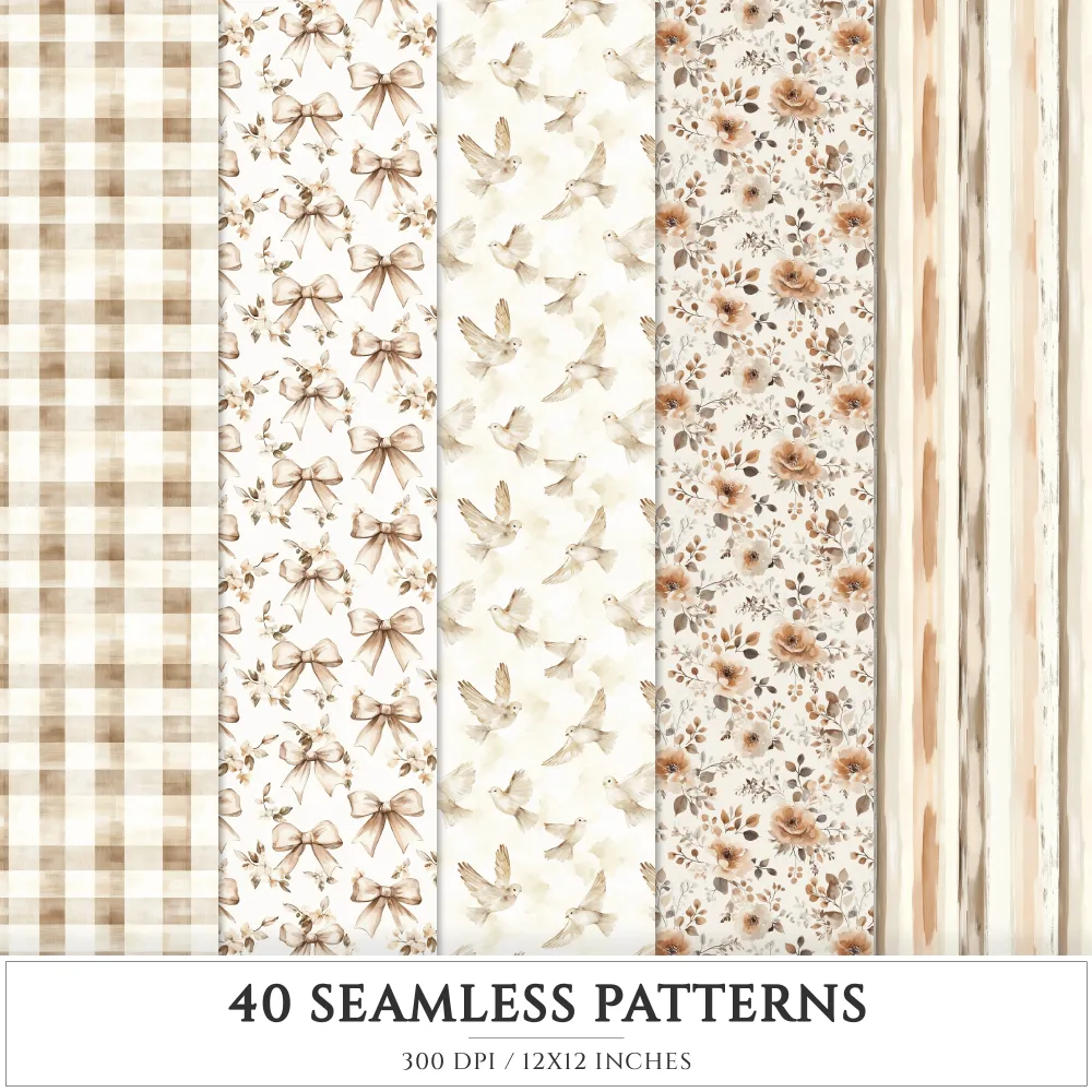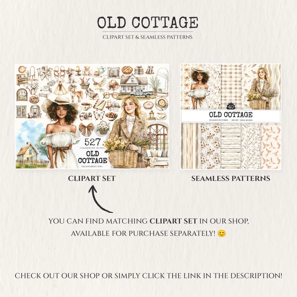Old Cottage Seamless Patterns, Cottage flowers JPEG, Cottagecore seamless pattern, Floral rustic repeating pattern, Digital scrapbook paper