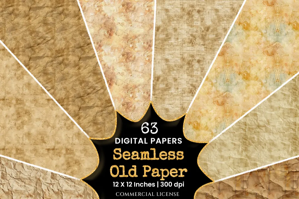 Old Paper Textures Seamless Digital Paper – 63 Scrapbook patterns, Grunge paper backgrounds, Ancient paper, Commercial use, Digital download