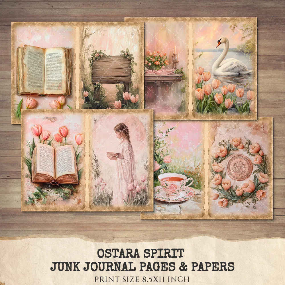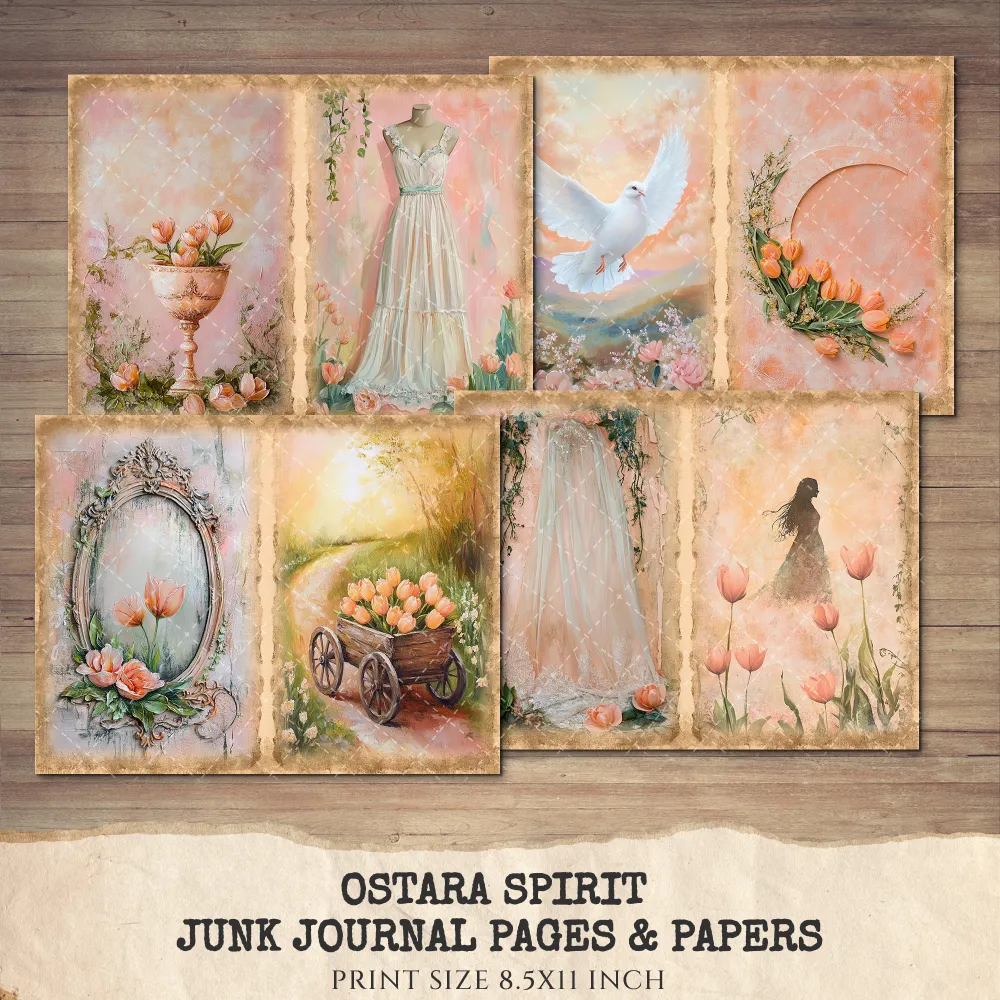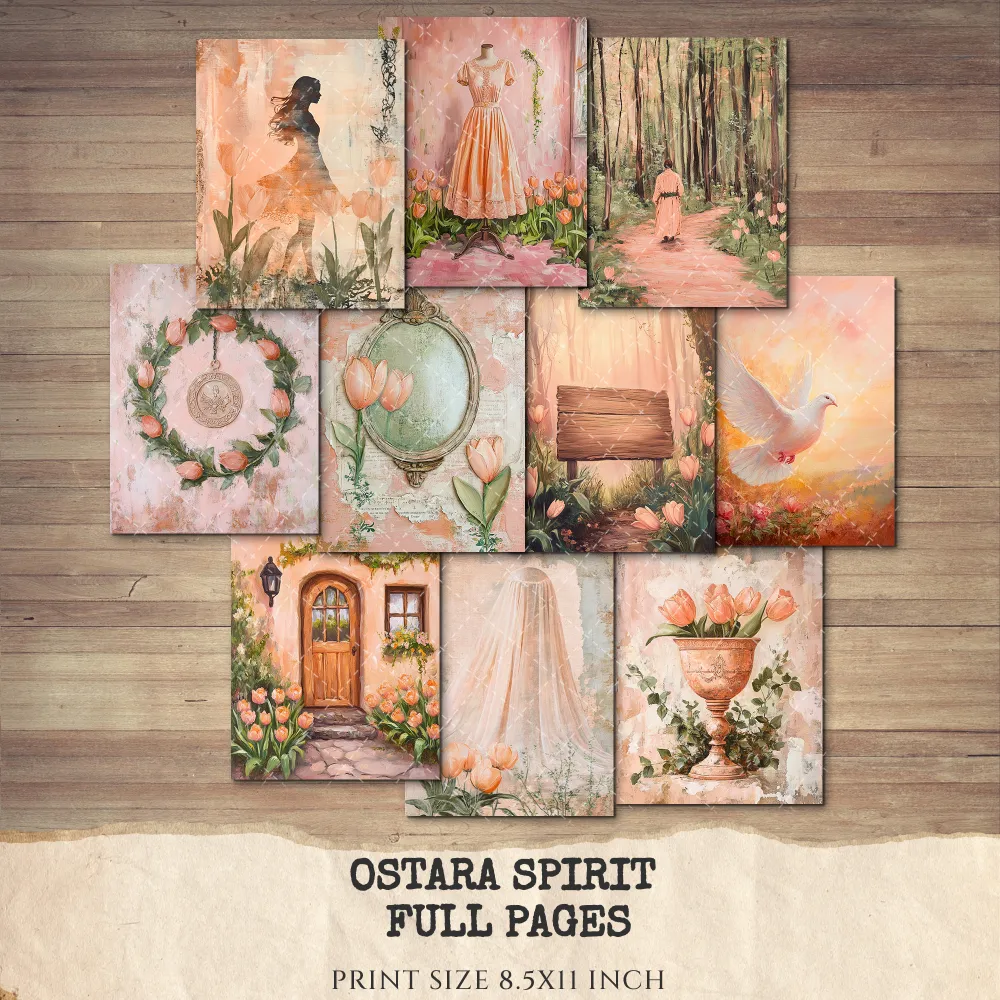 Ostara Spirit Junk Journal Pages & Papers – Pagan Spring Equinox, Goddess Ritual Printable, Eggs, Rabbits, Scrapbook, Digital Download