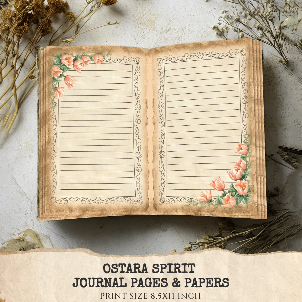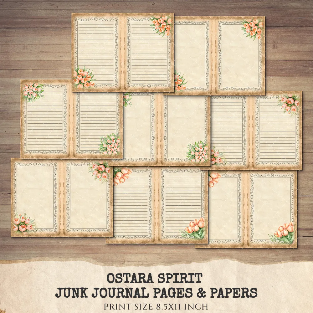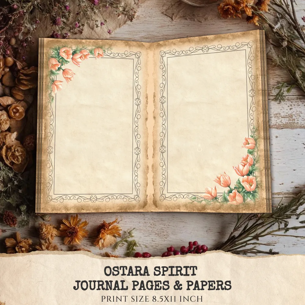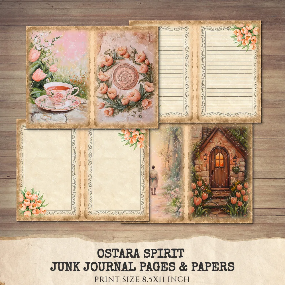 Ostara Spirit Junk Journal Pages & Papers – Pagan Spring Equinox, Goddess Ritual Printable, Eggs, Rabbits, Scrapbook, Digital Download