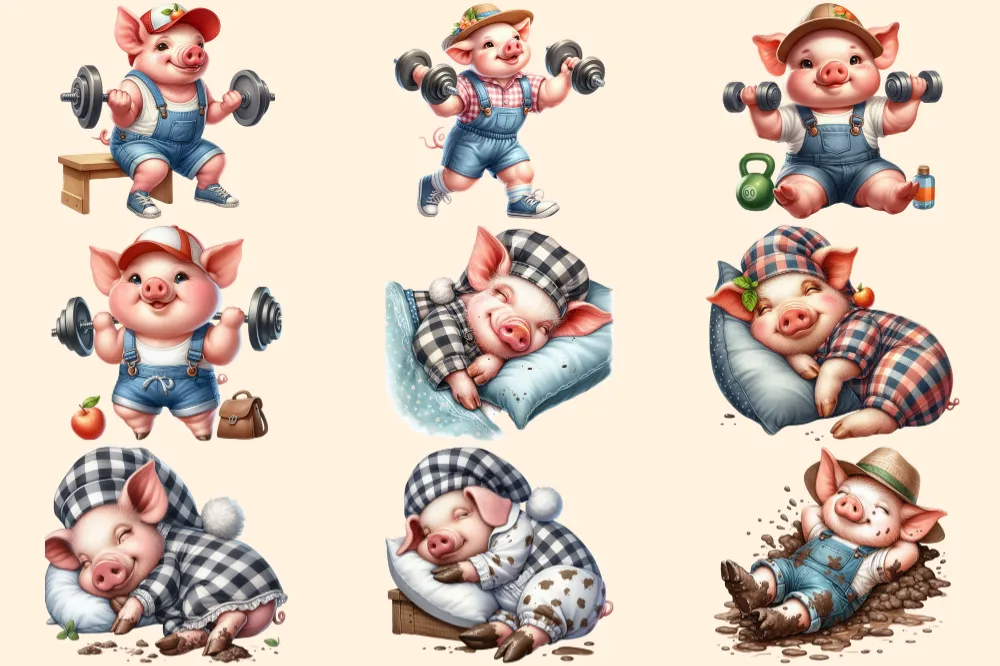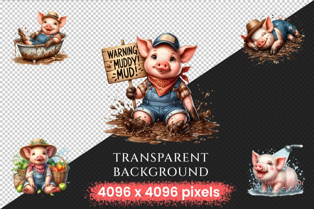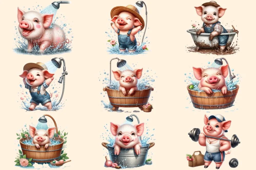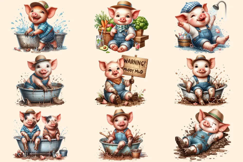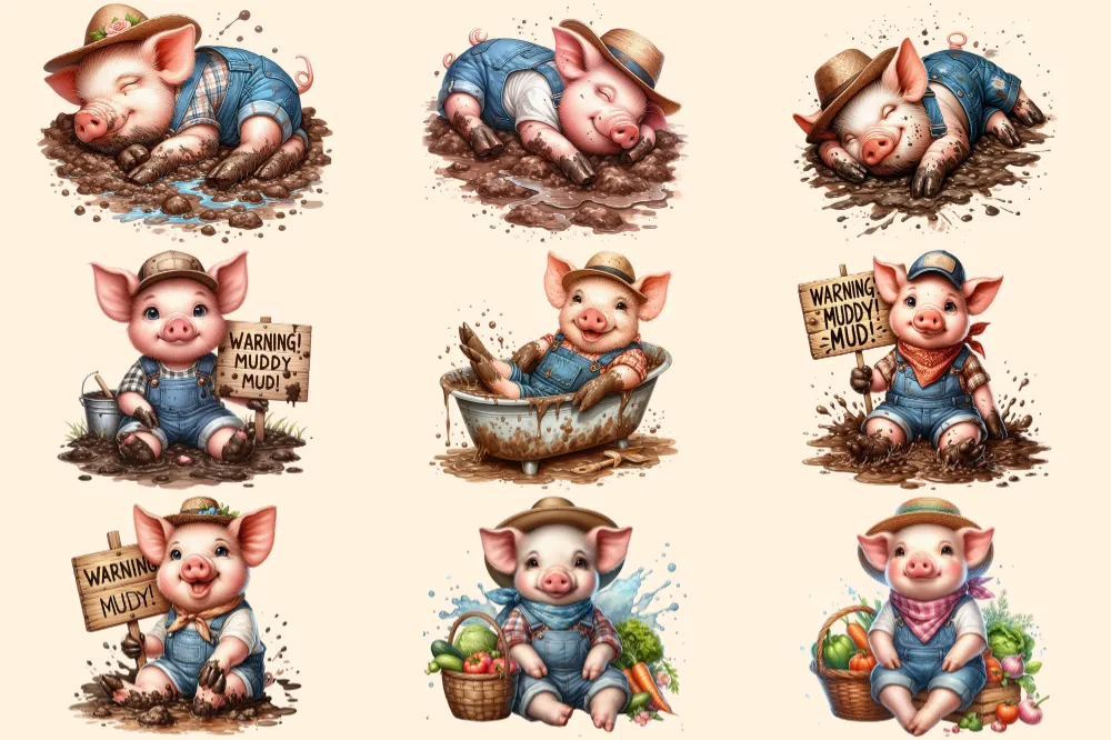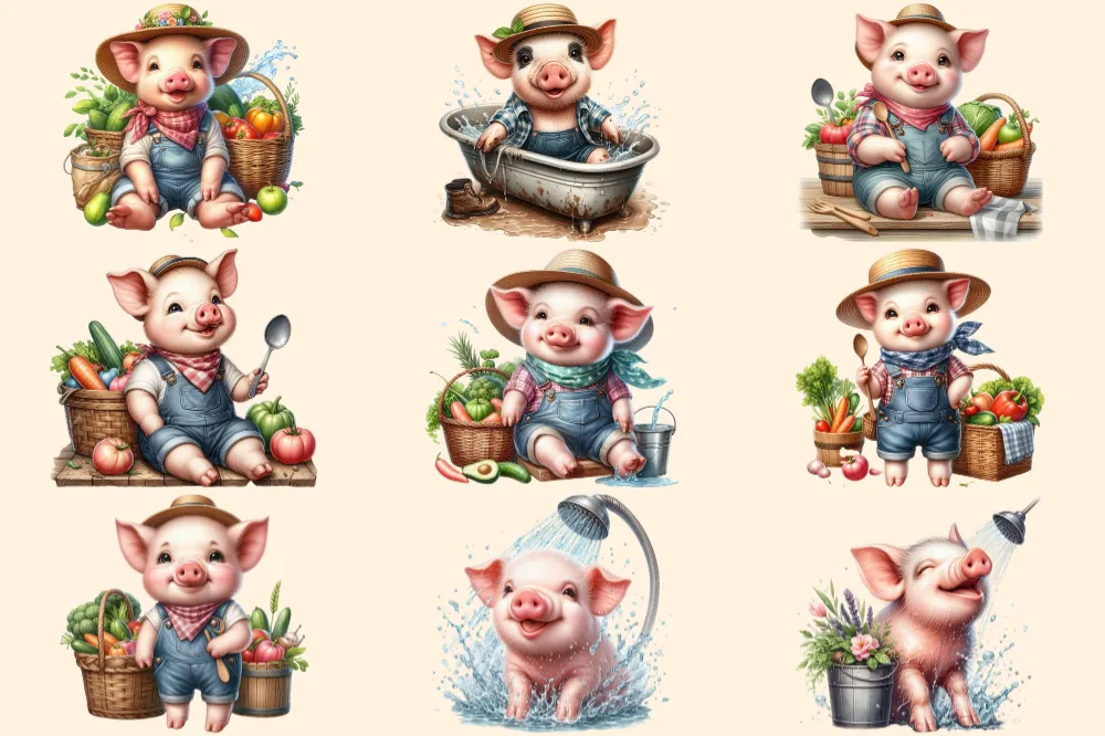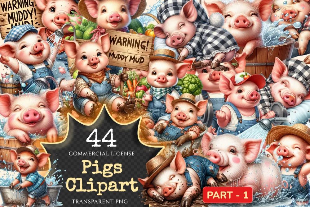 Pigs PNG Clipart Collection – 44 PNG, Adorable piggy illustrations, Farm animal printables, Commercial use, Digital download