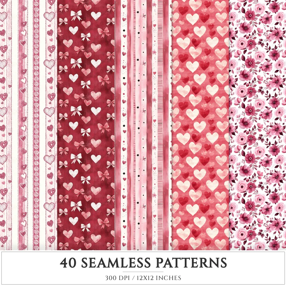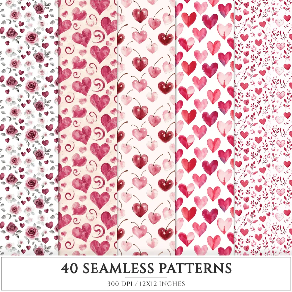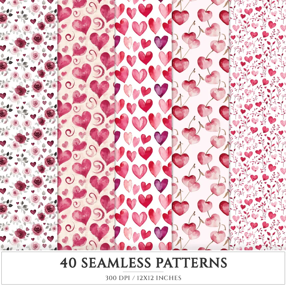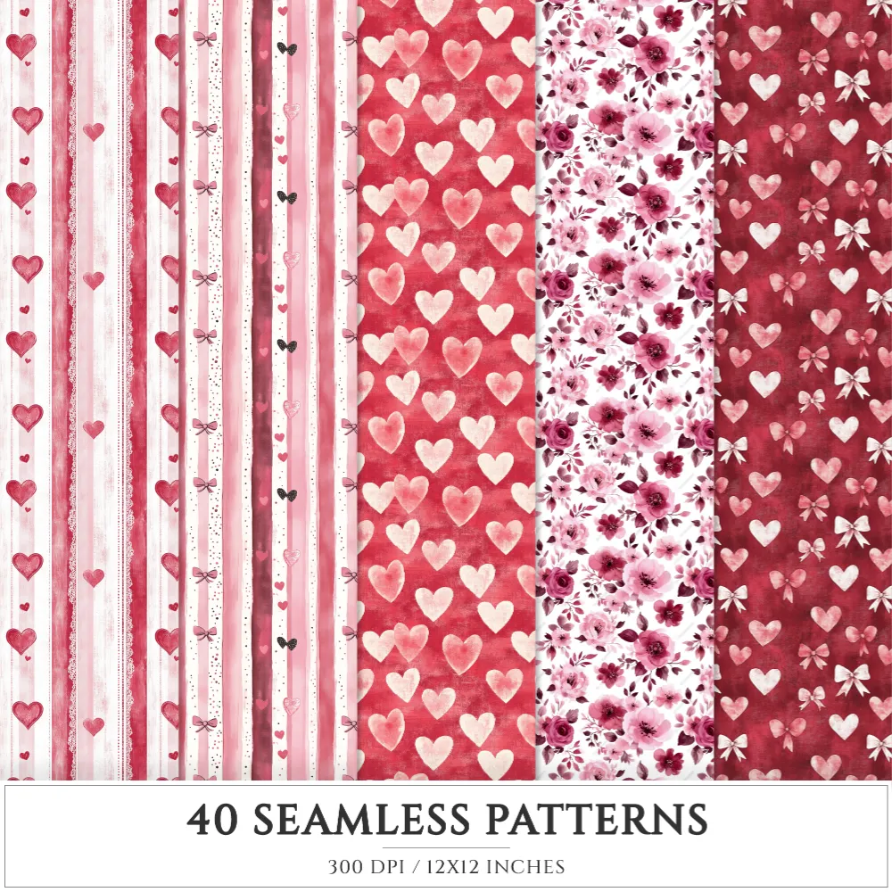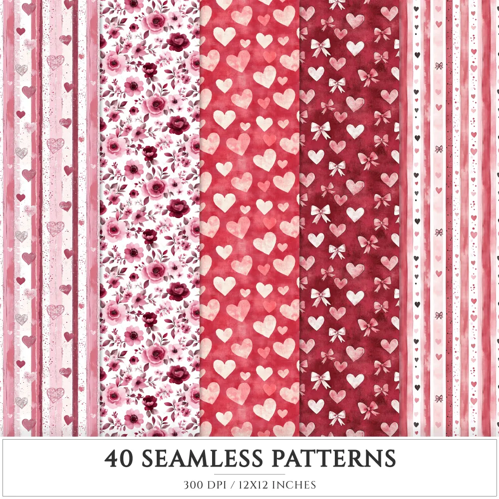 Planning in Love Seamless Patterns, Shabby chic roses JPEG, Heart infinite pattern, Valentine repeating pattern, Digital scrapbook paper