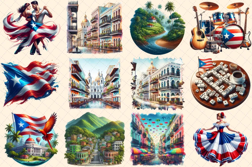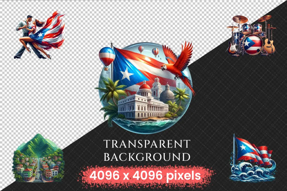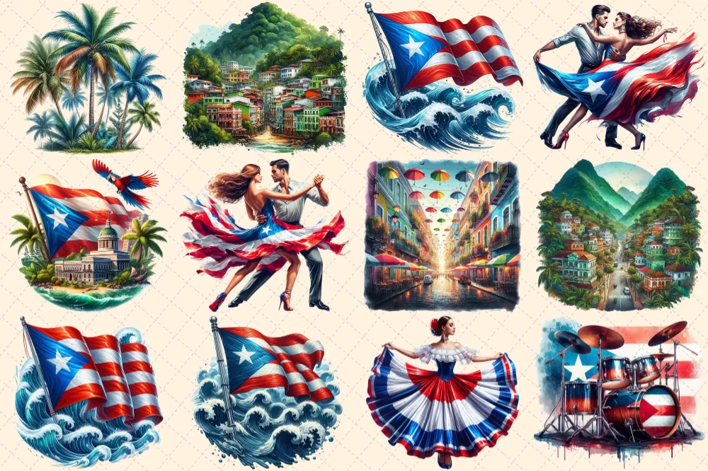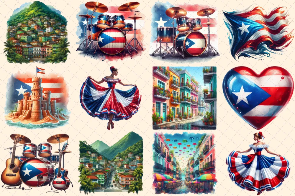 Puerto Rico (P-2) PNG Clipart Collection – 58 PNG, Tropical travel illustrations, Puerto rico island prints, Commercial use,Digital download
