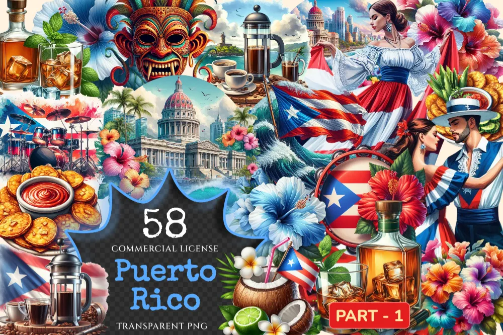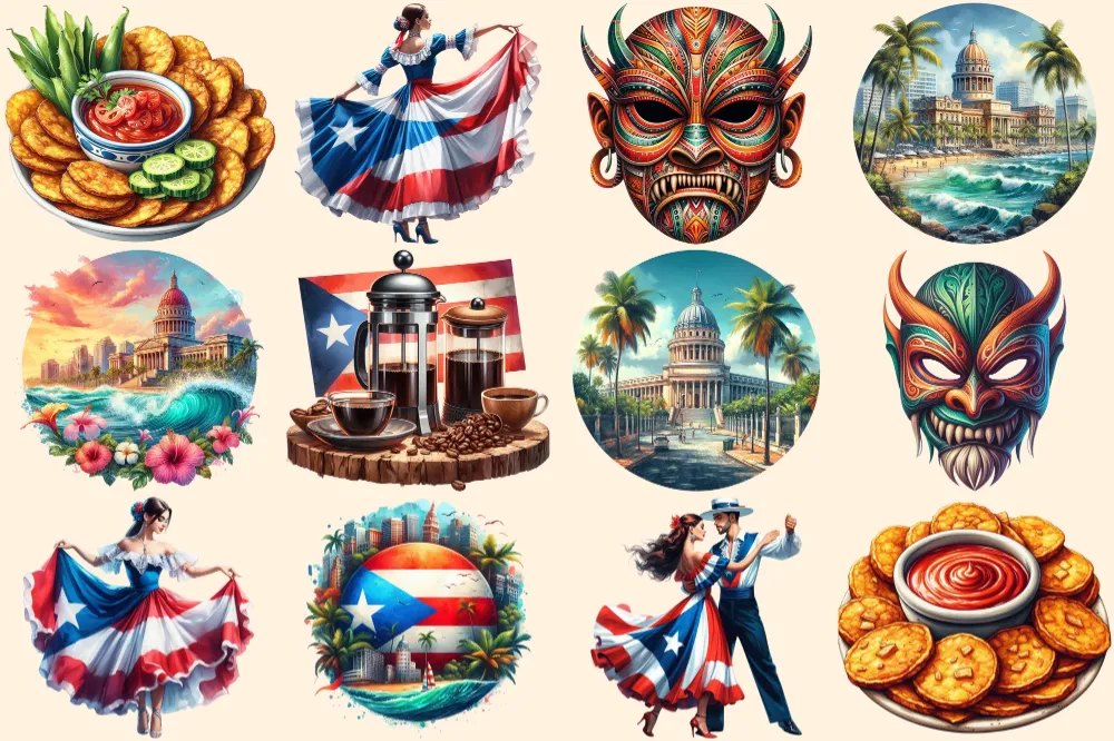 Puerto Rico PNG Clipart Collection – 58 PNG, Tropical travel illustrations, Puerto rico island prints, Commercial use, Digital download