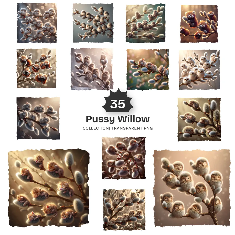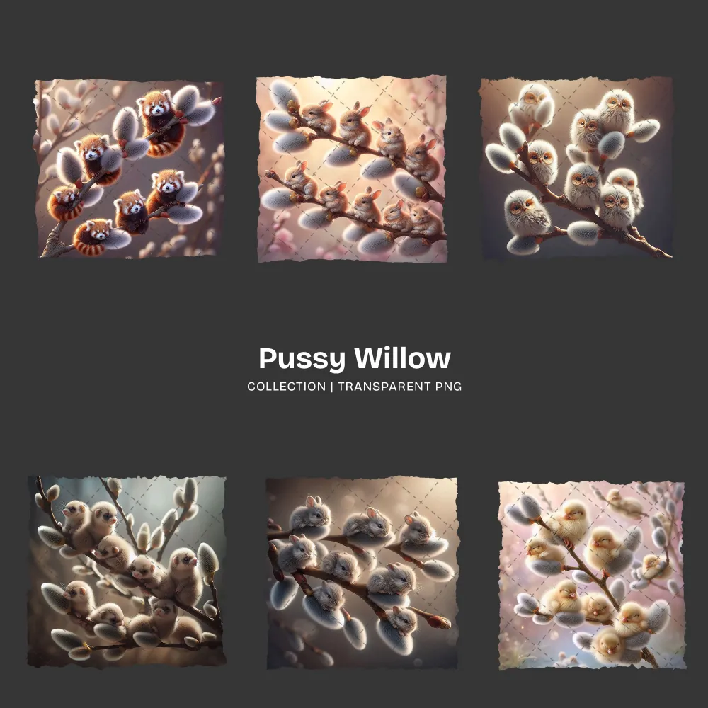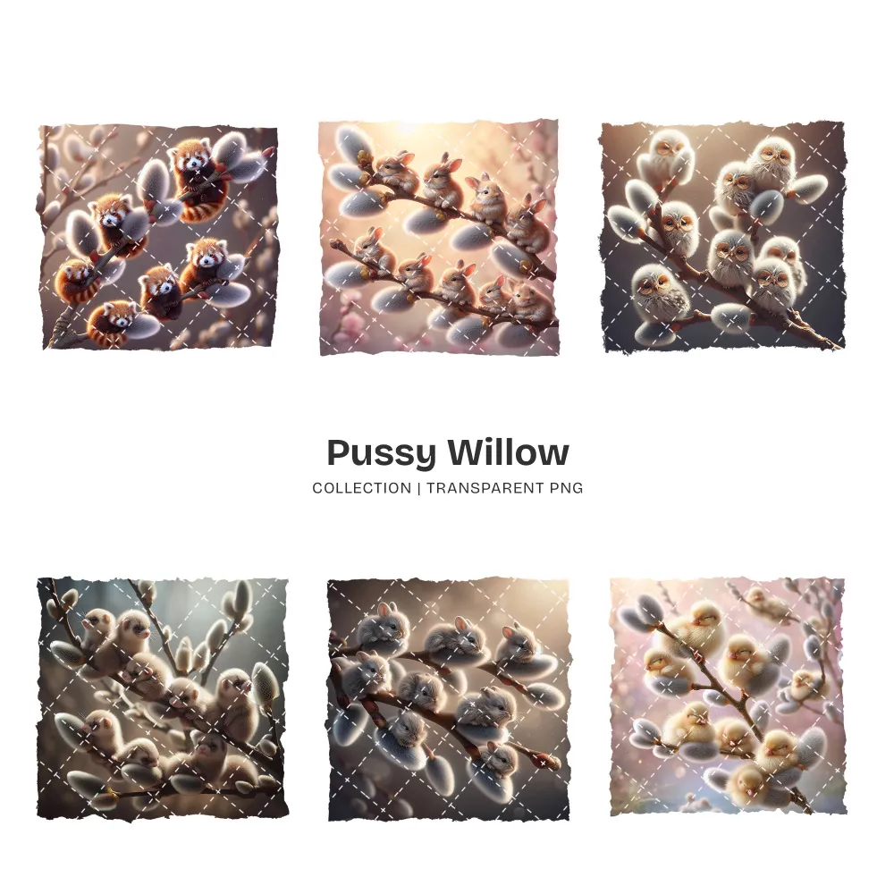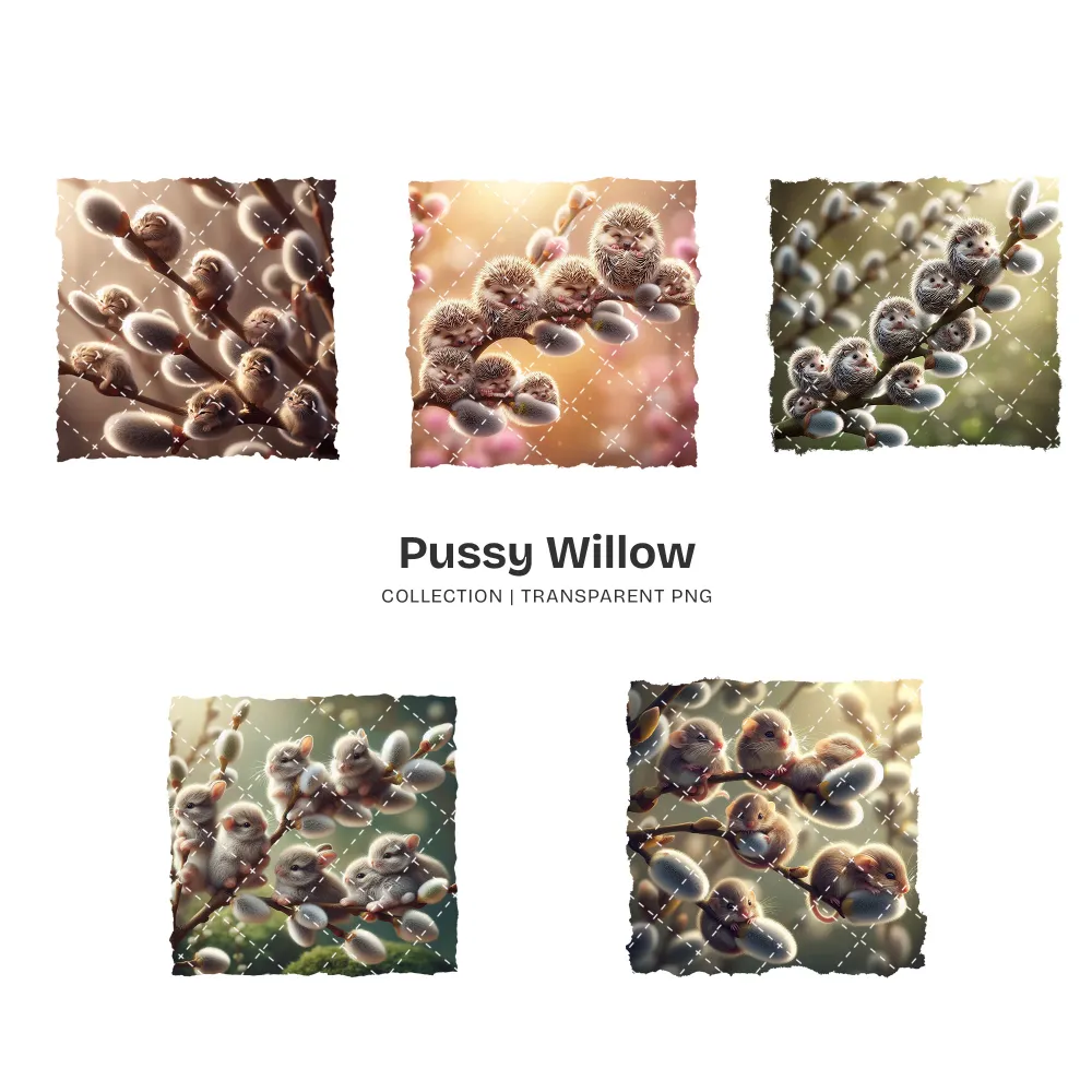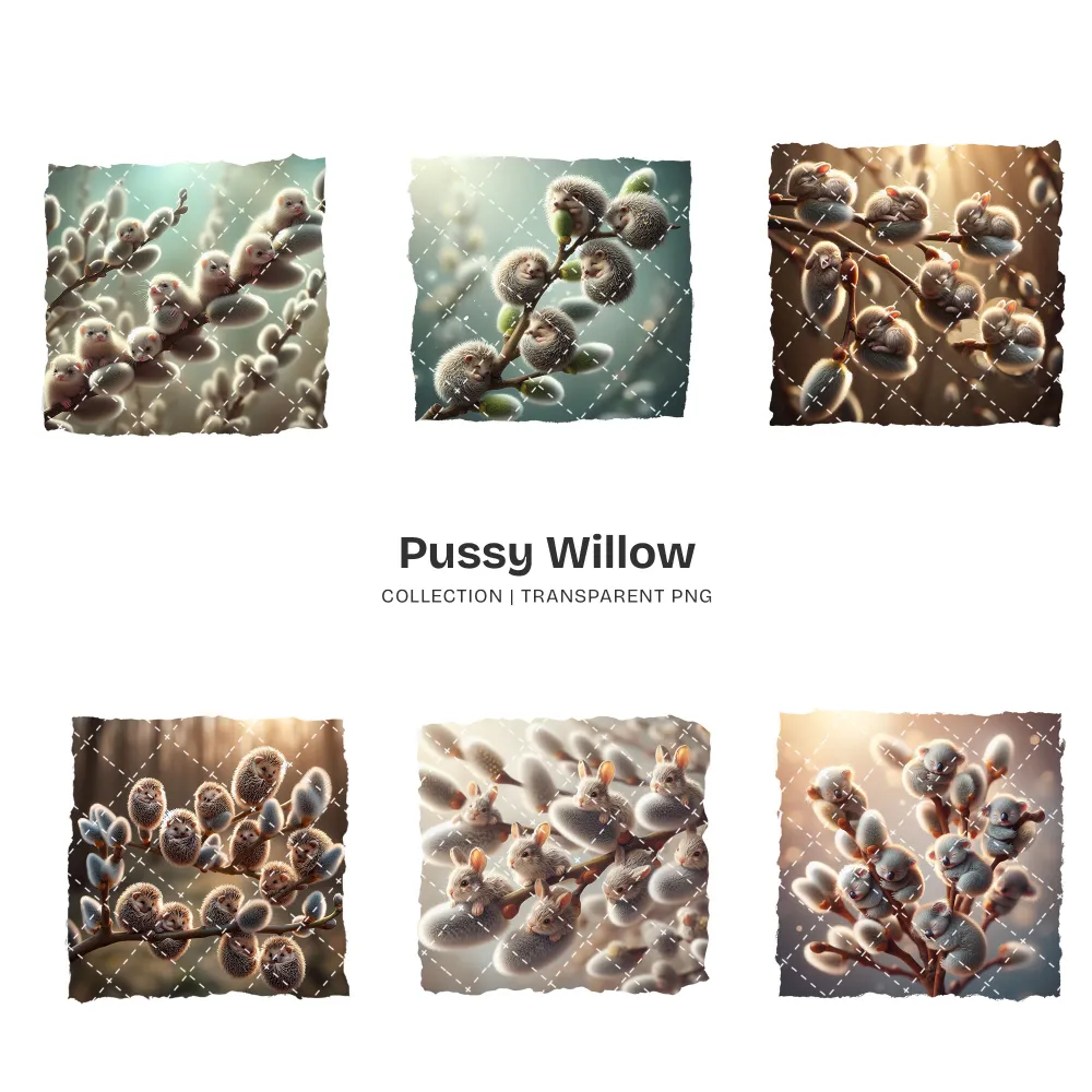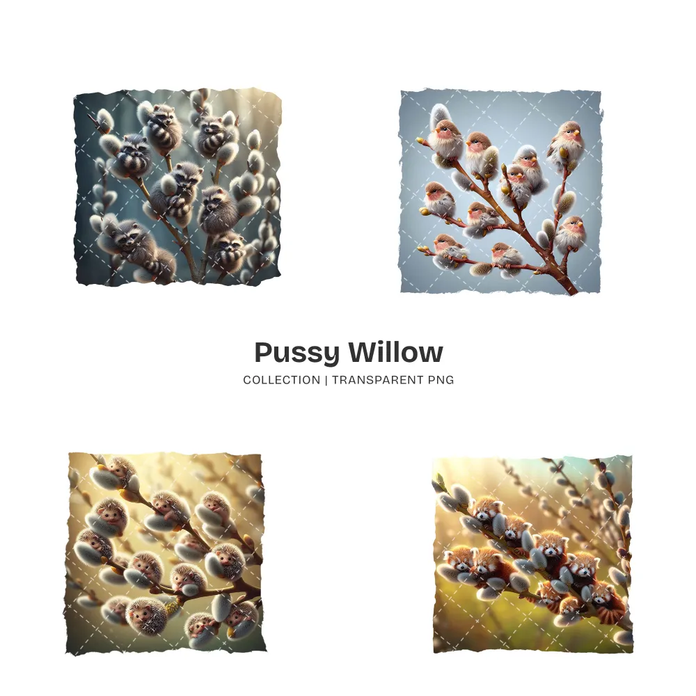 Pussy Willow With Animal PNG Clipart Collection – 35 PNG, Kitten Graphics, Mice, Bunny, Fluffy Printables, Commercial use, Digital download