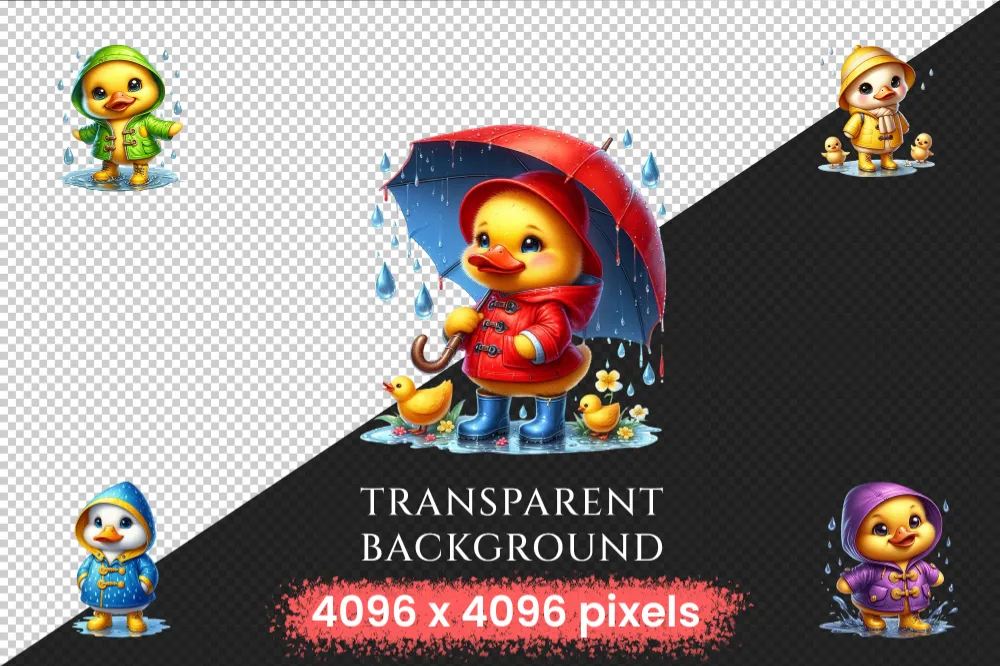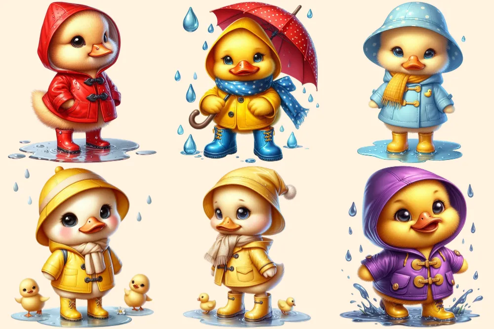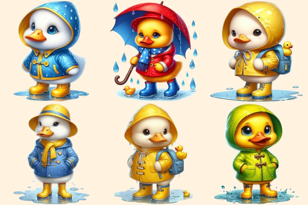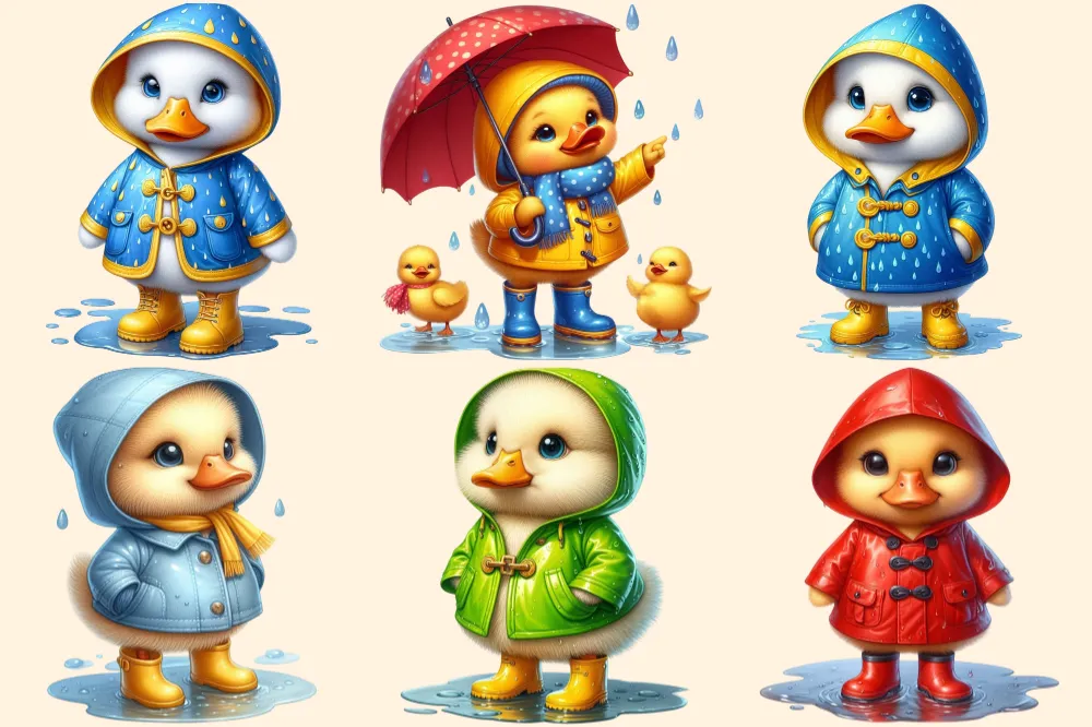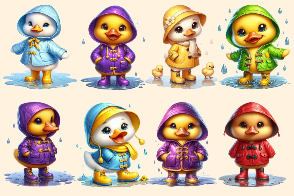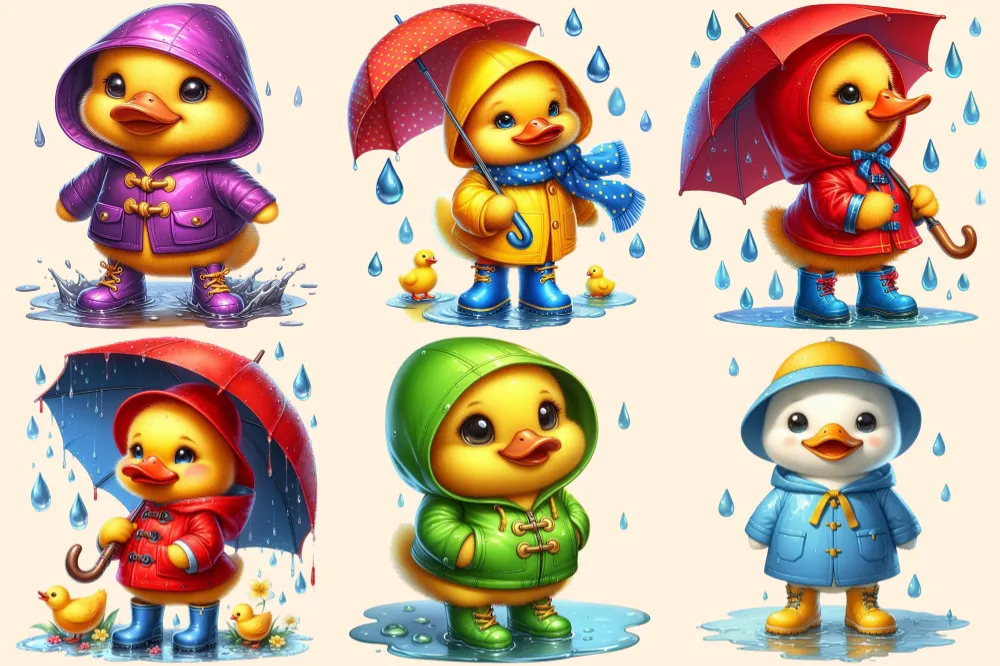 Raincoat Ducks PNG Clipart Collection – 32 PNG, Rainy day illustrations, Cute duck printables, Commercial use, Digital download
