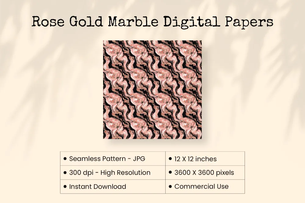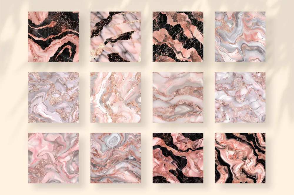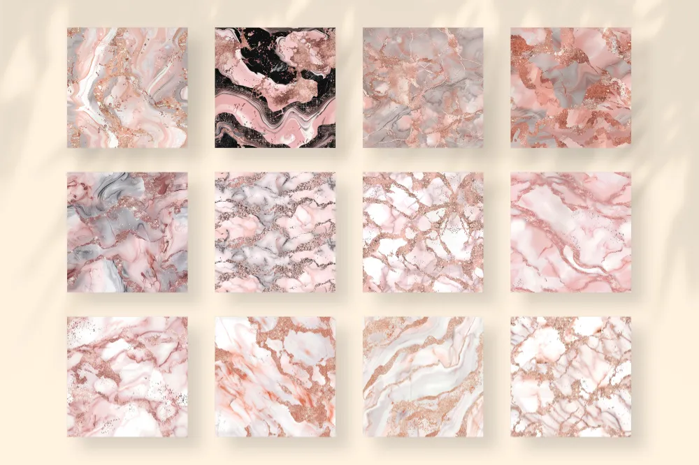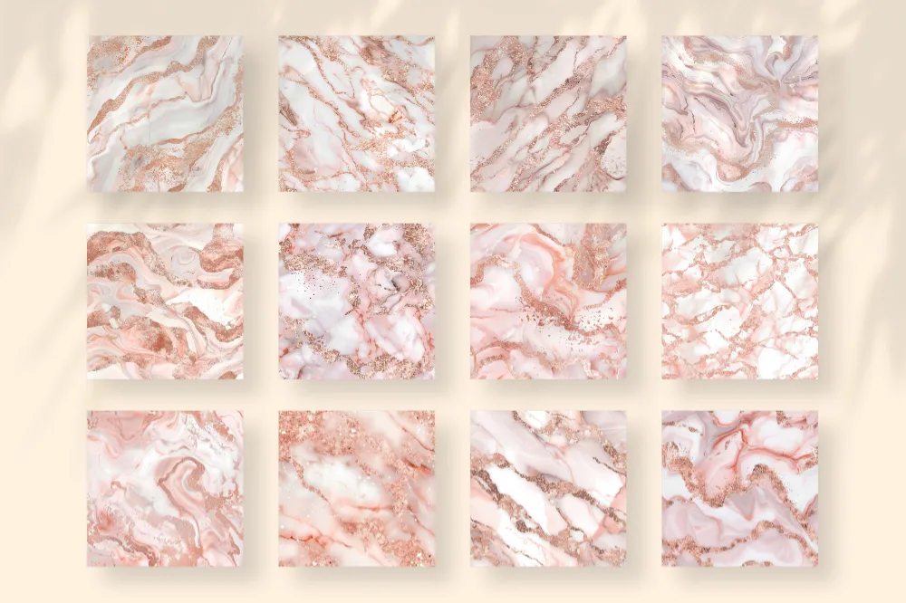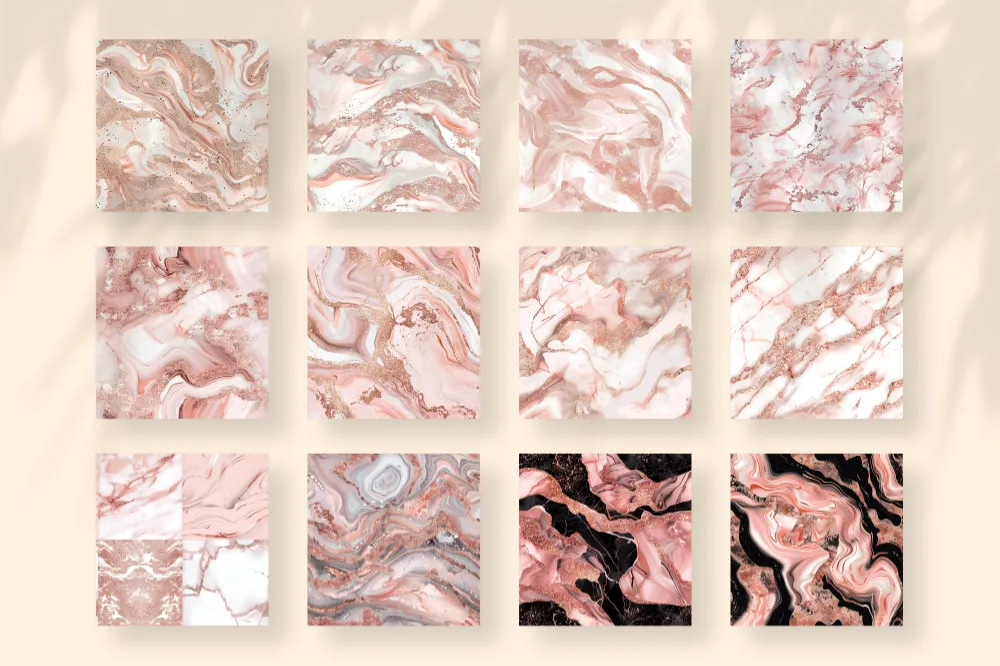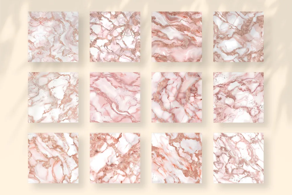 Rose Gold Marble Seamless Digital Paper – 69 Scrapbook patterns, Blush pink marble patterns, Marble foil, Commercial use, Digital download