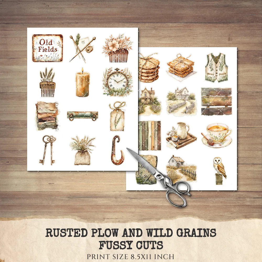1. Rusted Plow and Wild Grains Junk Journal Ephemera & Folio Kit: