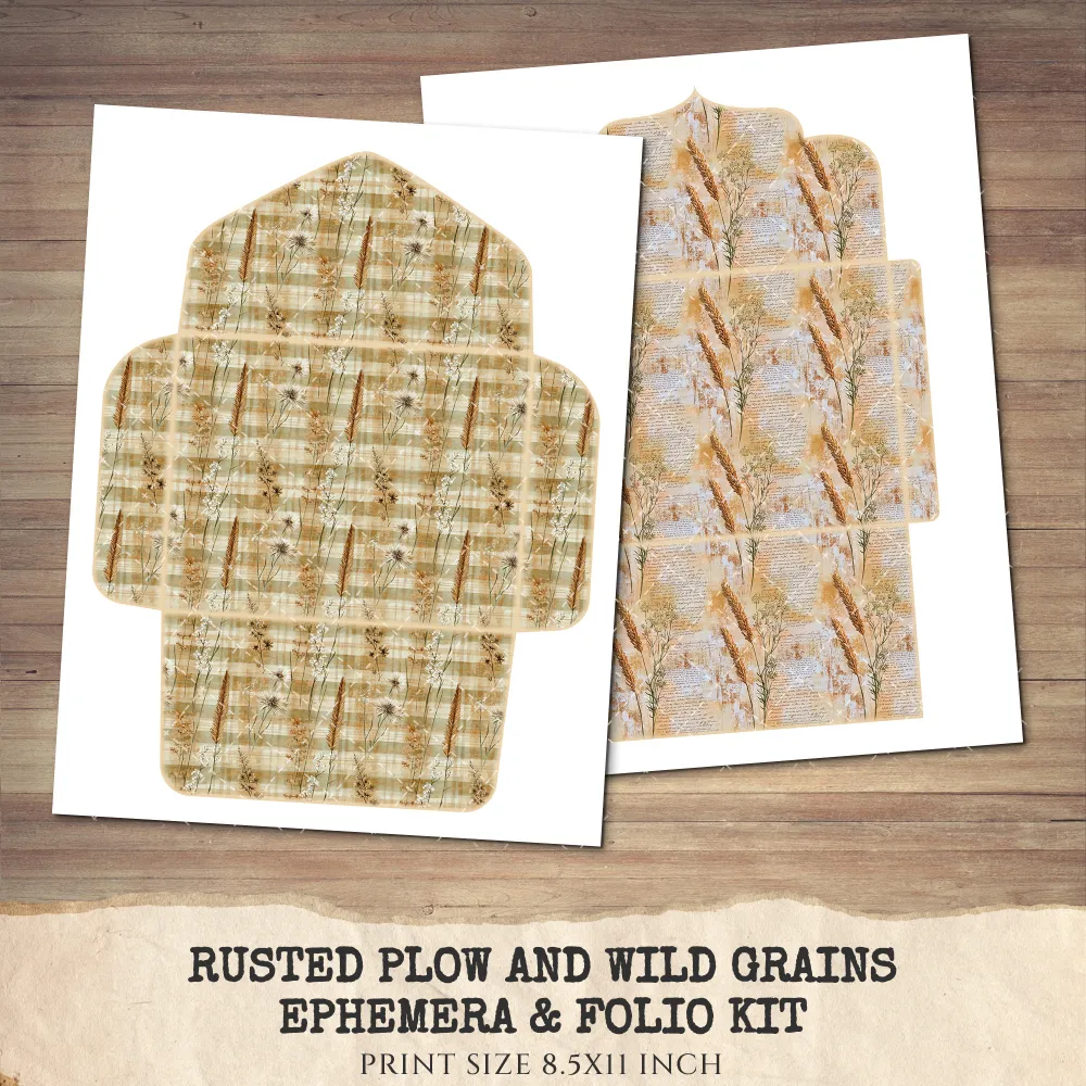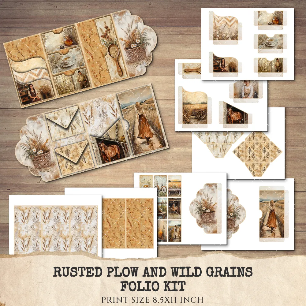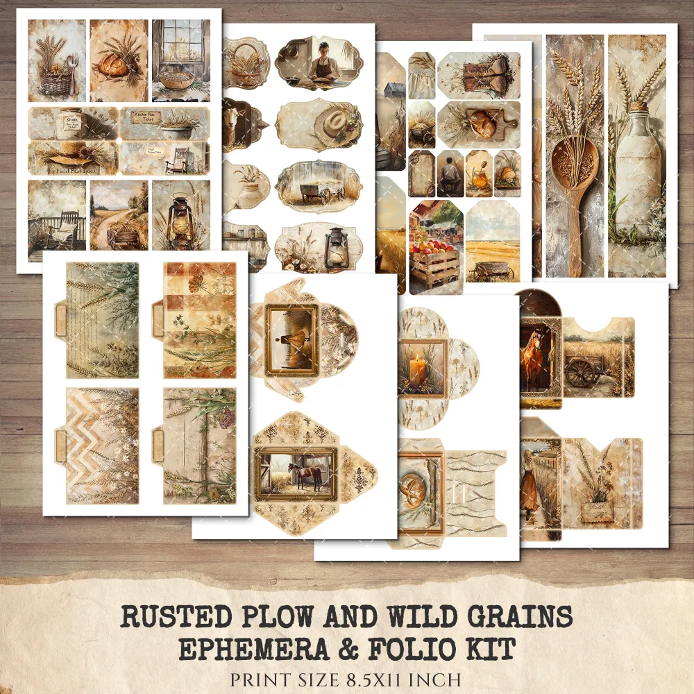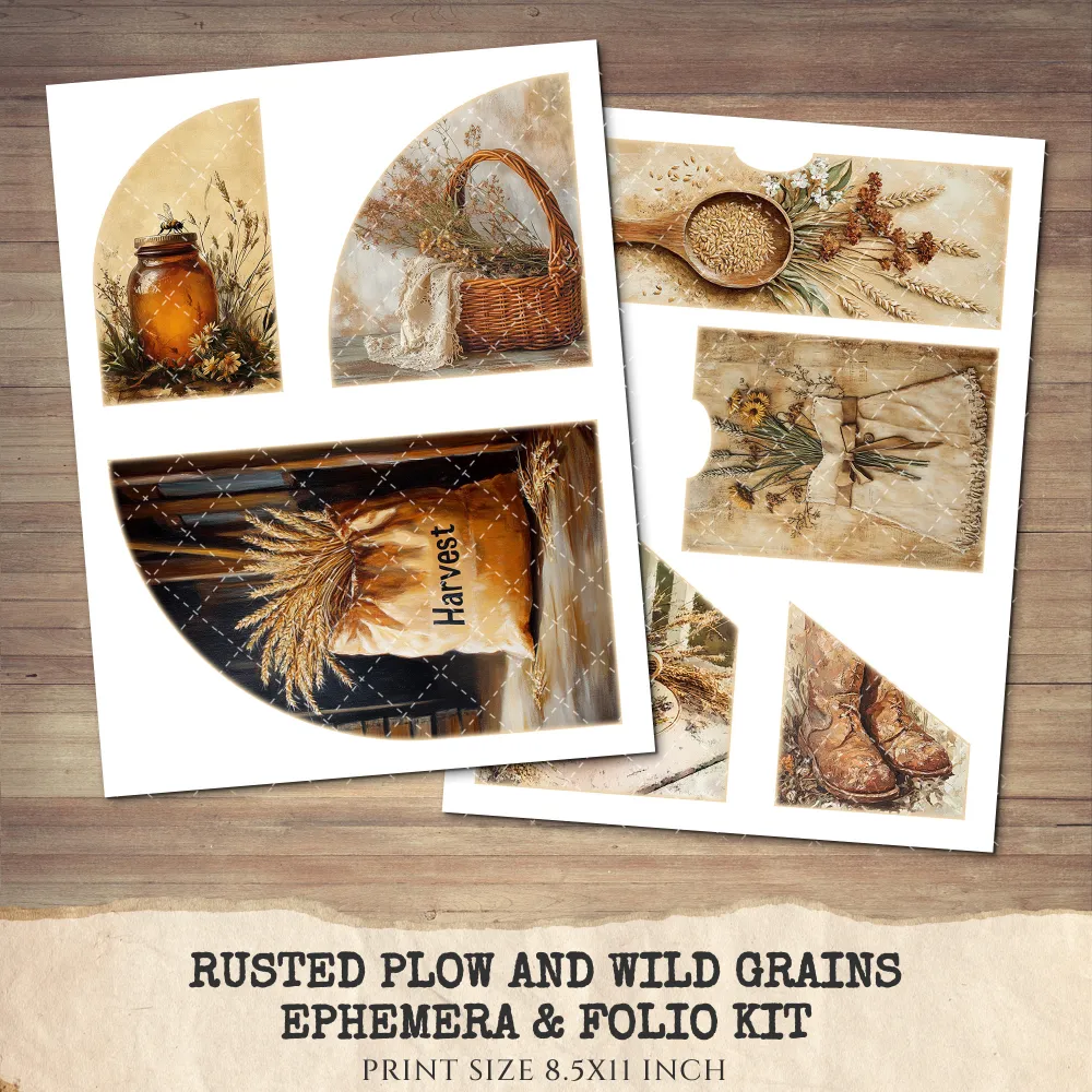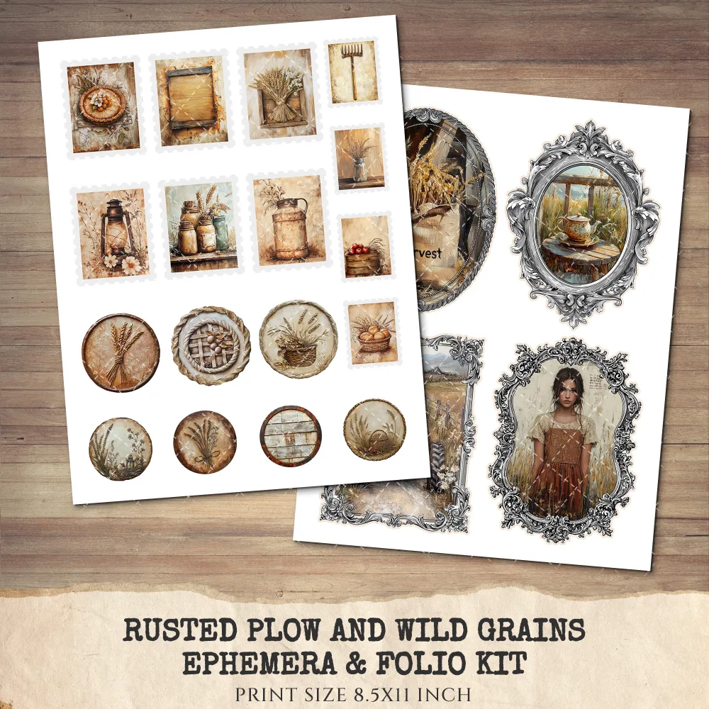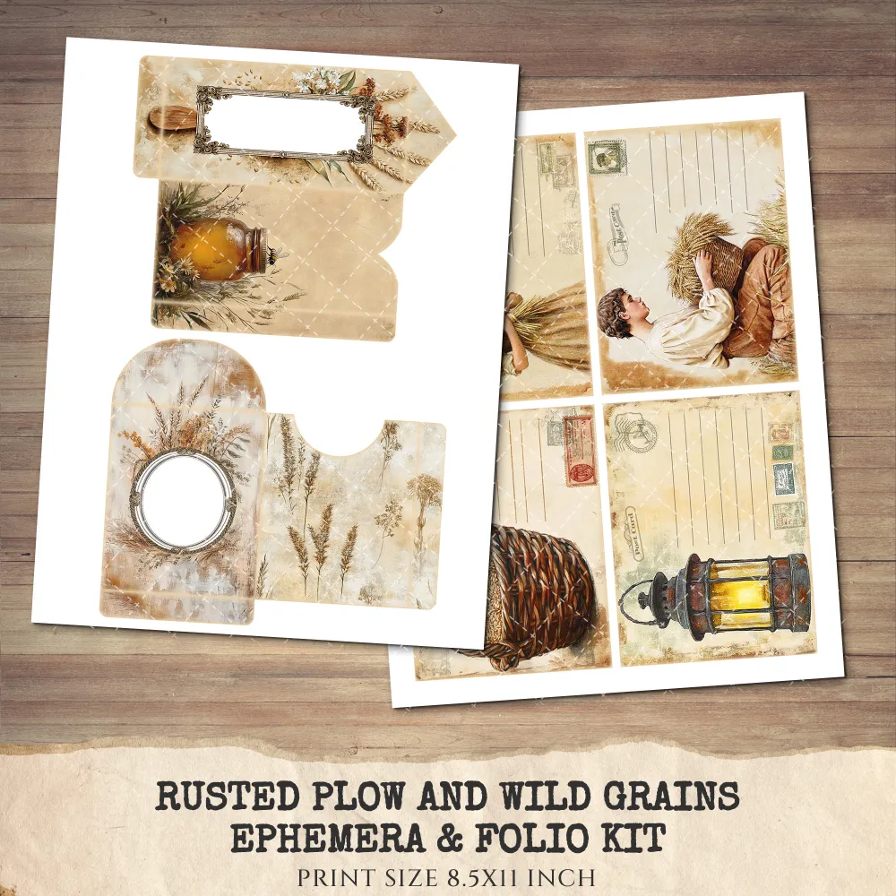 1. Rusted Plow and Wild Grains Junk Journal Pages & Papers: