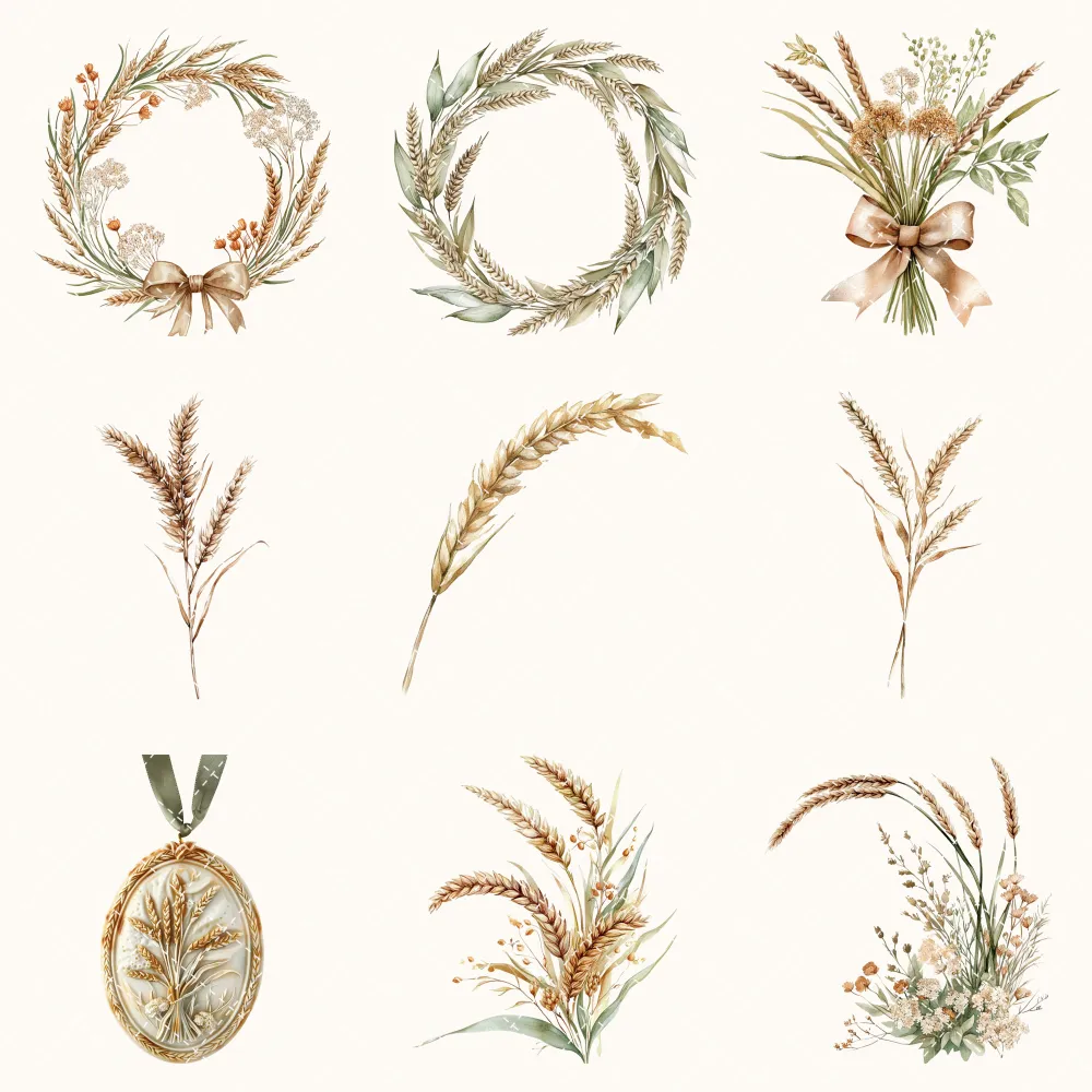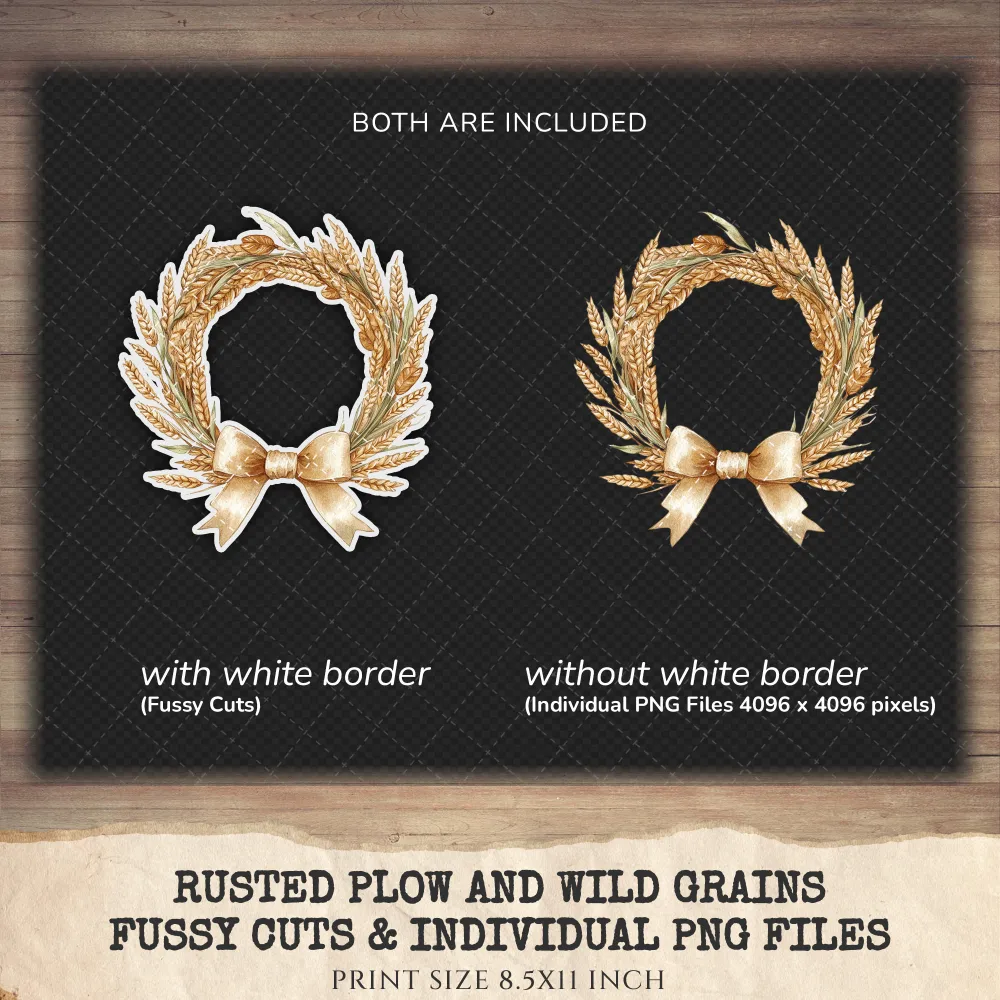 3. Rusted Plow and Wild Grains Clipart Set: