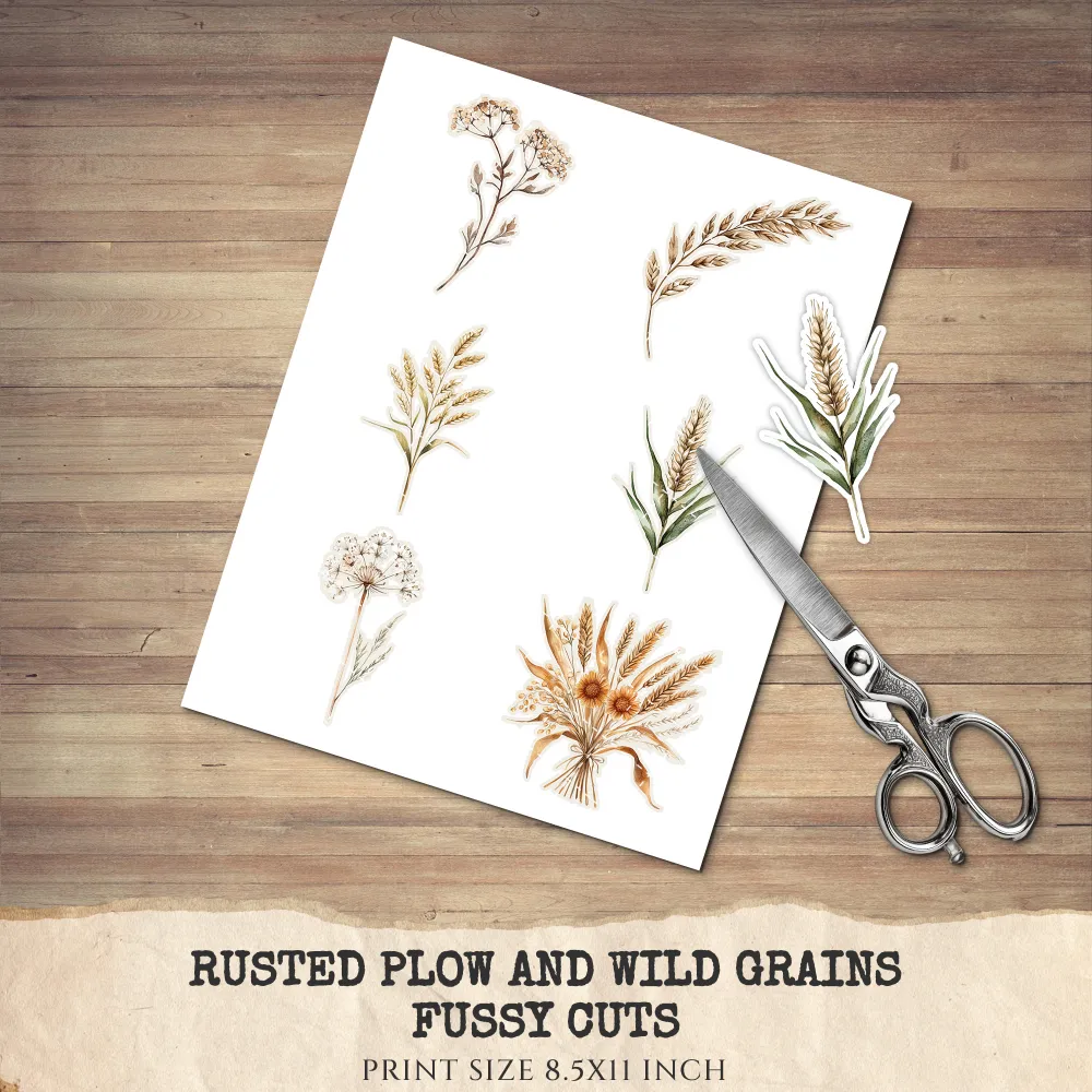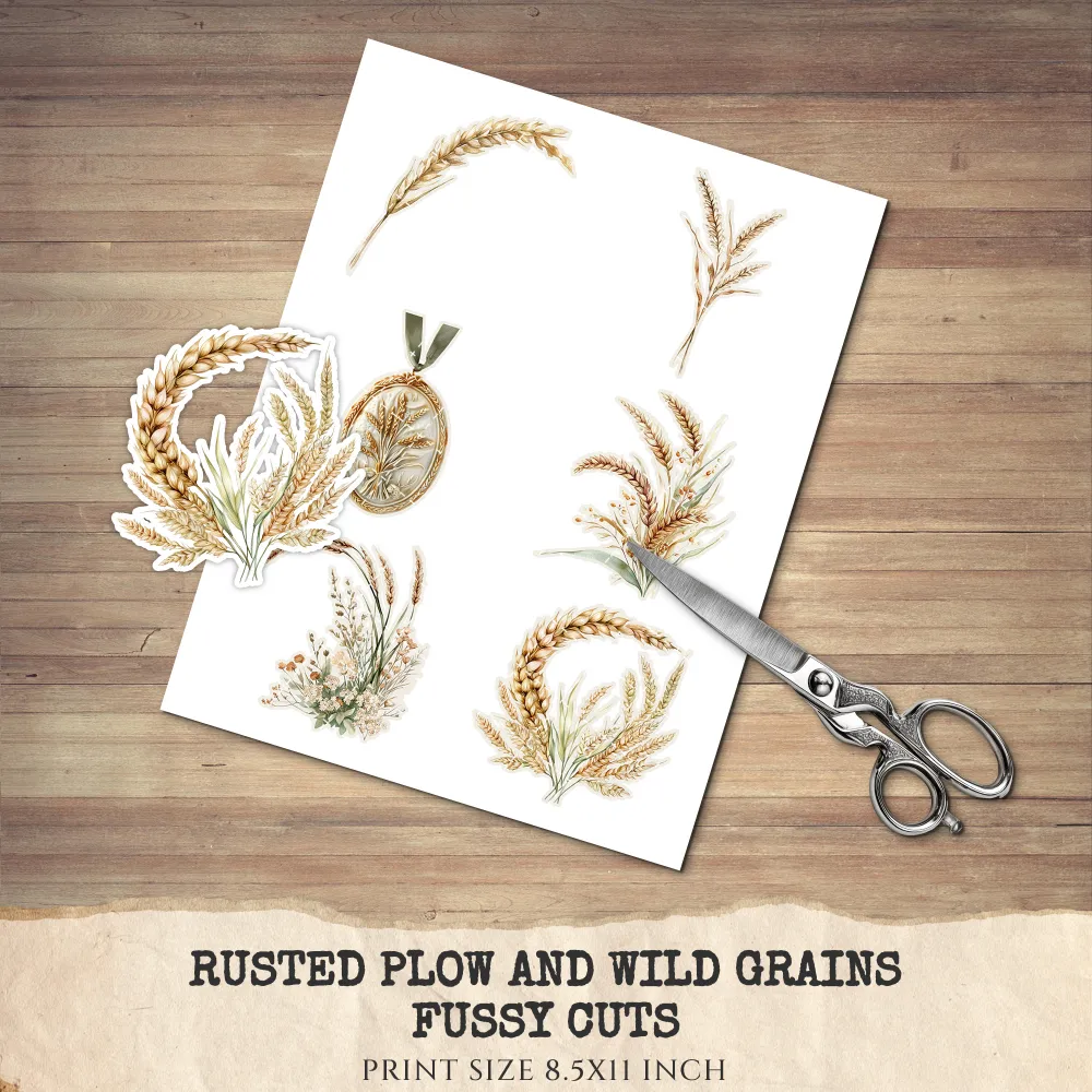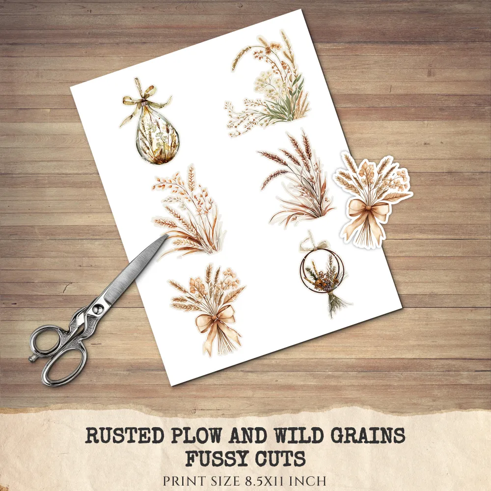 1. Rusted Plow and Wild Grains Junk Journal Ephemera & Folio Kit: