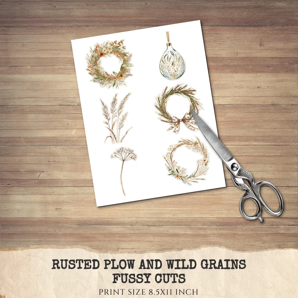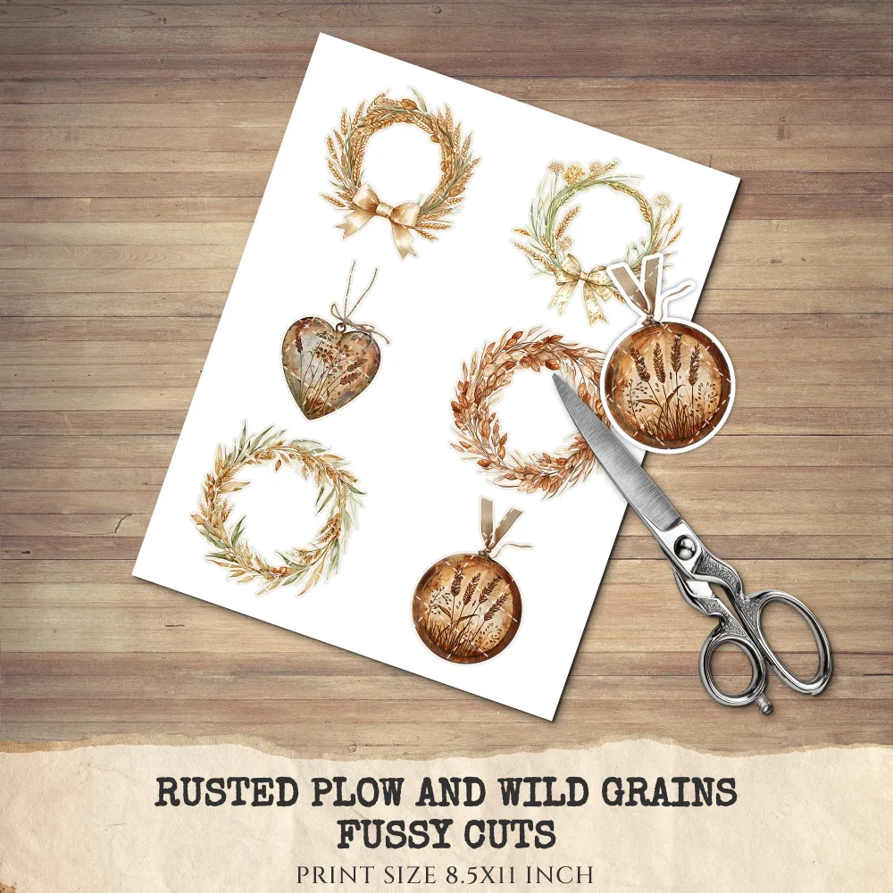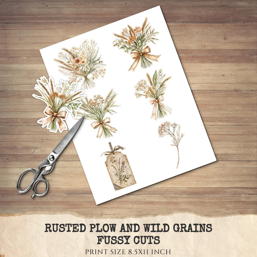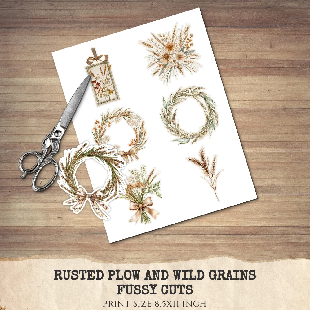 1. Rusted Plow and Wild Grains Junk Journal Ephemera & Folio Kit: