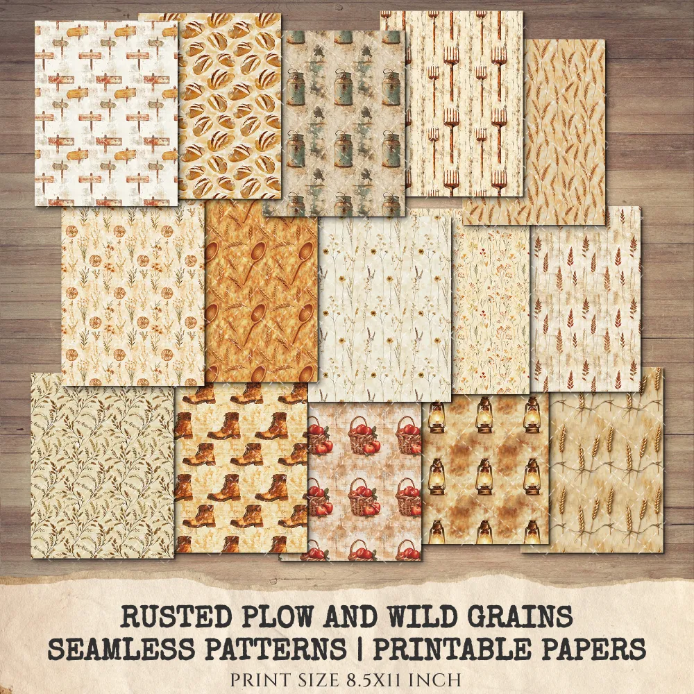 4. Rusted Plow and Wild Grains Seamless Patterns: