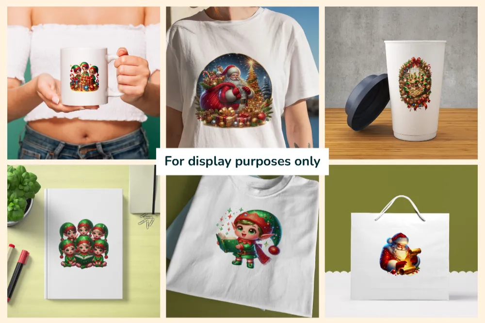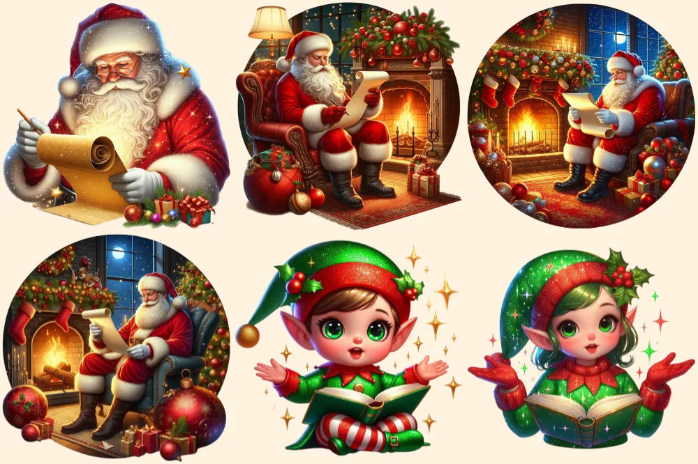 Santa & Elves PNG Clipart Collection – 33 PNG, Cheerful holiday illustrations, Xmas images, Commercial use, Digital download