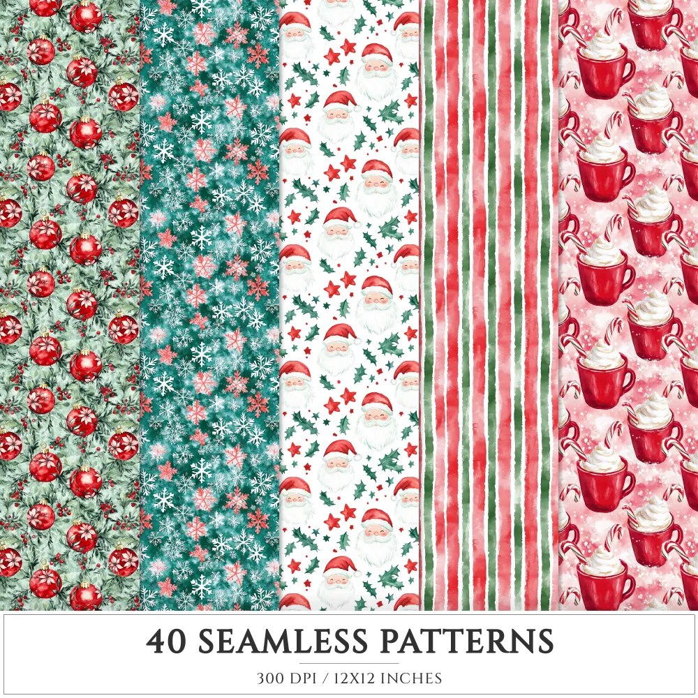 Santa’s Lapland Seamless Patterns, Rustic winter JPEG, Festive pattern, Plaid, Snowflake, Santa repeating pattern, Digital scrapbook paper