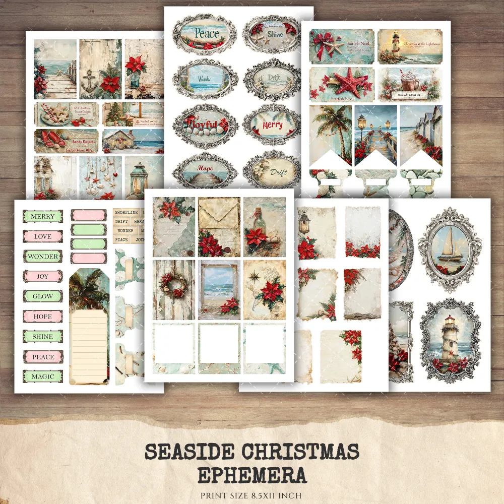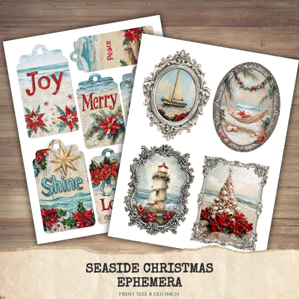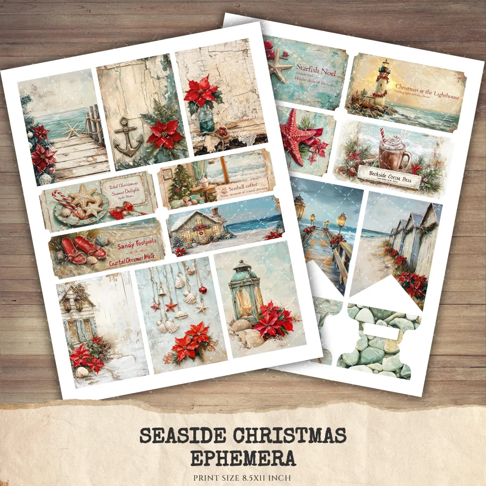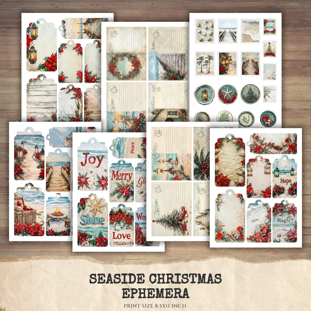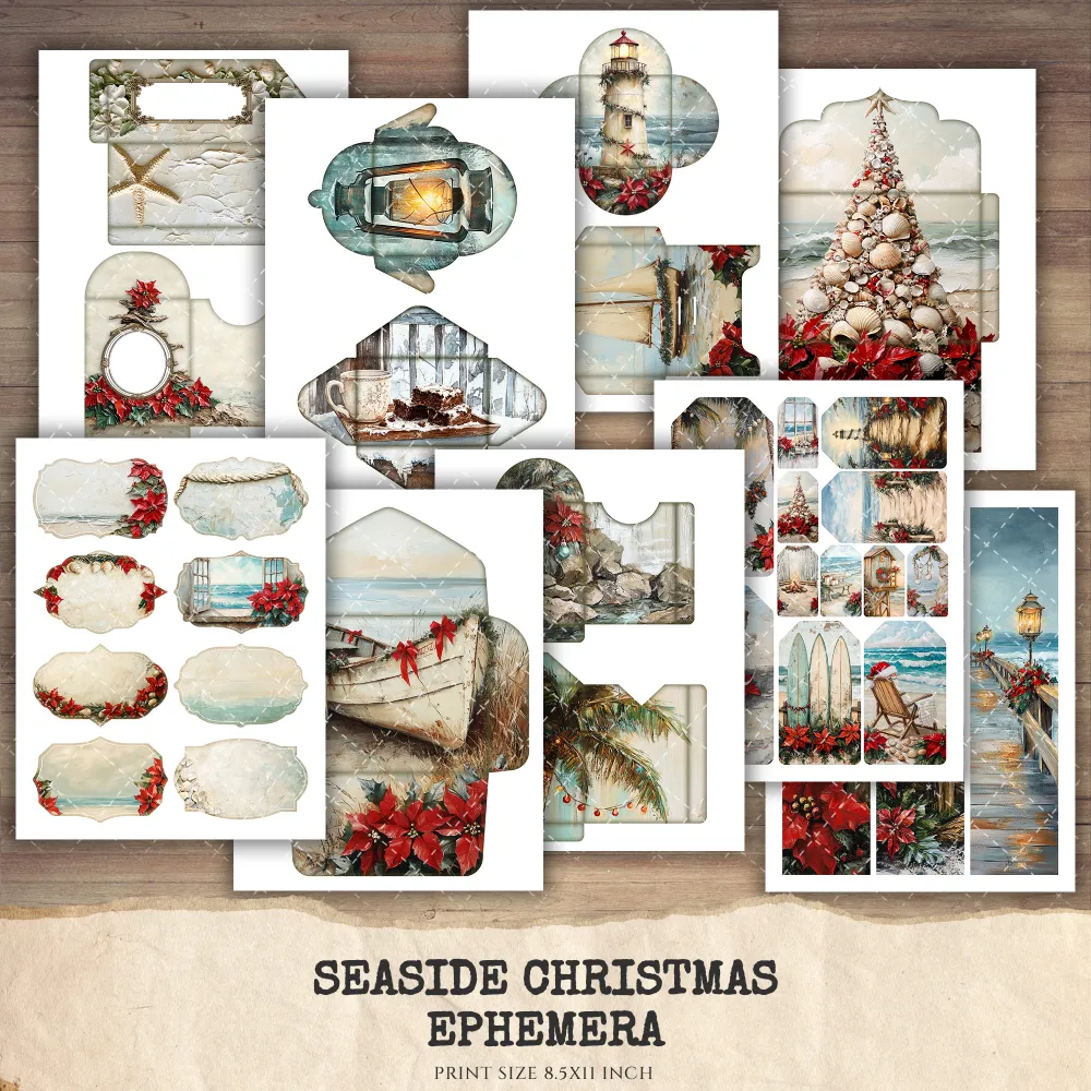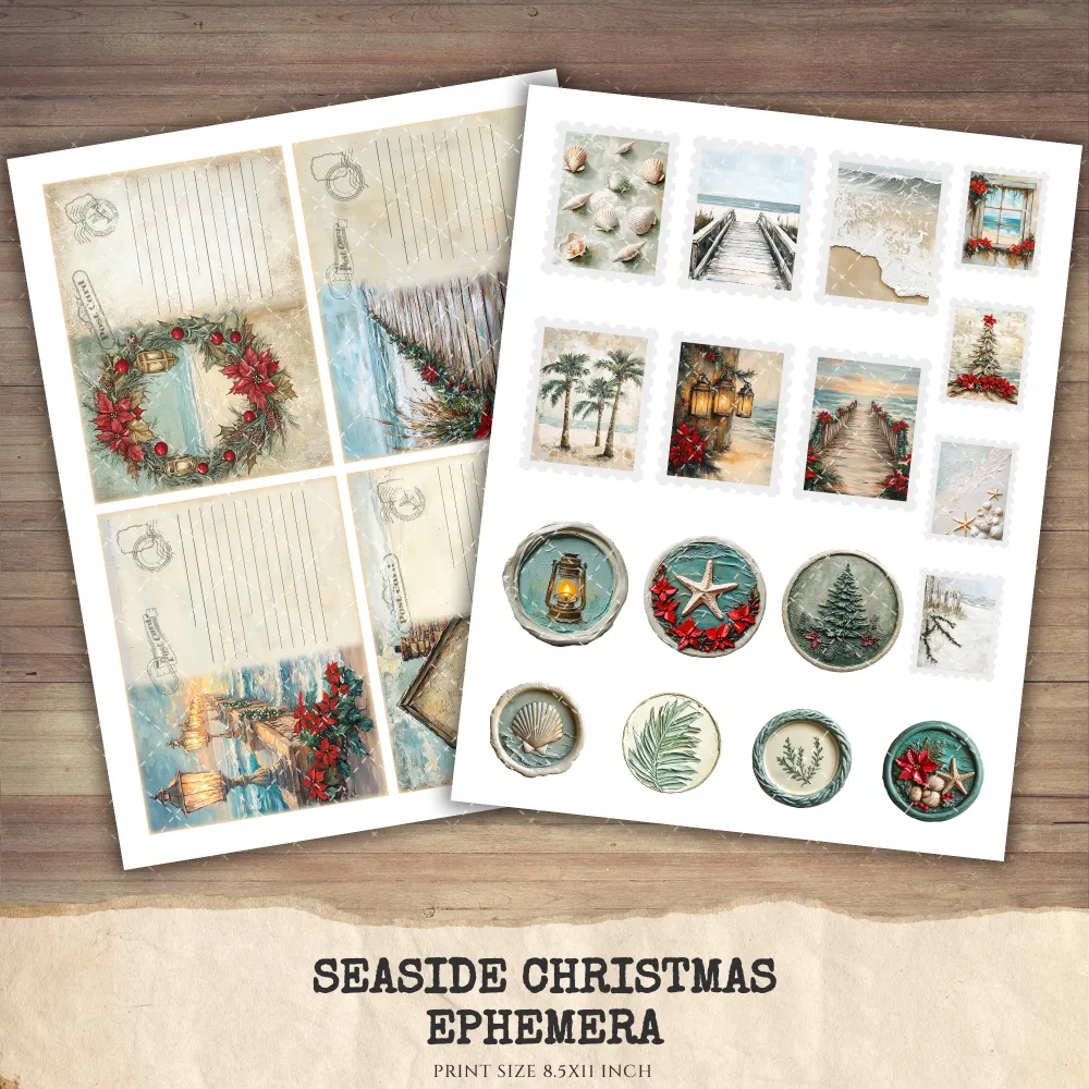 Seaside Christmas Junk Journal Ephemera & Folio Kit – Festive Beach Journal, Holiday Digital Ephemera, Junk Journal Kit, Digital download