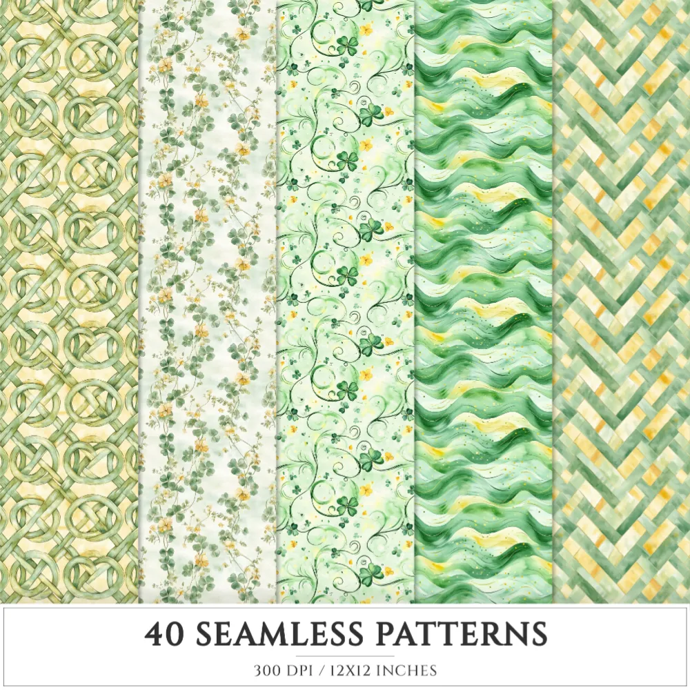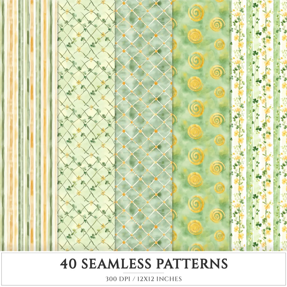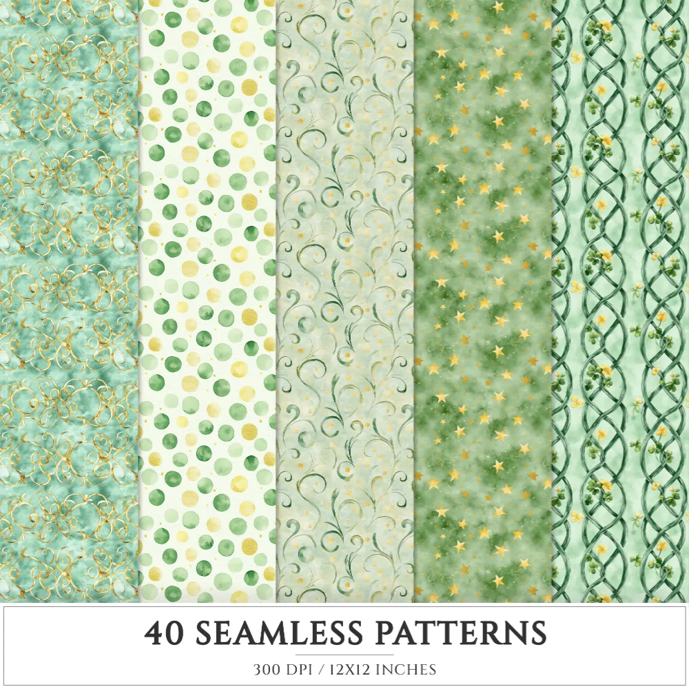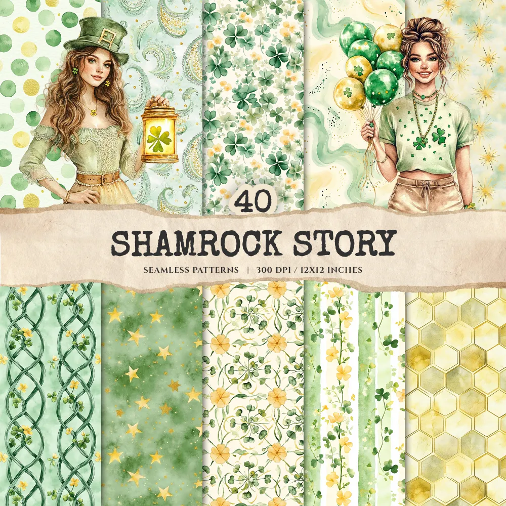 Shamrock Story Seamless Patterns, St Patricks Day JPEG, Clover infinite pattern, Polka, Shamrock repeating pattern, Digital scrapbook paper