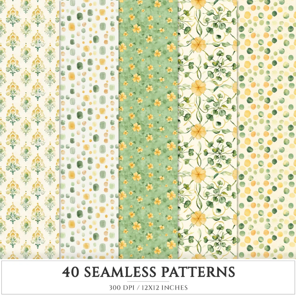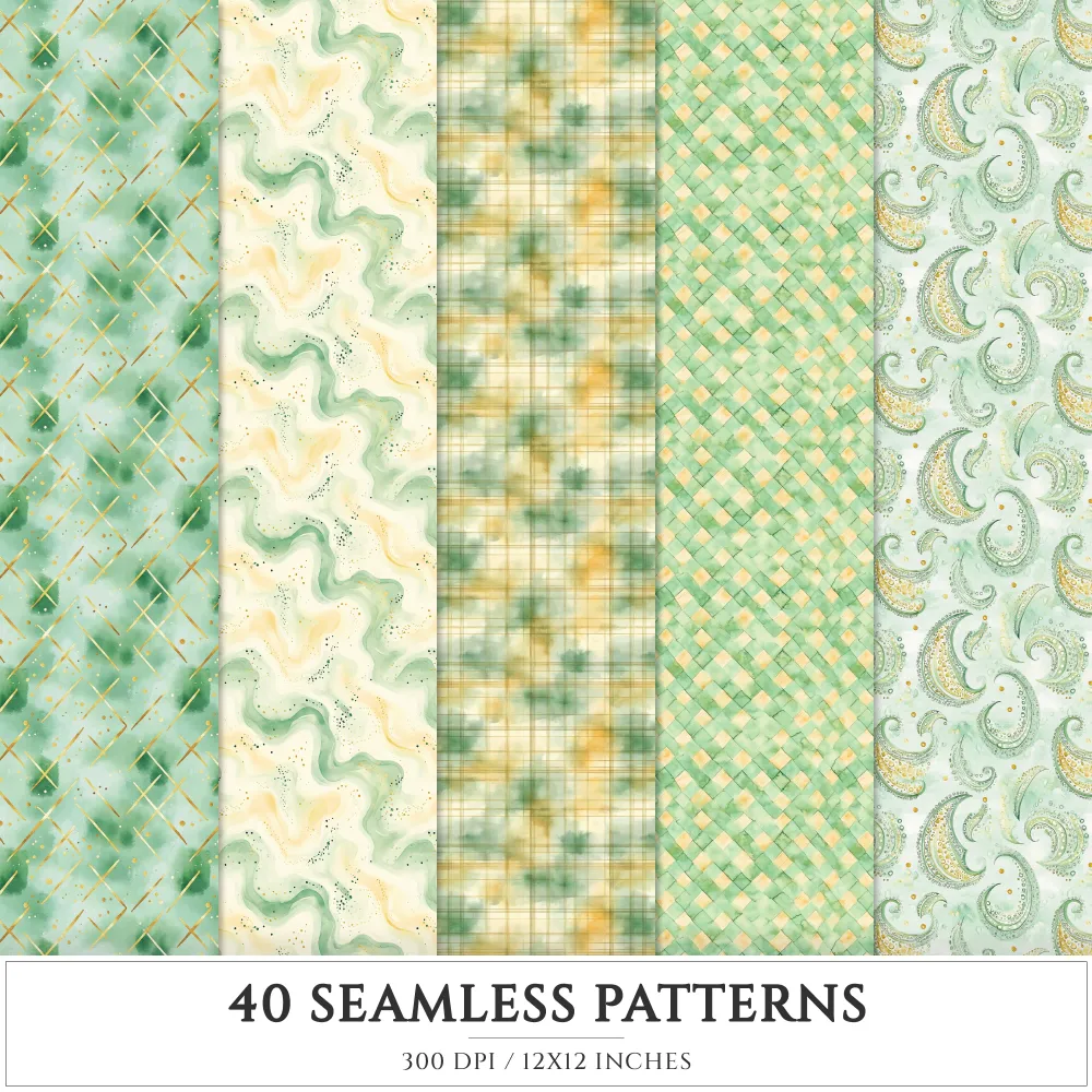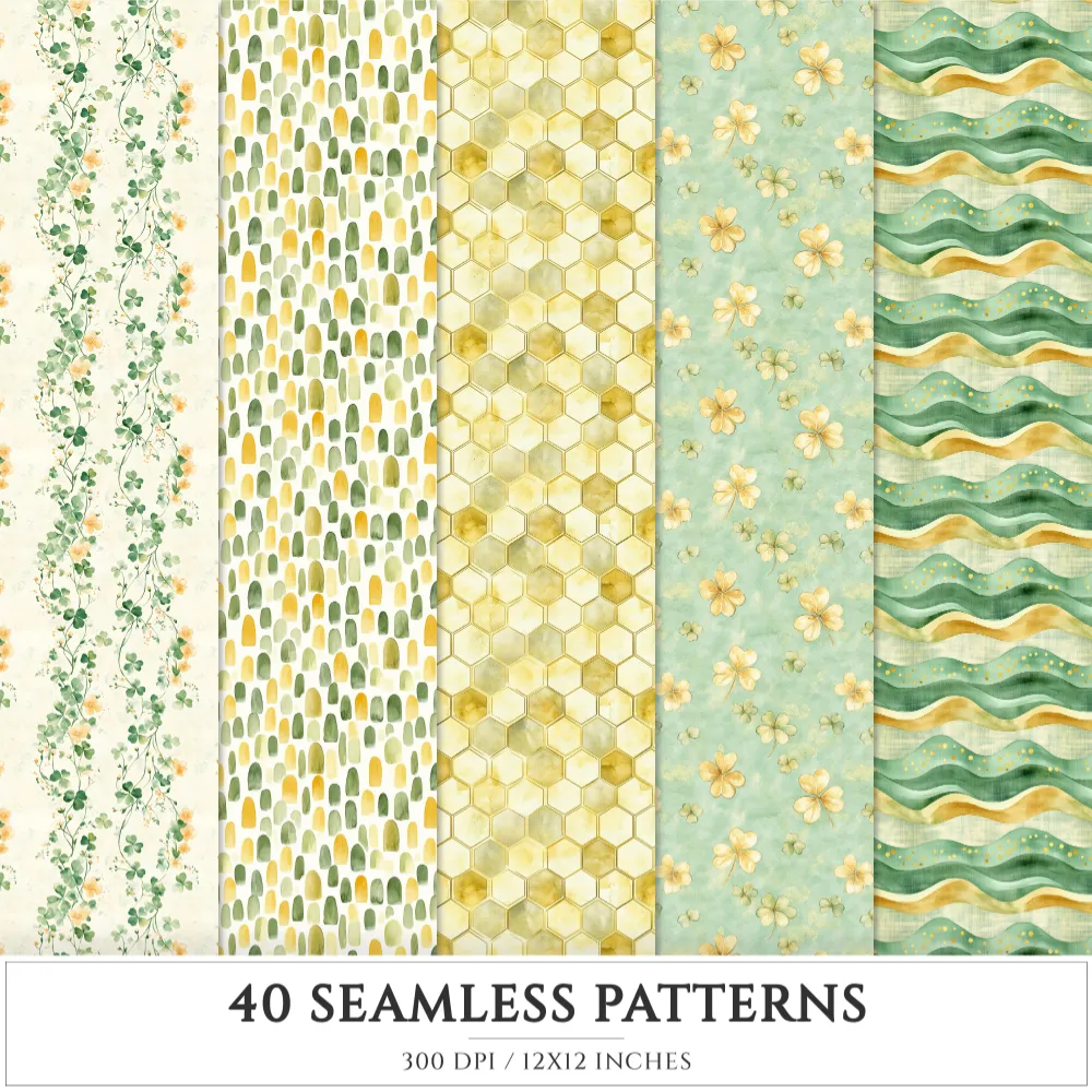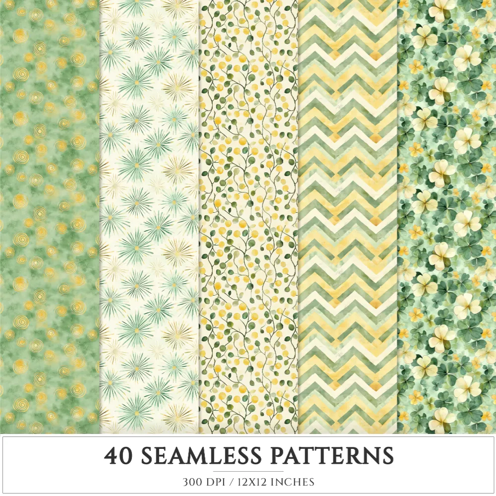 Shamrock Story Seamless Patterns, St Patricks Day JPEG, Clover infinite pattern, Polka, Shamrock repeating pattern, Digital scrapbook paper