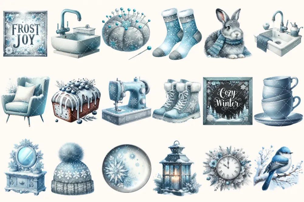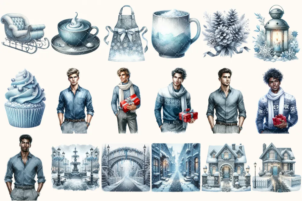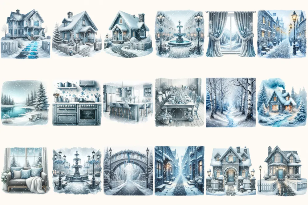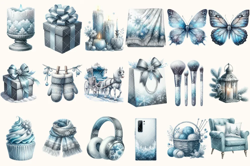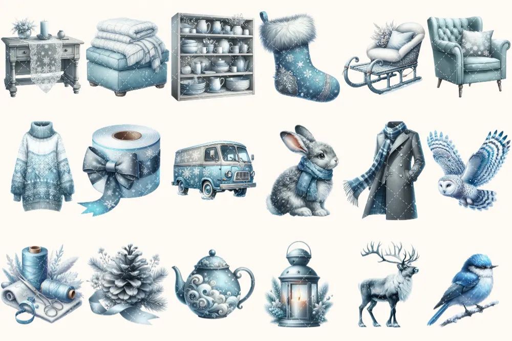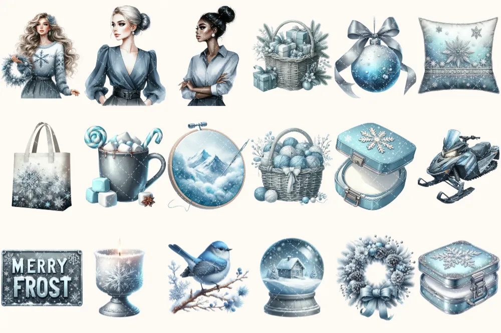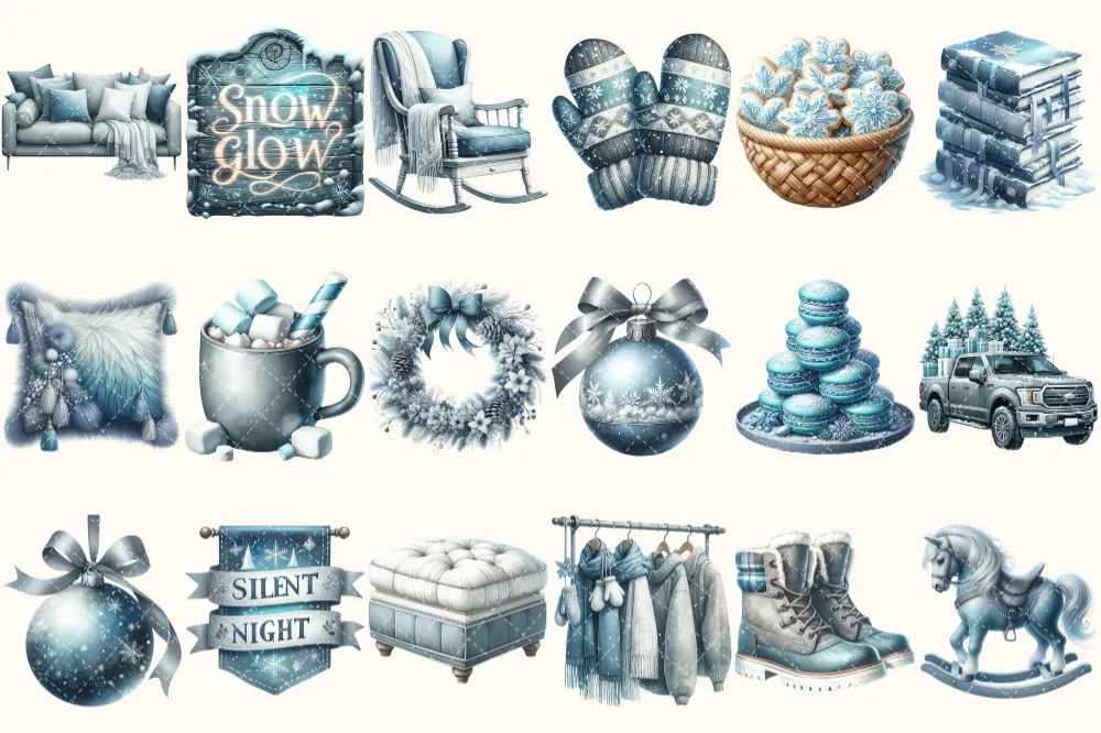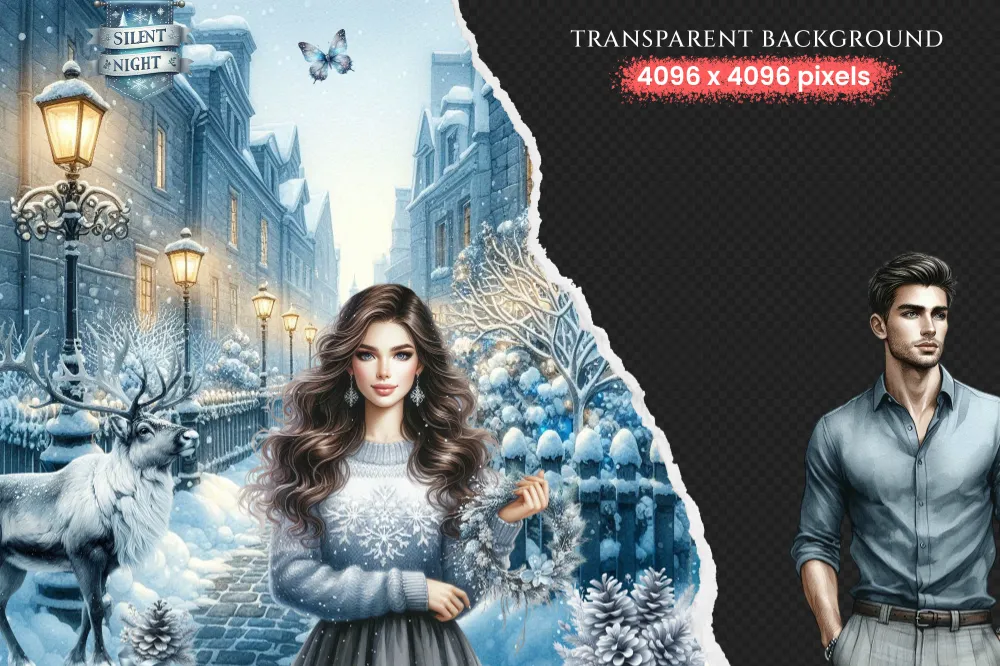 Silent Snowfall Clipart Mini Set – Cuteness Holiday Art, Xmas Girl Graphics, Snowfall Winter Clipart, Blue Christmas PNG, Digital Download
