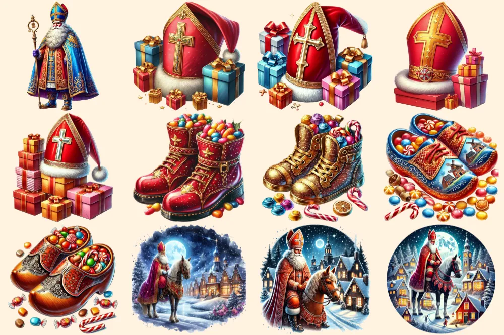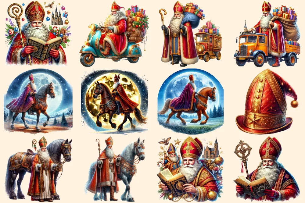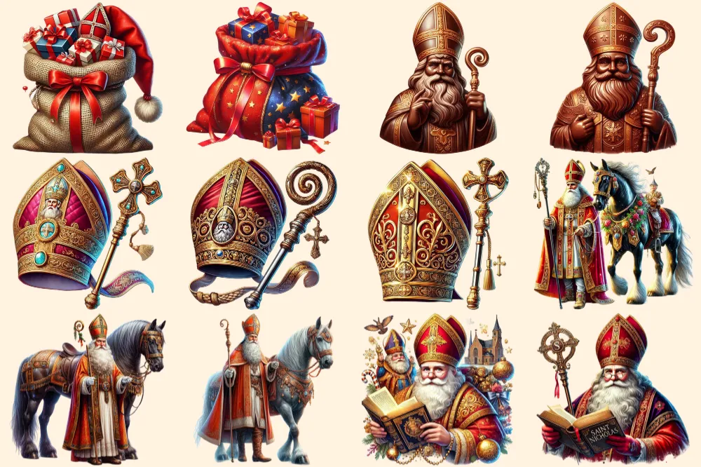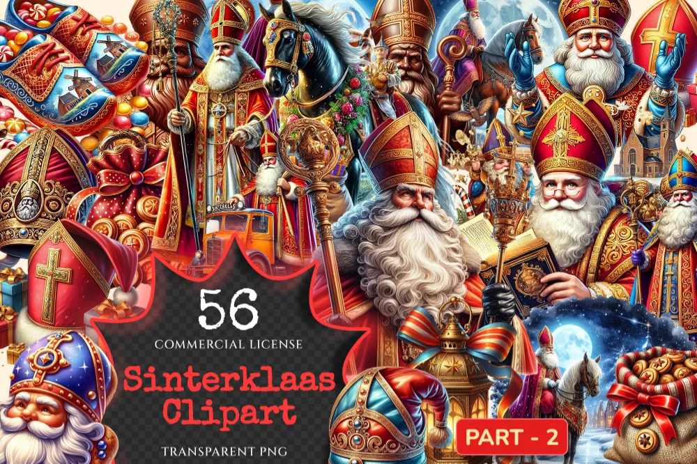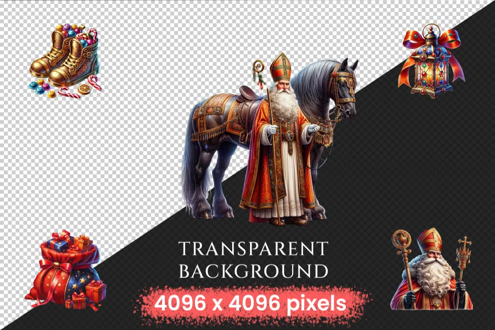 Sinterklaas (P-2) PNG Clipart Collection – 56 PNG, Holiday tradition illustrations, Saint nicholas art, Commercial use, Digital download
