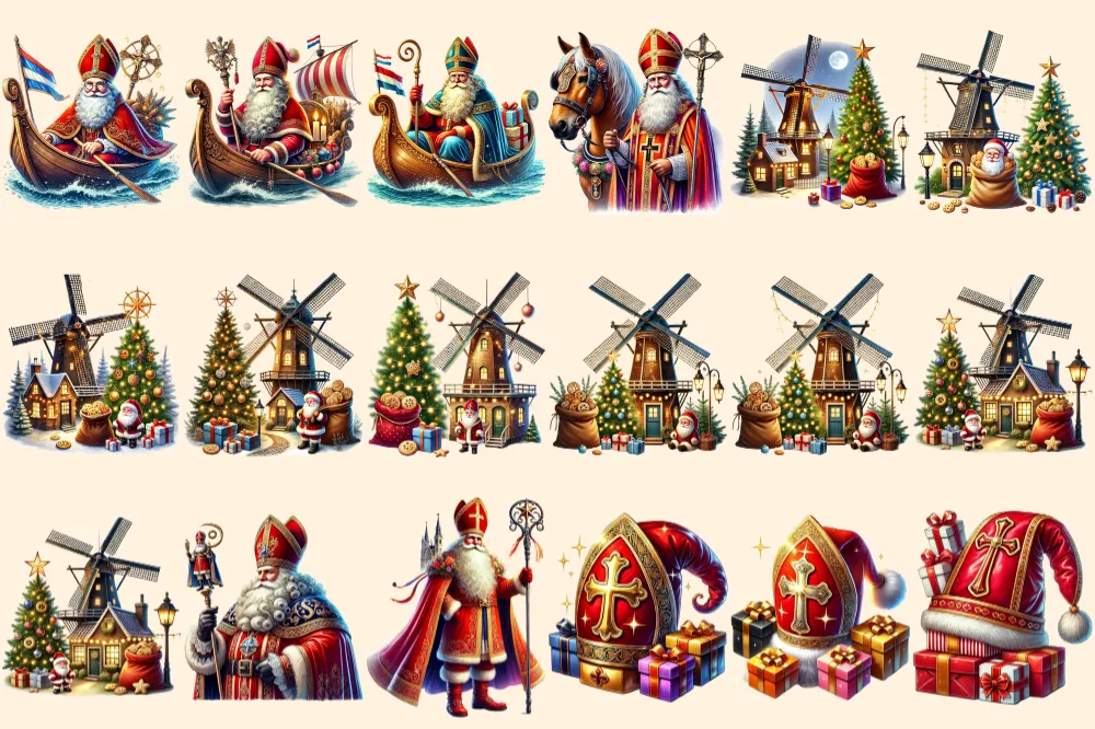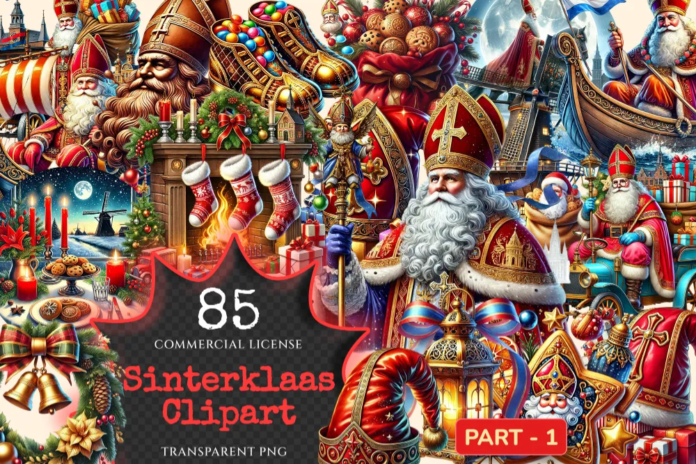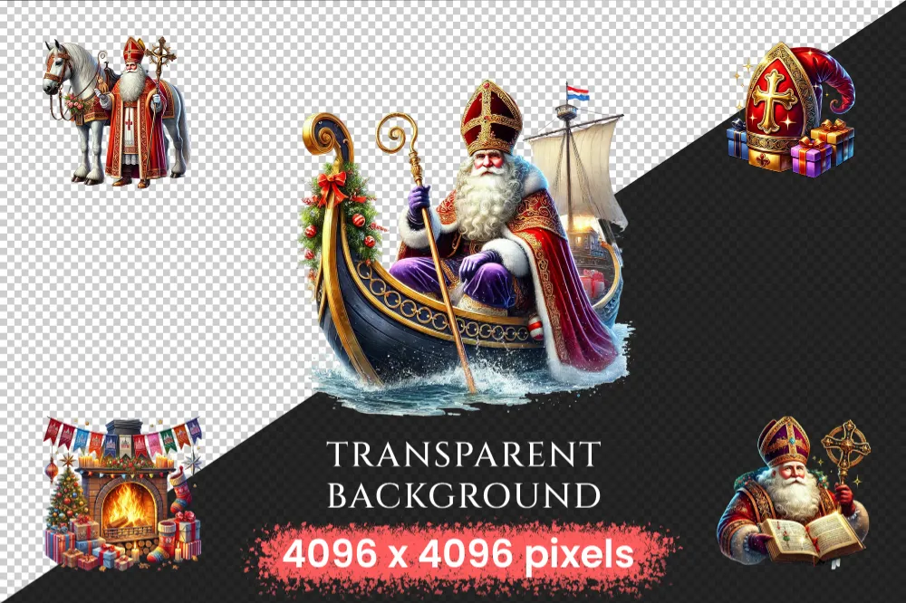 Sinterklaas PNG Clipart Collection – 85 PNG, Holiday tradition illustrations, Saint nicholas art, Commercial use, Digital download